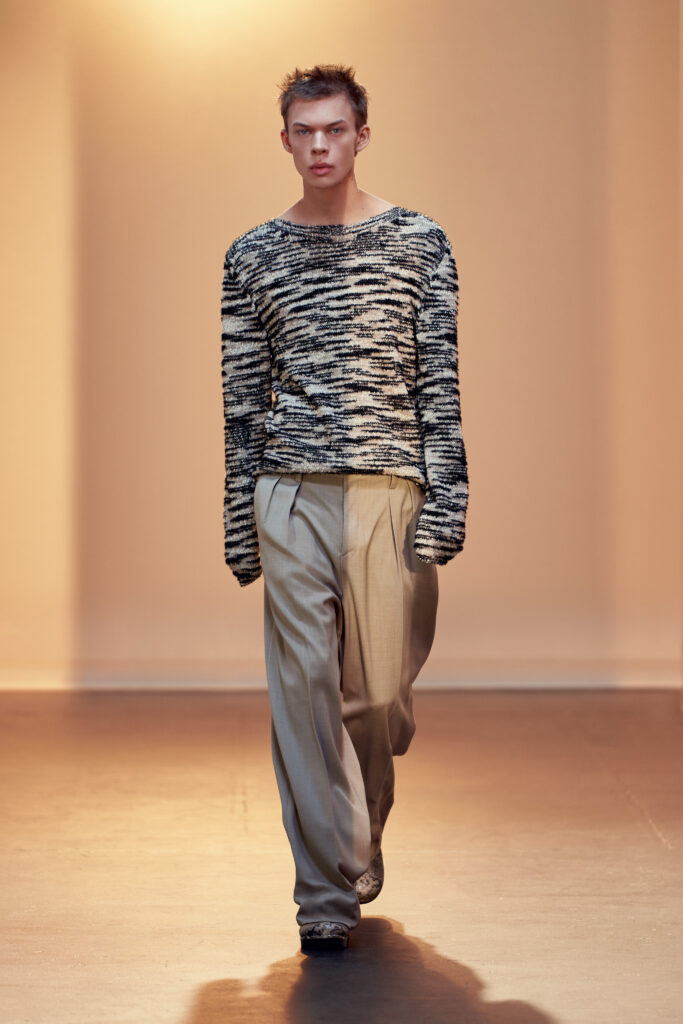 Comment montrer le temps ? Non pas comme le passage des jours, des semaines, des années – mais comme un sentiment. Pour le printemps/été 2024, Filippa K situe sa collection dans un espace liminal, dissolvant le passé et le futur de la marque en une seule sensibilité distincte mais intangible. L’idée d’une douce lumière d’été scandinave, qui apporte une touche chaude et délavée à la fois à la collection et à la toile de fond qui l’accompagne, est fondamentale à cet égard.