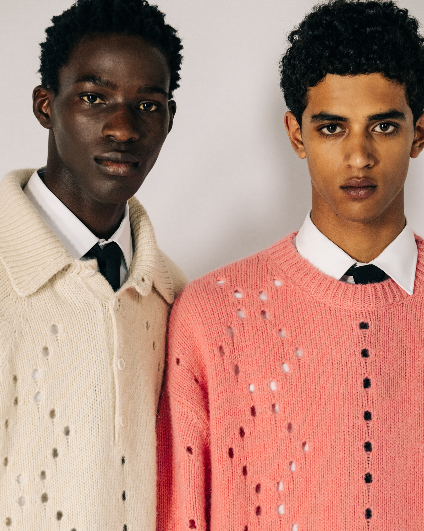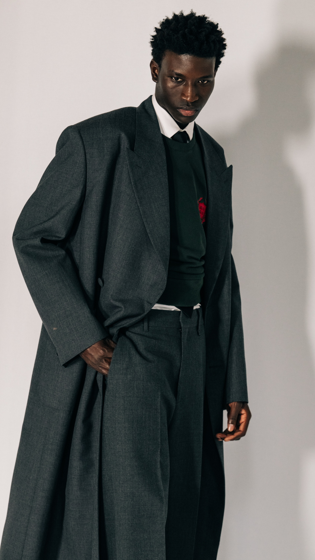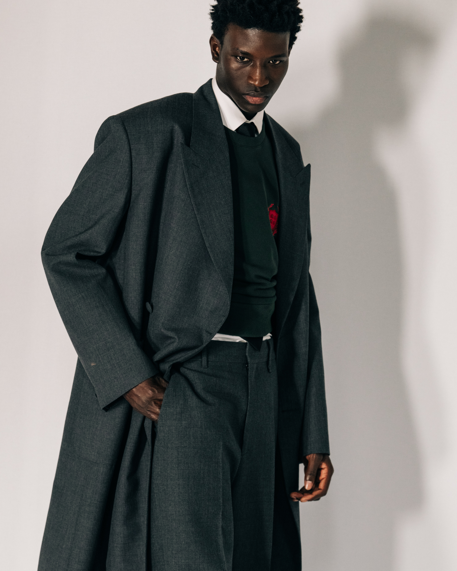 Cette collection représente un dialogue vivant entre la tradition et l’innovation, le conformisme et la liberté. Elle met en avant une étude de la découverte formative de l’élégance, incarnée par l’uniforme scolaire, symbole double de démocratie et de contrainte. Les vêtements reflètent une adaptation adolescente instinctive, jouant avec des proportions dépassées et une auto-adaptation.