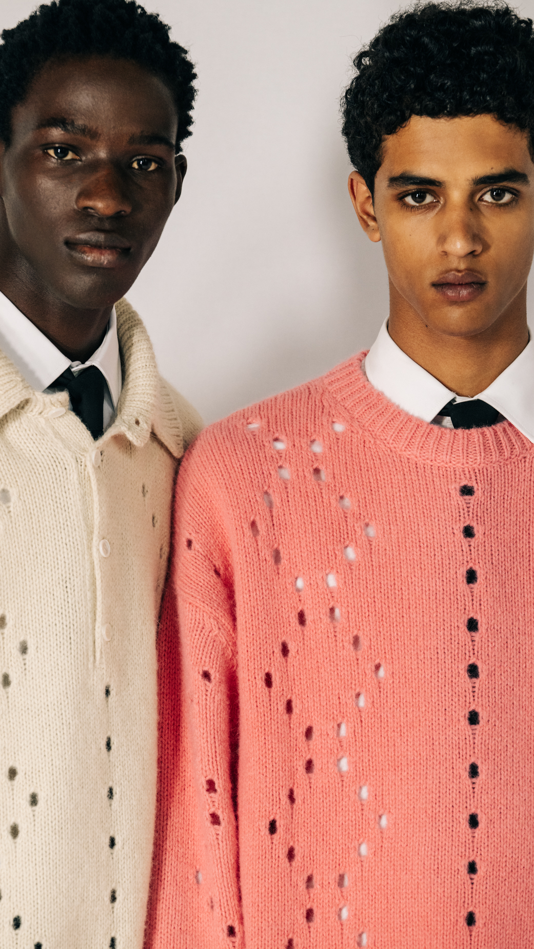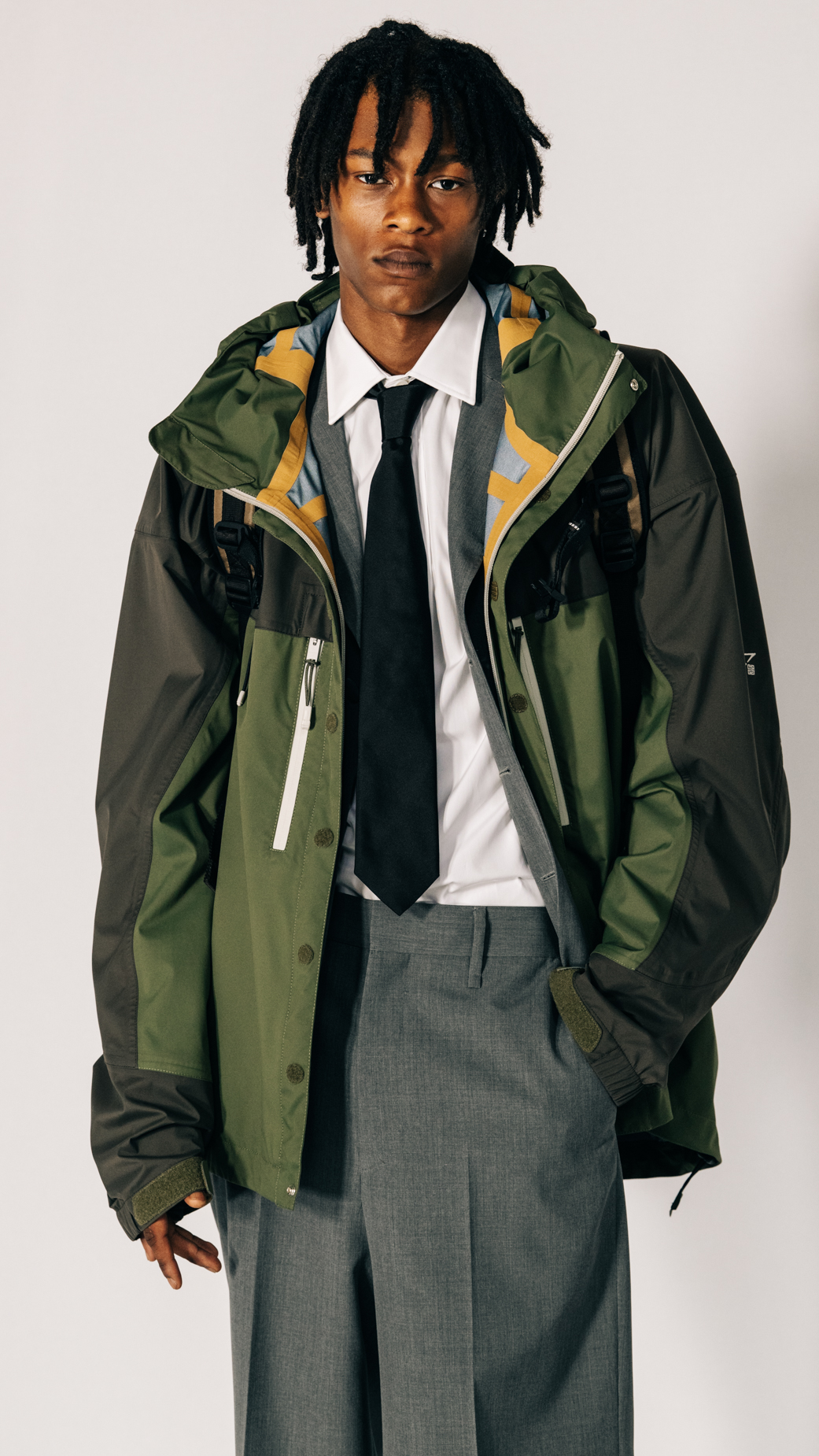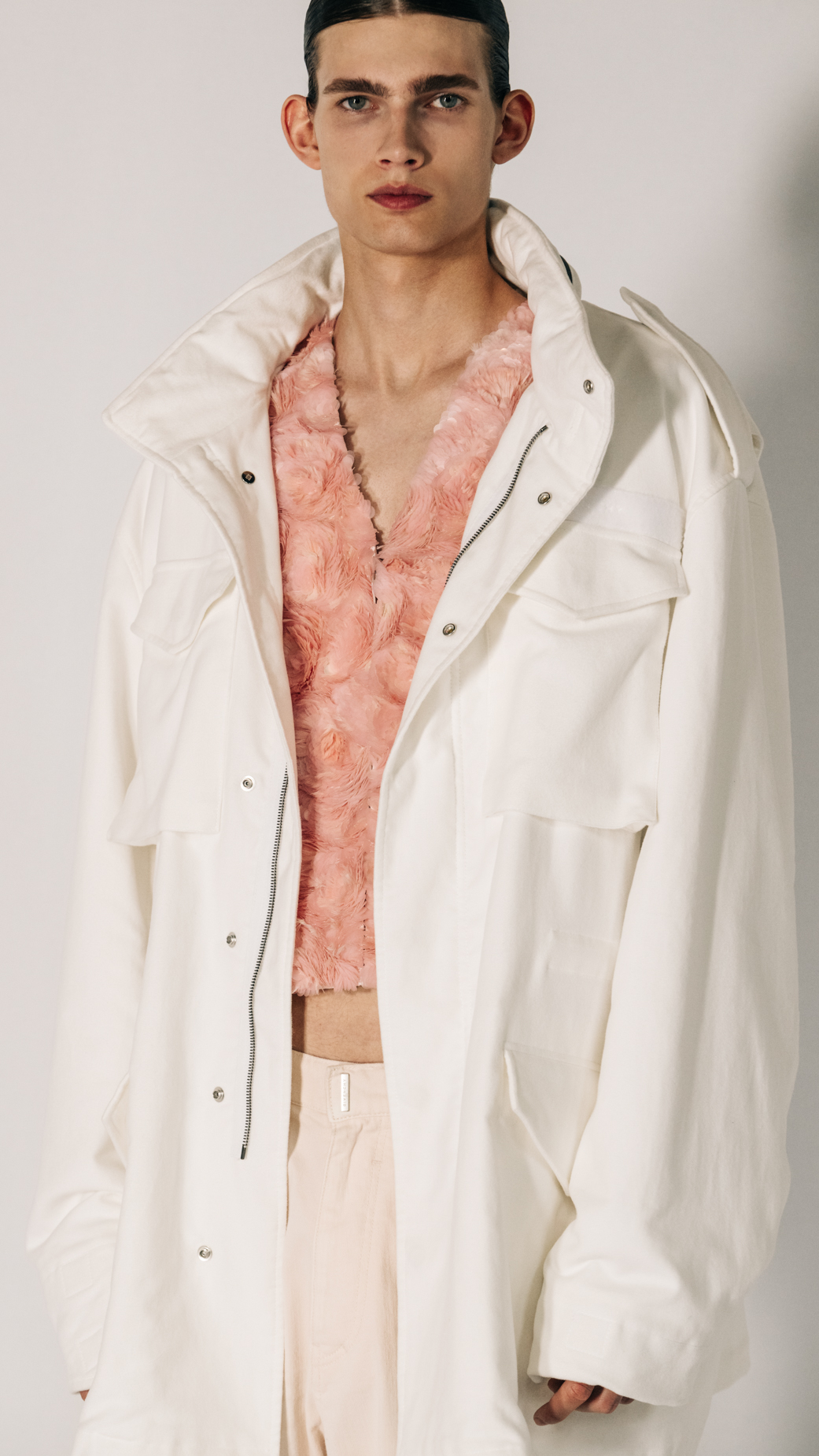 Cette collection représente un dialogue vivant entre la tradition et l’innovation, le conformisme et la liberté. Elle met en avant une étude de la découverte formative de l’élégance, incarnée par l’uniforme scolaire, symbole double de démocratie et de contrainte. Les vêtements reflètent une adaptation adolescente instinctive, jouant avec des proportions dépassées et une auto-adaptation.