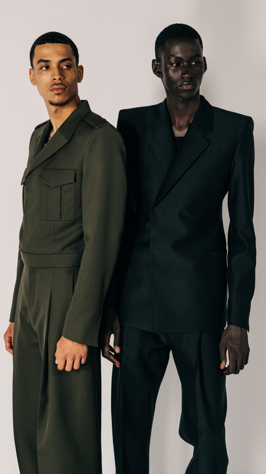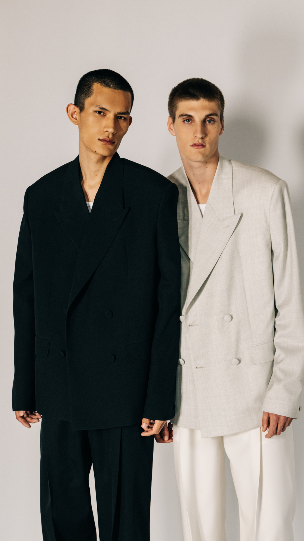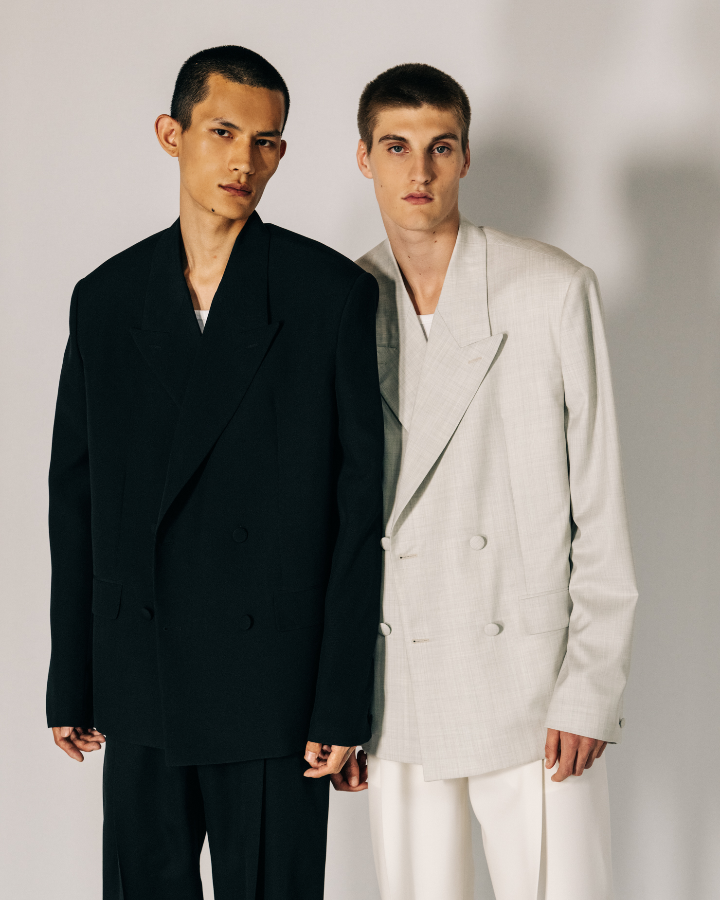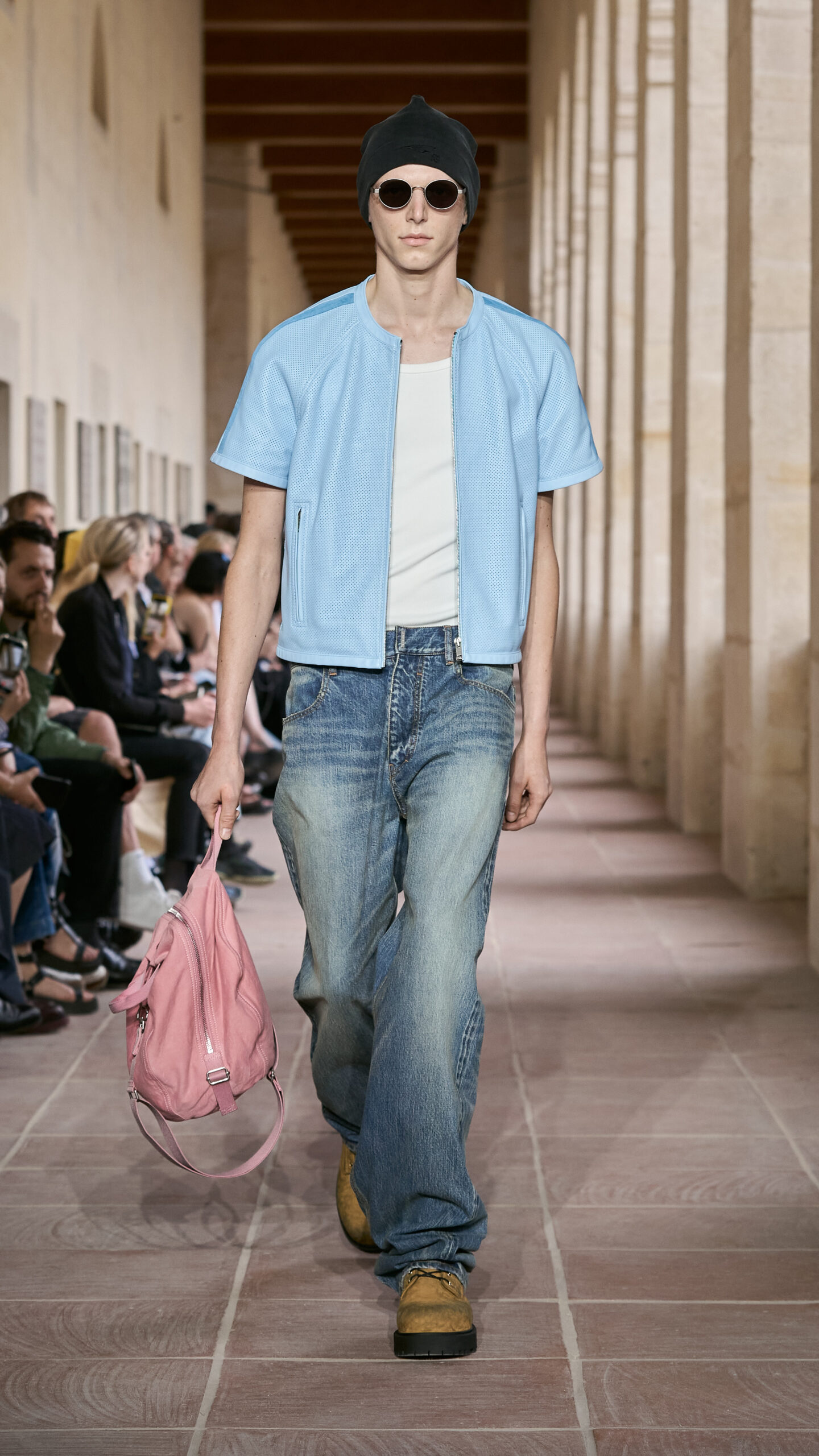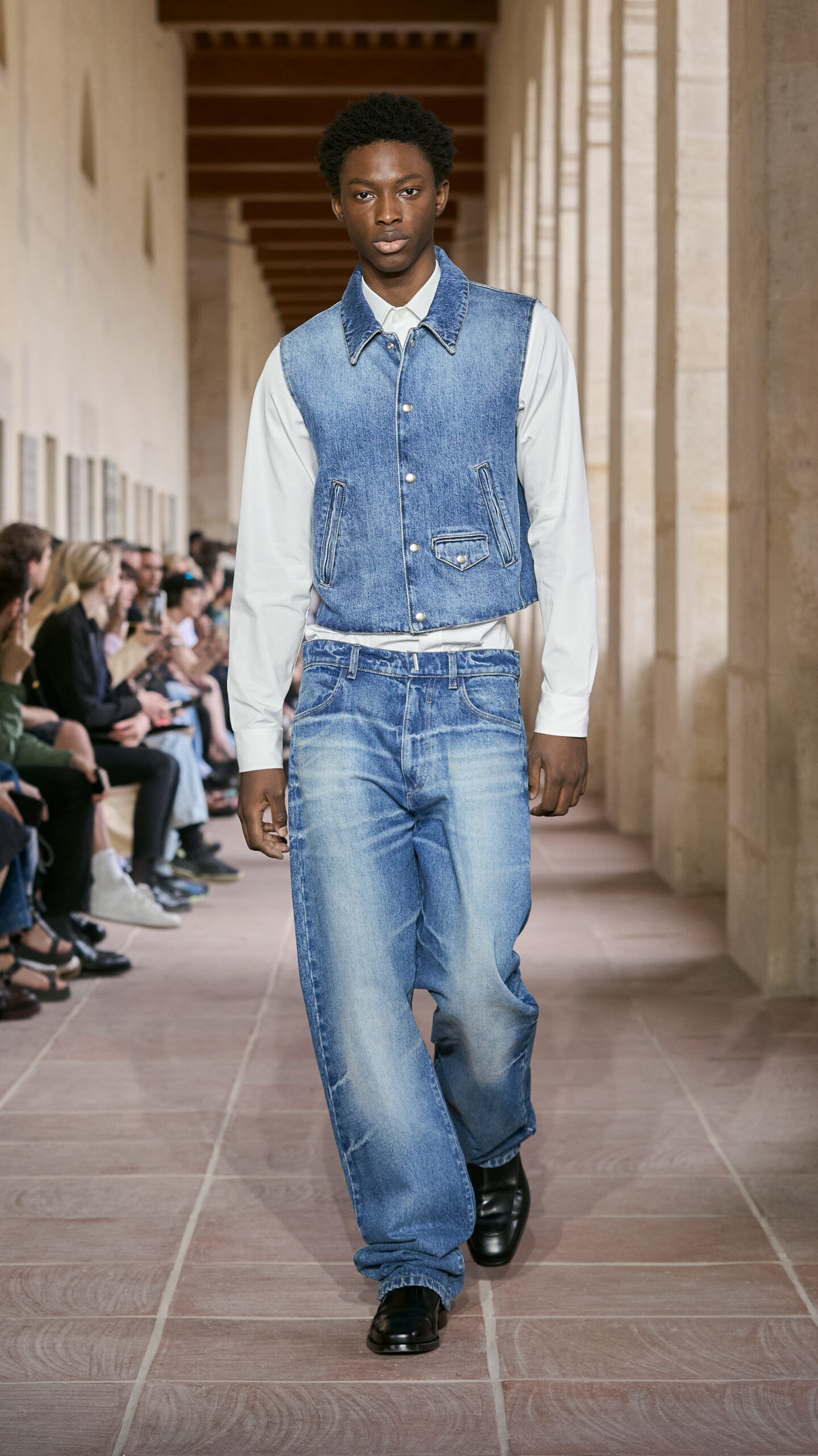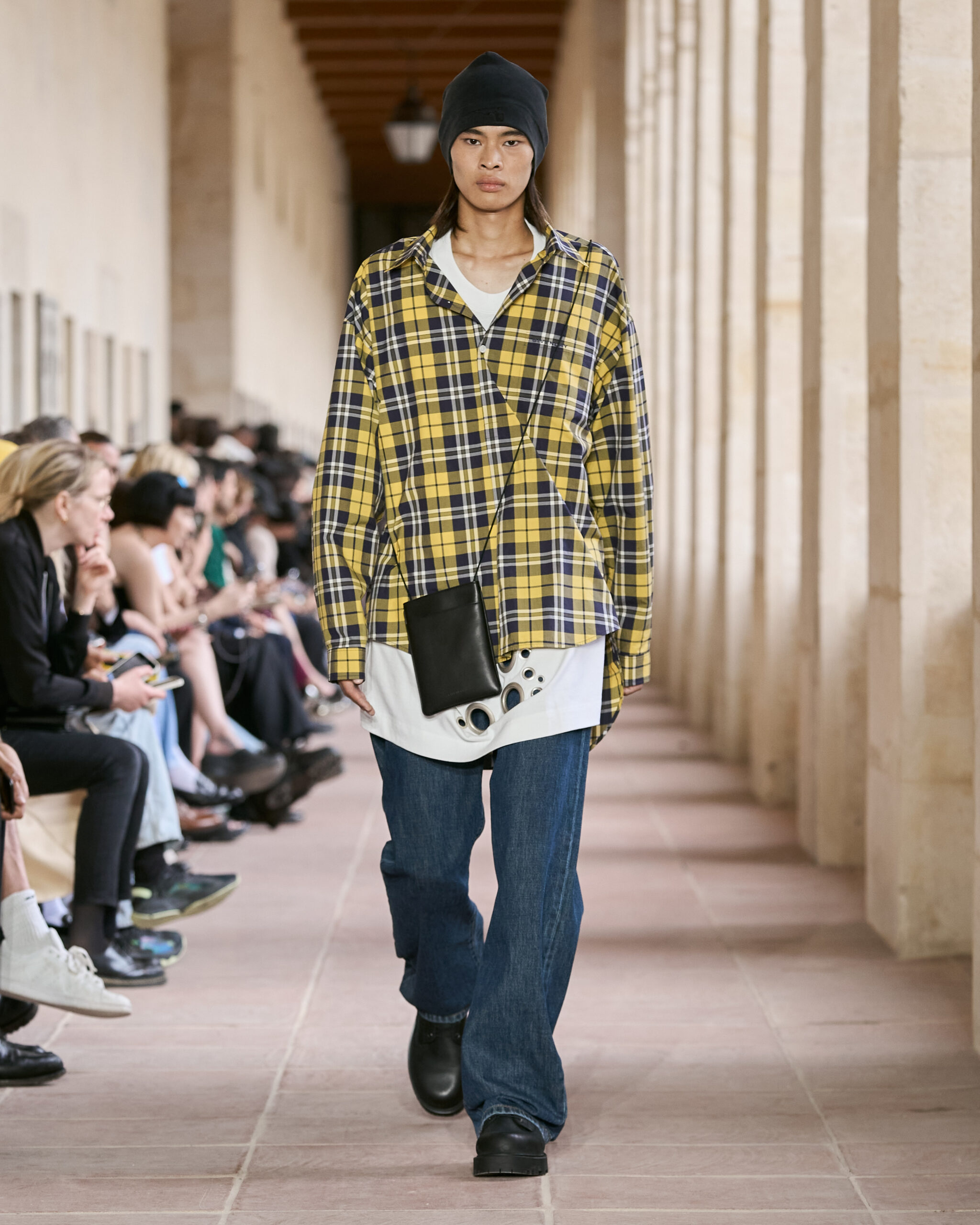 La silhouette évolue pour explorer les articles essentiels de la garde-robe, sublimés par des techniques de luxe. T-shirts longs, pièces en jersey, pantalons cargo larges et chinos surdimensionnés reflètent une idée de proportion réaliste. La texture, l’ajustement et le matériau se fusionnent pour créer une esthétique riche et multidimensionnelle, reflet d’une approche réfléchie de l’élégance masculine.