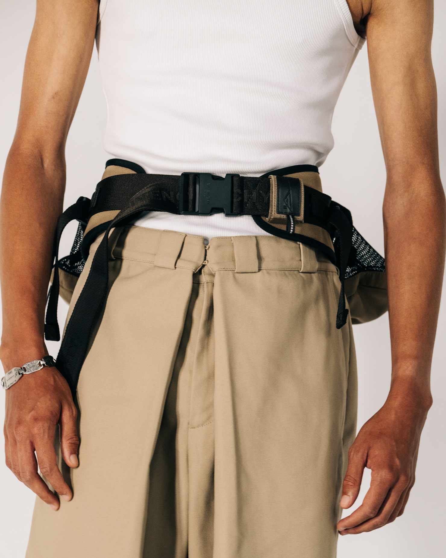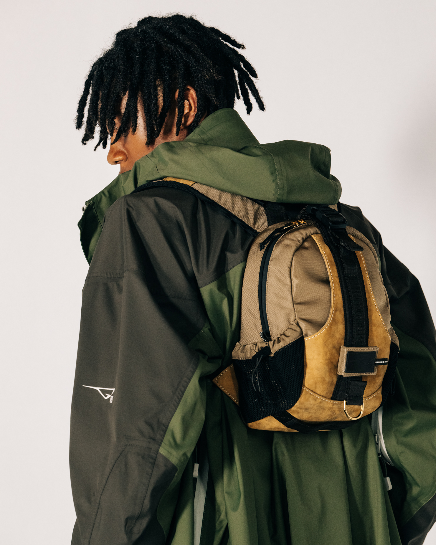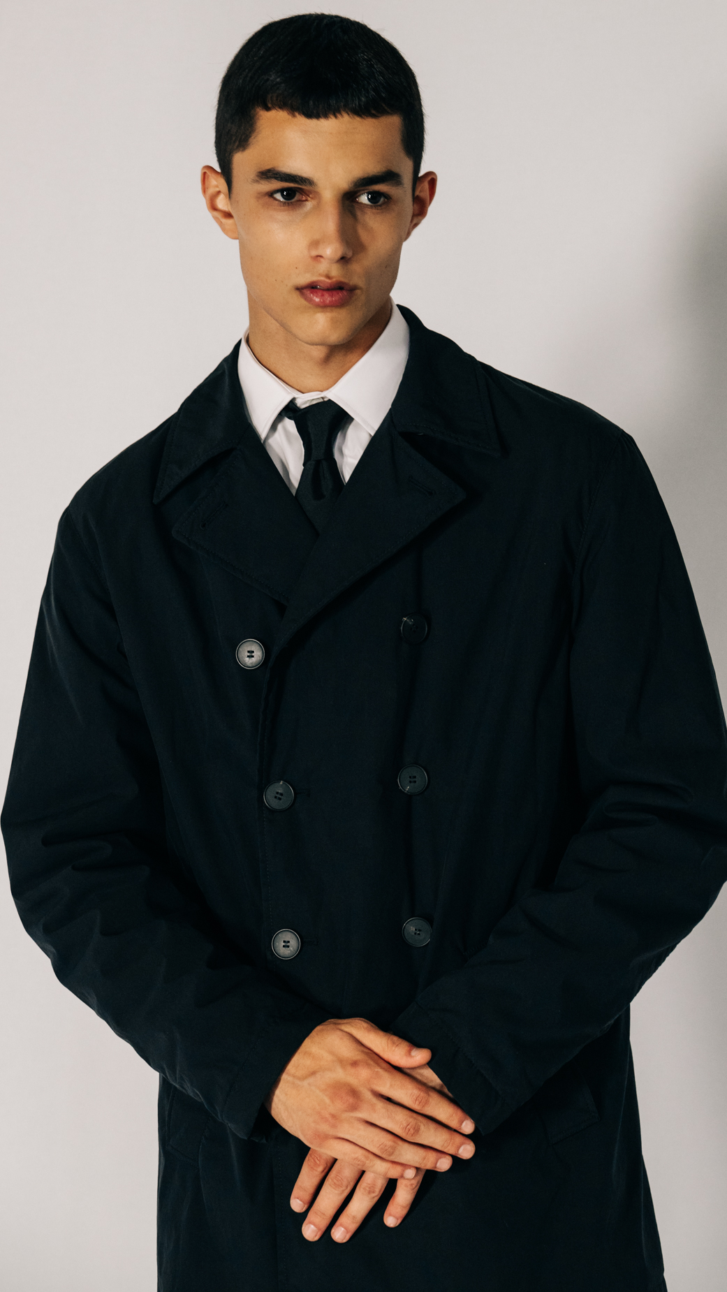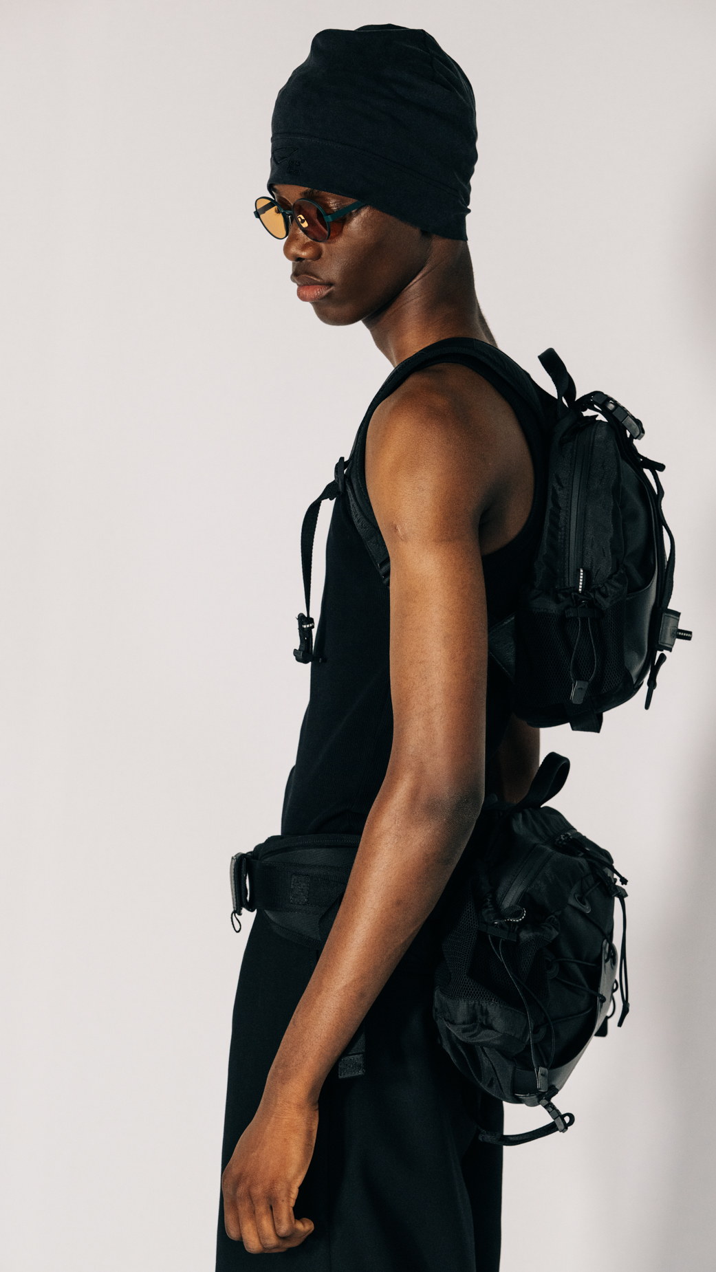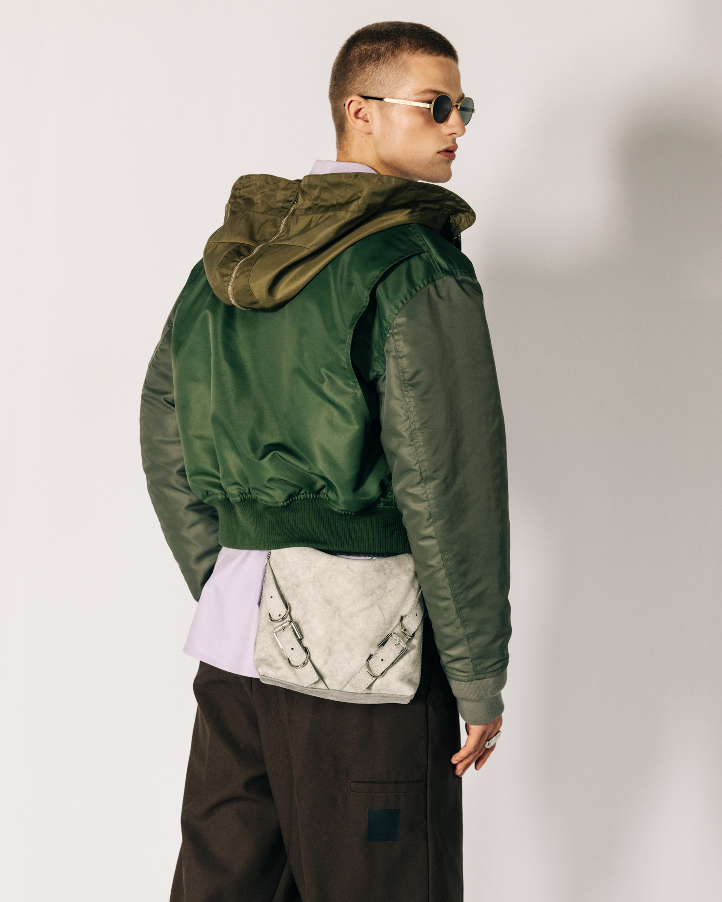 La silhouette évolue pour explorer les articles essentiels de la garde-robe, sublimés par des techniques de luxe. T-shirts longs, pièces en jersey, pantalons cargo larges et chinos surdimensionnés reflètent une idée de proportion réaliste. La texture, l’ajustement et le matériau se fusionnent pour créer une esthétique riche et multidimensionnelle, reflet d’une approche réfléchie de l’élégance masculine.