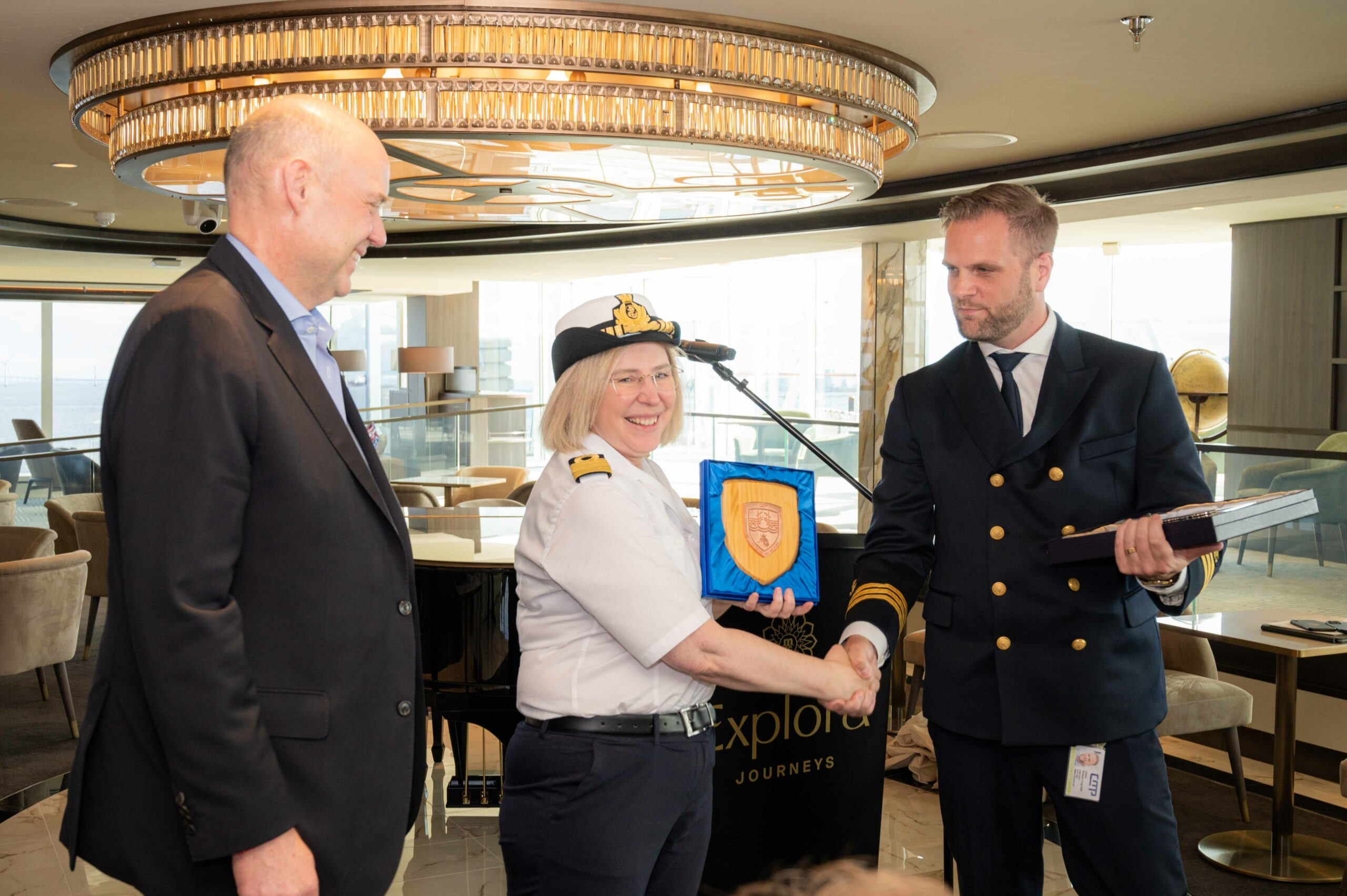 Les festivités à Copenhague ont également inclus l’échange de crêtes traditionnel pour célébrer la première visite d’un navire à une destination.