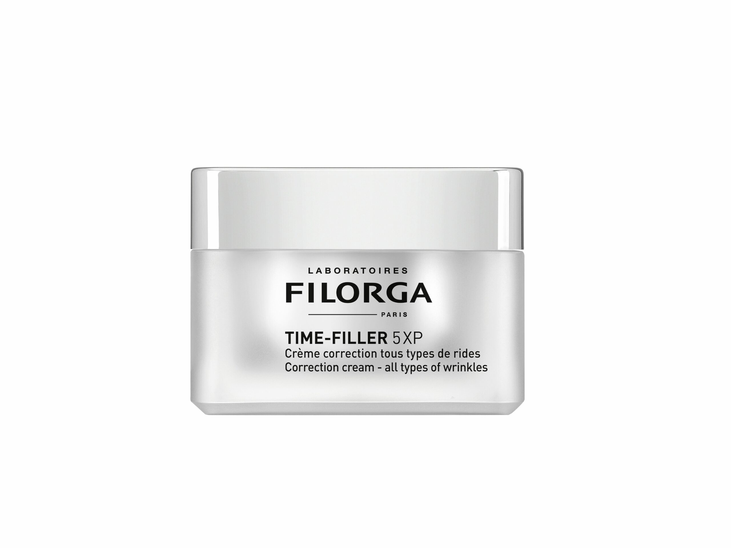Time-Filler 5XP (photo), la crème best-seller correction intensive de tous les types de rides du visage et du cou. De puissants actifs (tripeptide, acide hyaluronique, christe marine, extrait végétal et actif restructurant) pour dérider les rides d’expression, repulper les rides profondes, lisser les rides de surface et de déshydratation et défroisser les rides du cou. Une crème lissante très agréable à utiliser, idéale pour les peaux normales à sèches.