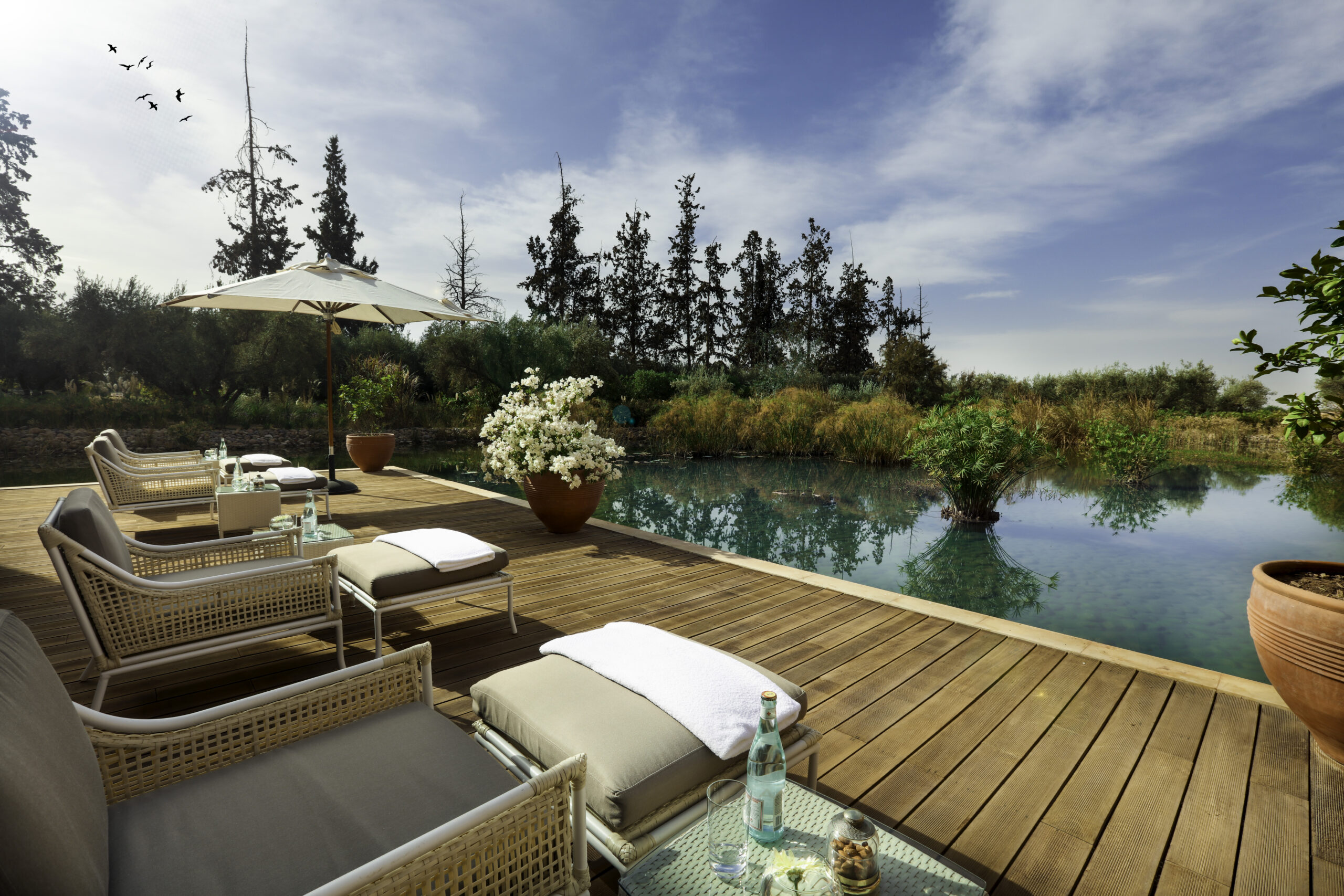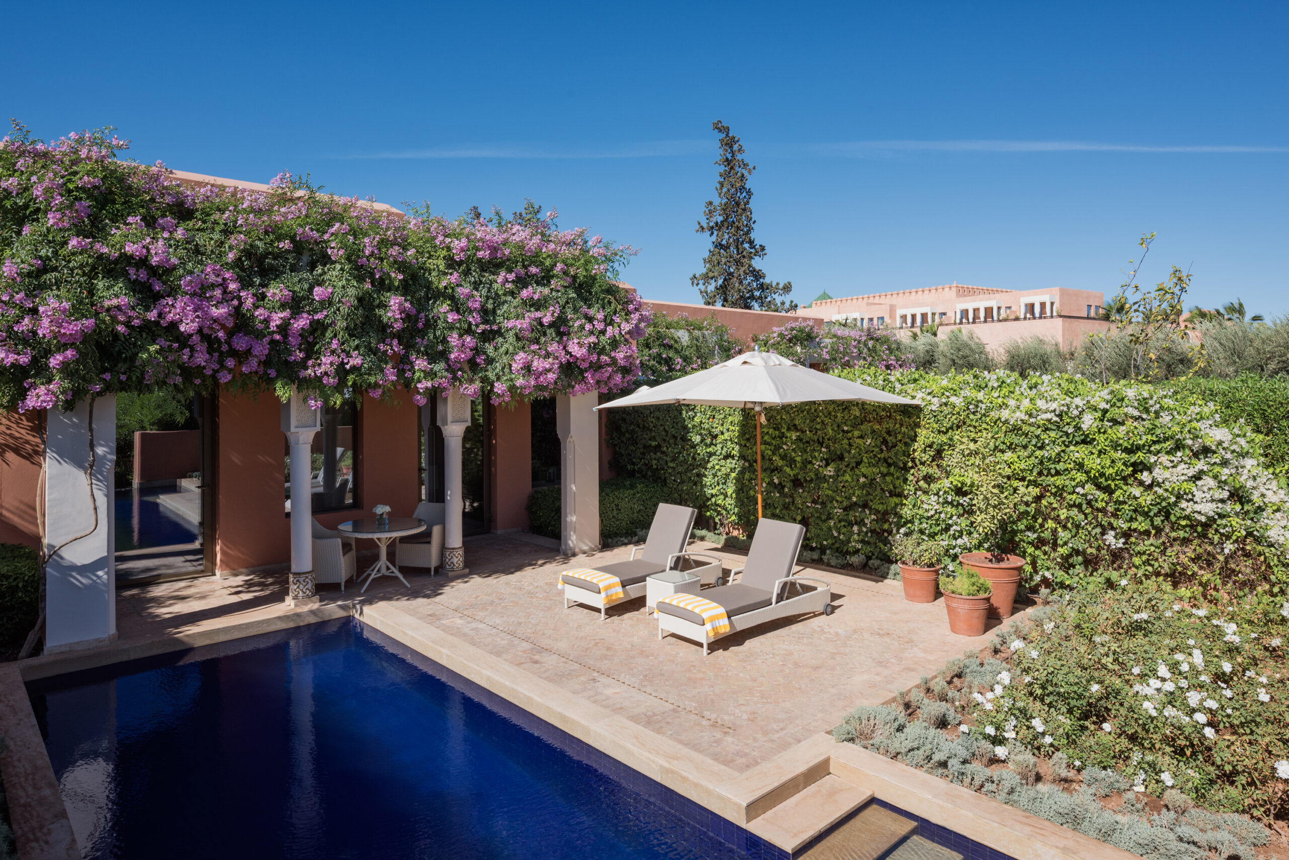 Pour une parenthèse revigorante, l’hôtel propose une formule journée avec accès à sa superbe piscine et déjeuner gourmet inclus. Le cadre enchanteur entre jardins luxuriants et montagnes de l’Atlas incite à la relaxation.