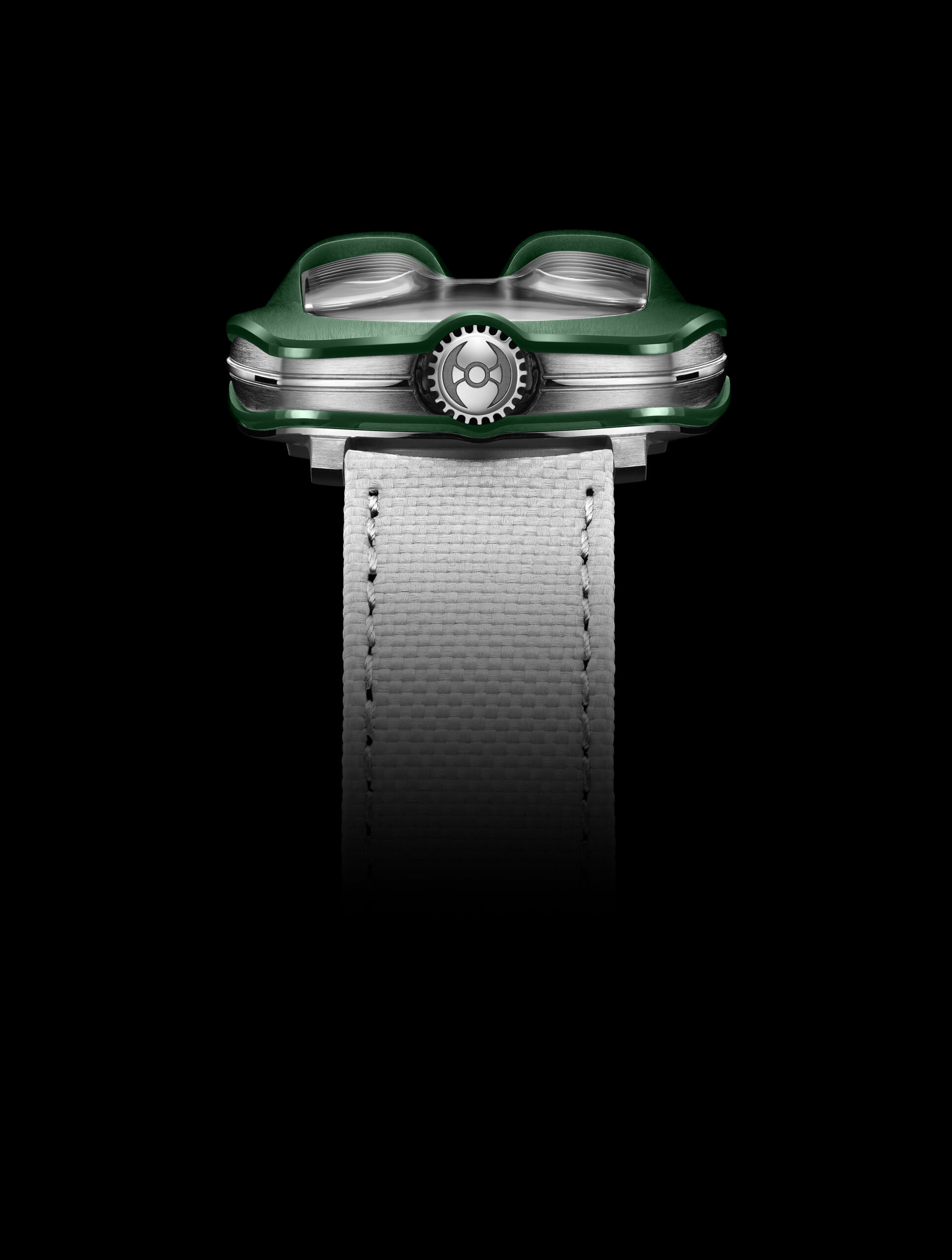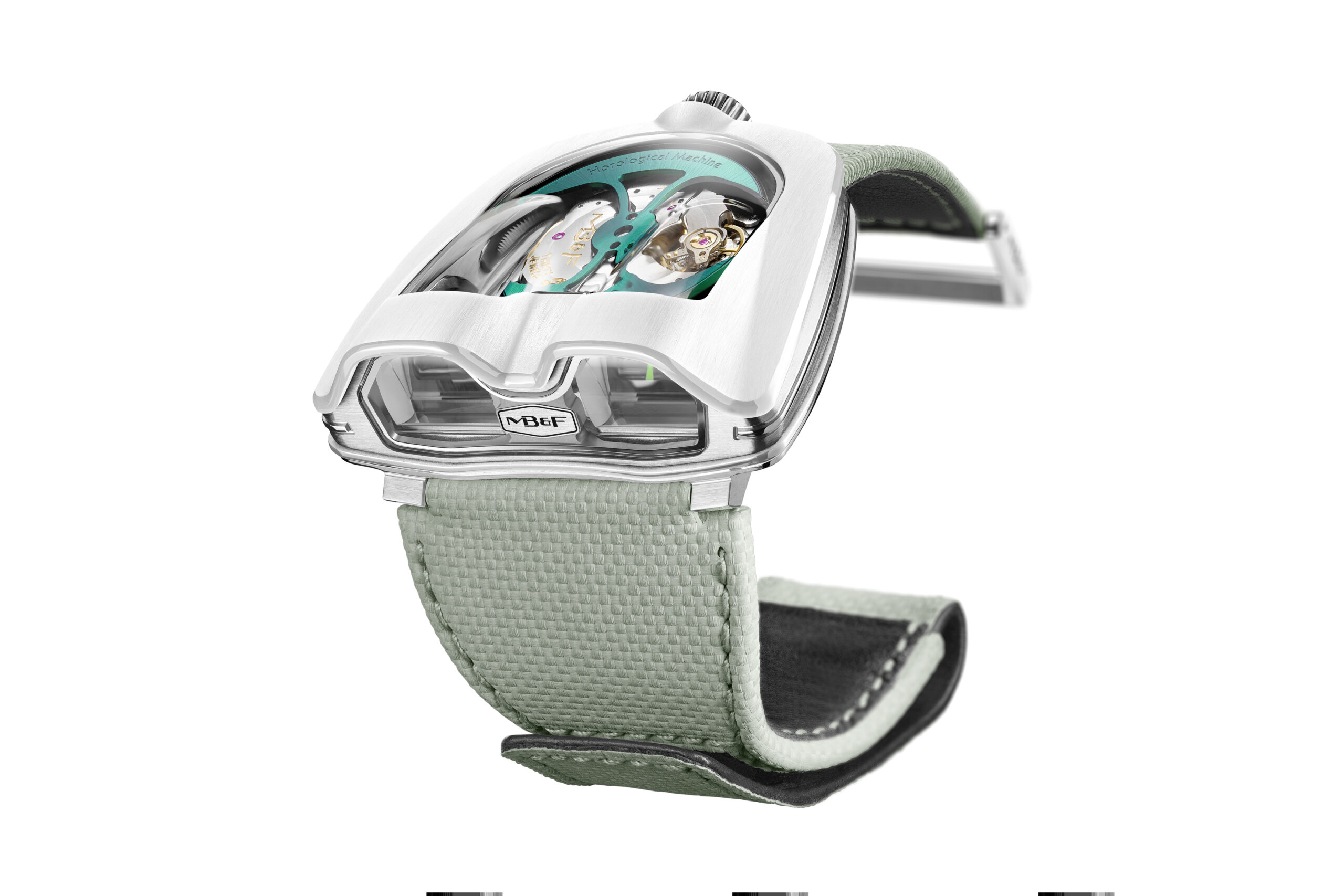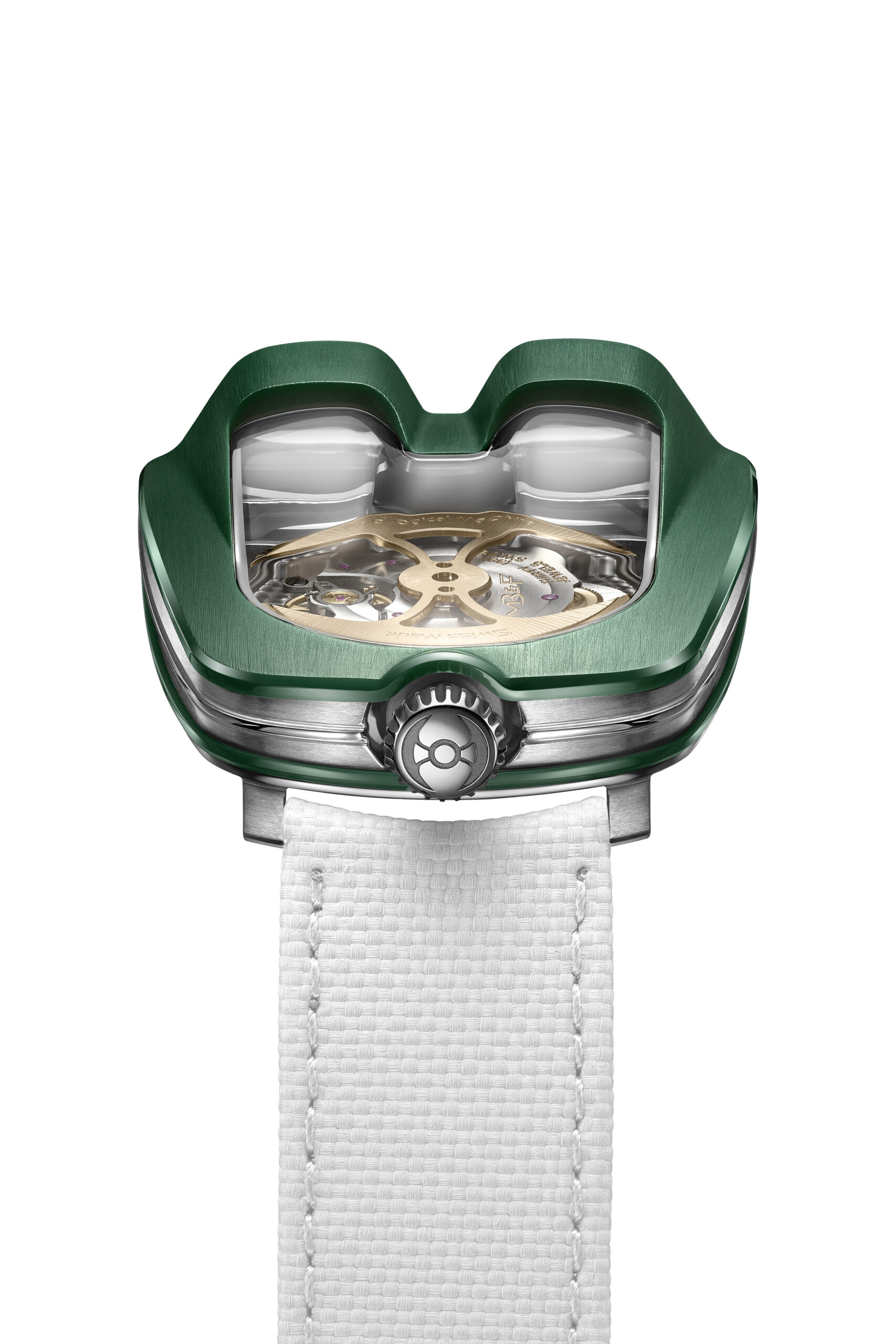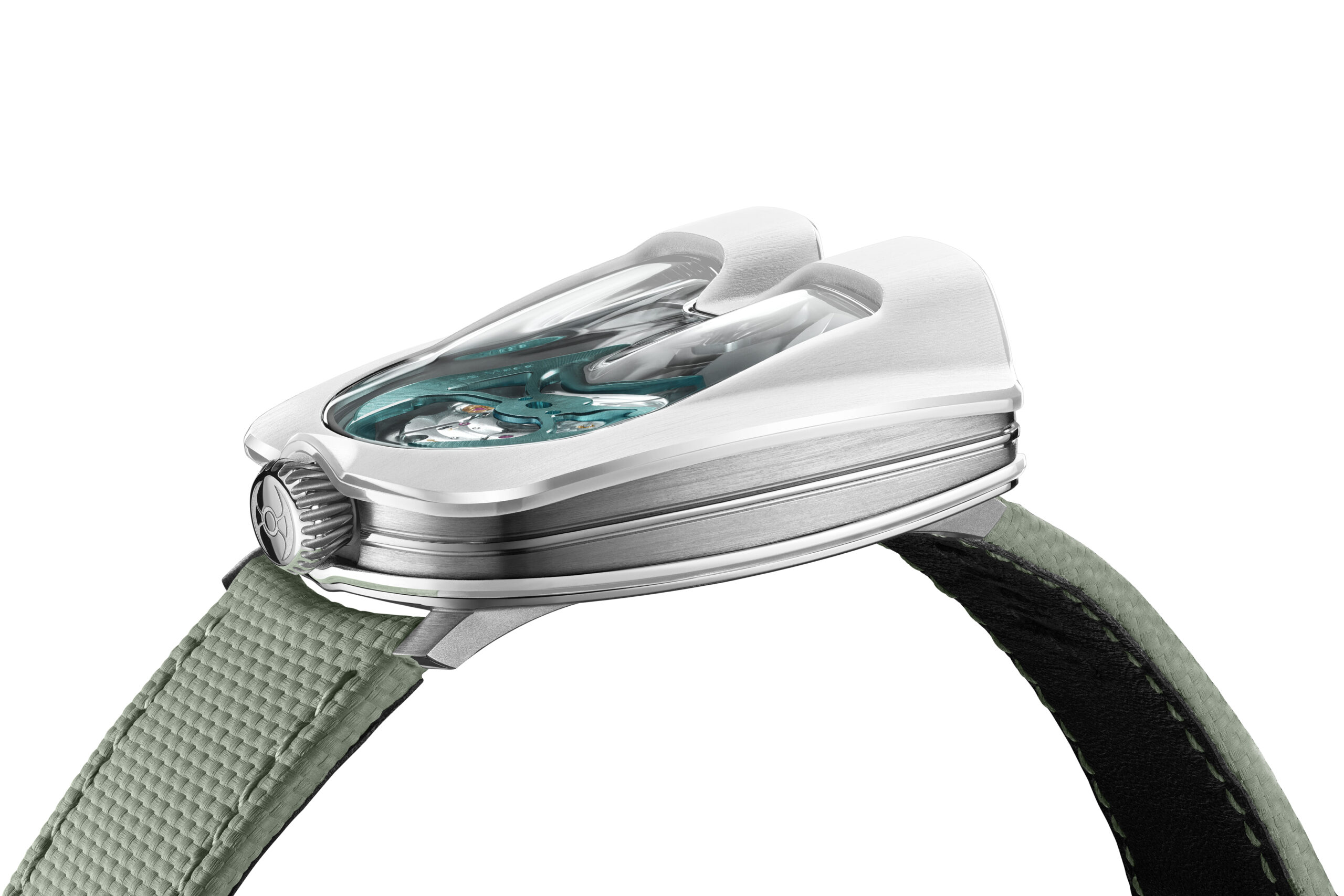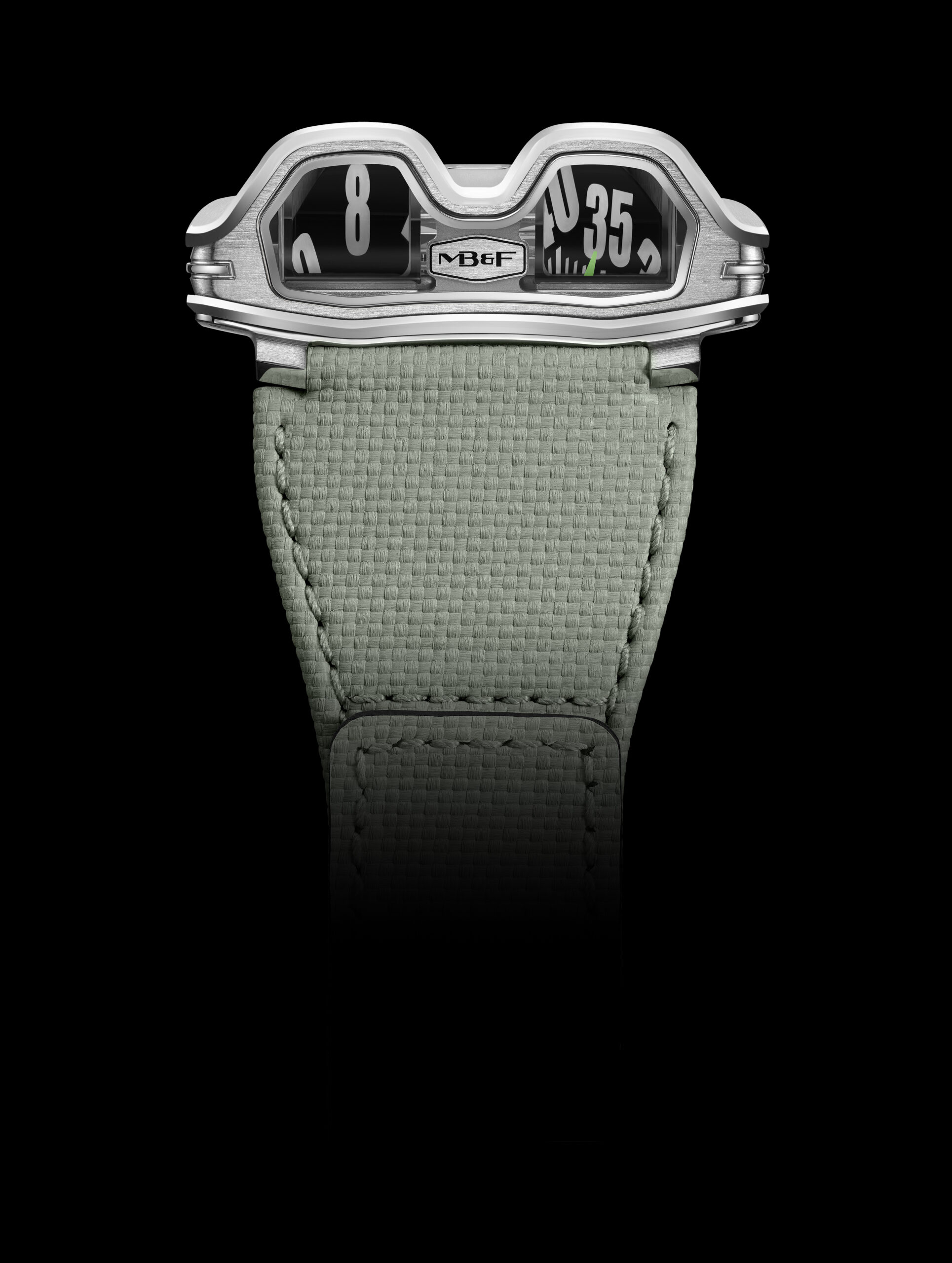Ce qui rend cette montre unique est son mécanisme. Équipée d’un calibre automatique, la HM8 Mark 2 utilise une combinaison unique d’ingénierie mécanique et optique. Son affichage est réalisé grâce à des prismes en verre saphir de haute précision qui projettent l’heure sur un angle de 90 degrés.