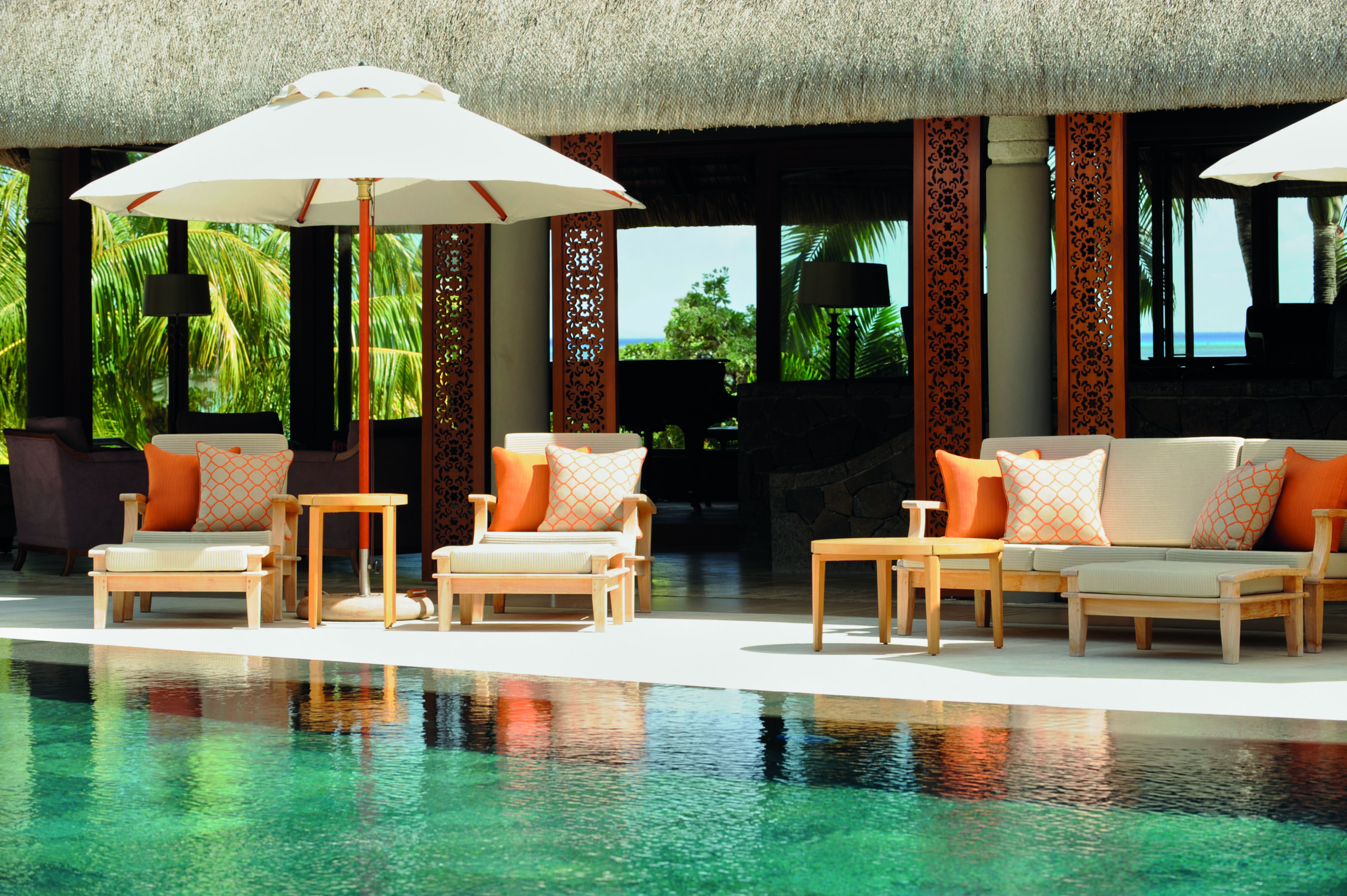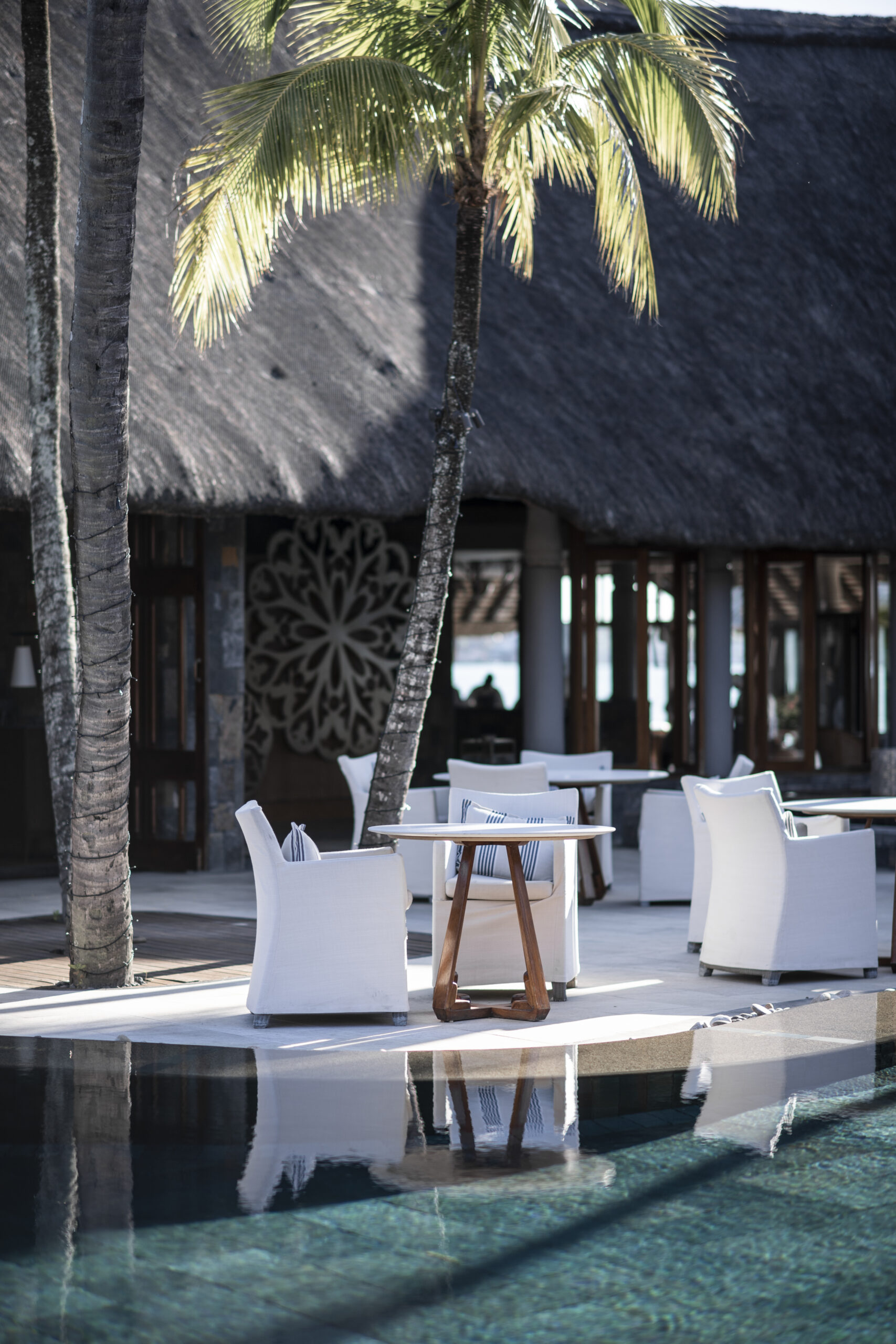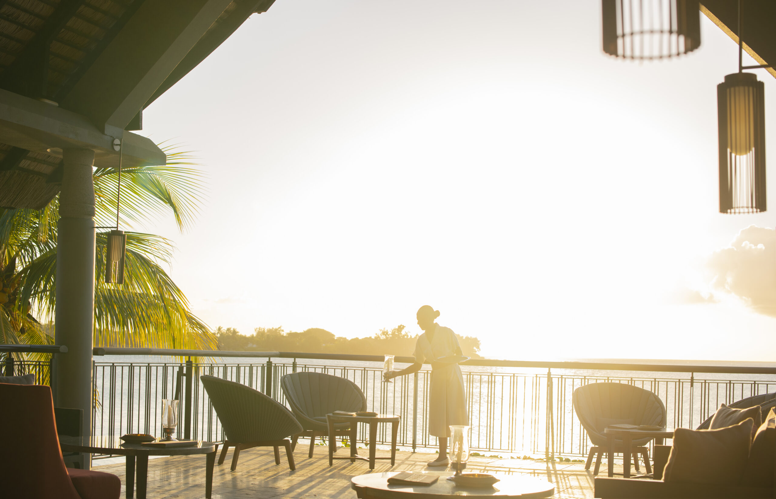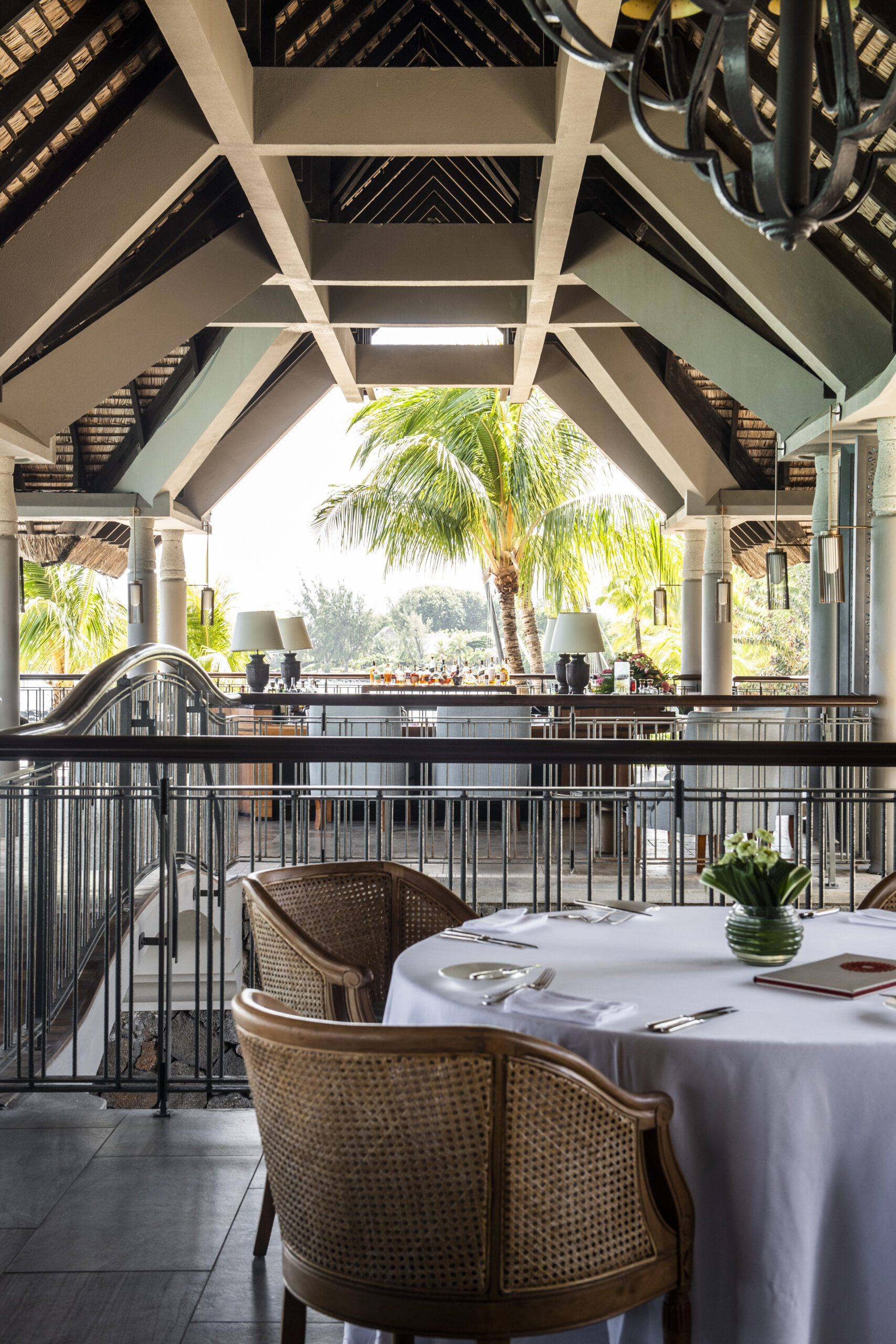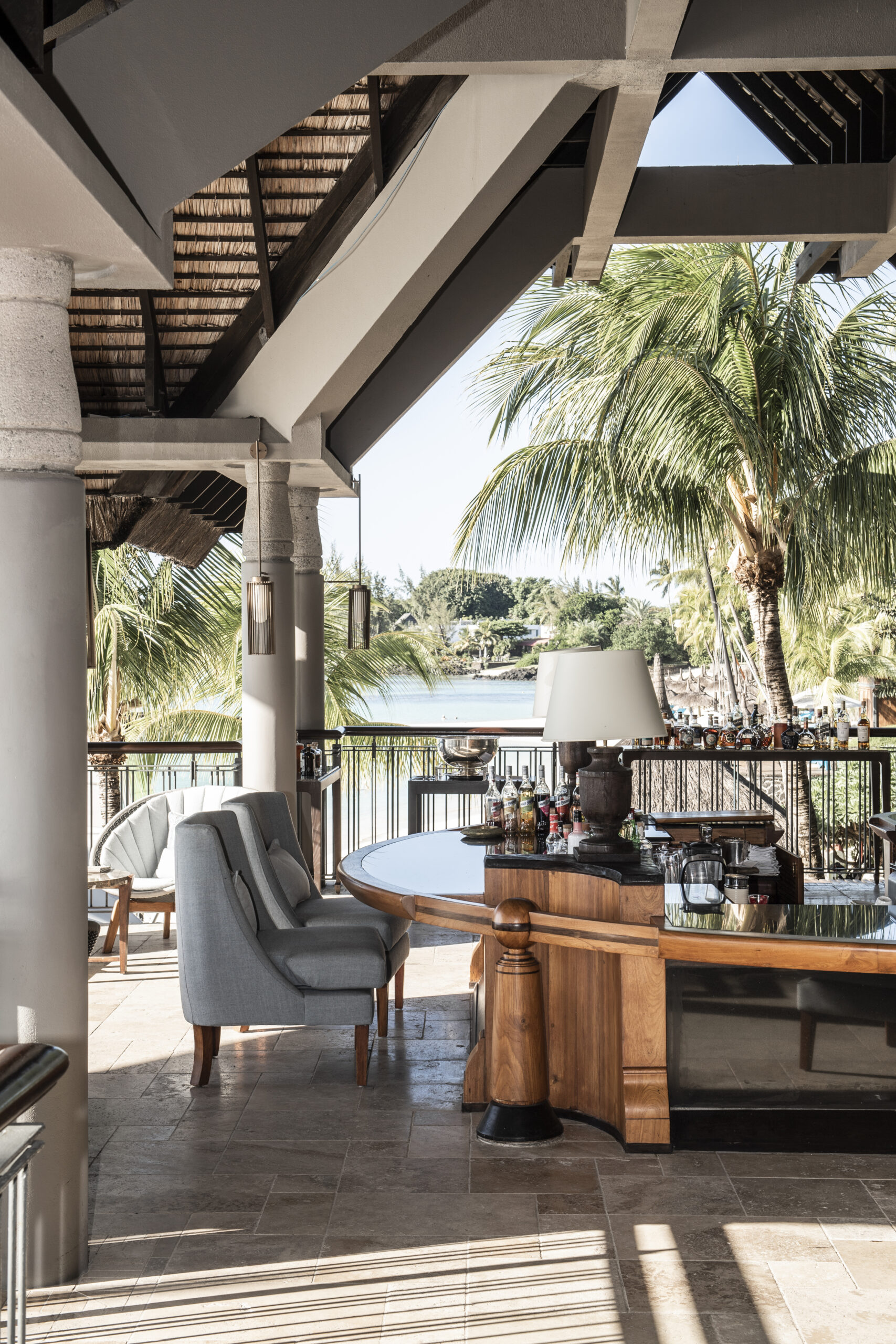 Avec sa vue imprenable sur la baie de Grand Baie, le bar principal est le rendez-vous incontournable du Royal Palm. Son réaménagement voit les boiseries éclaircies et de nouveaux canapés moelleux installés, dans un esprit COCOONing. Le lieu conserve son ambiance feutrée, propice à la détente et aux échanges.