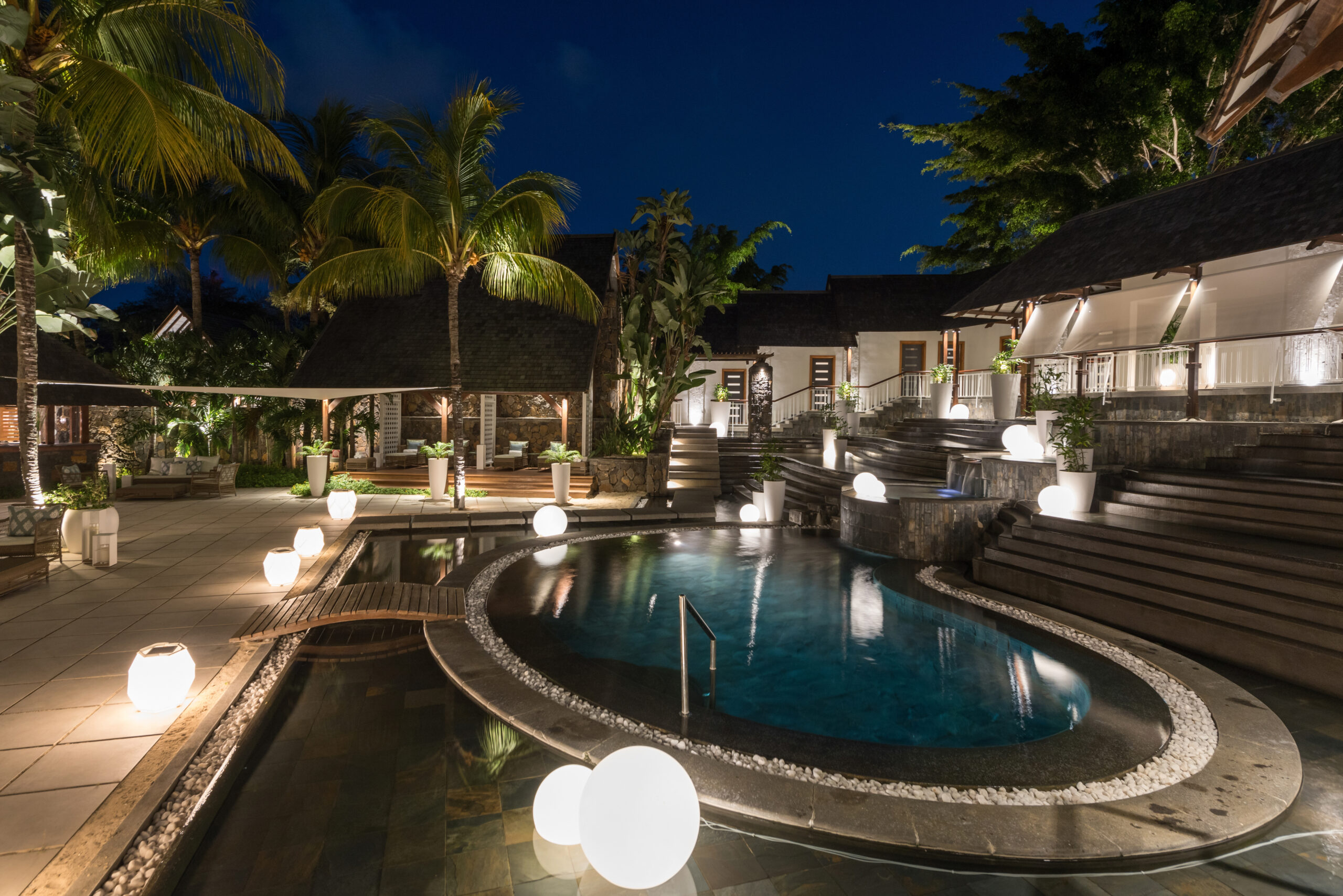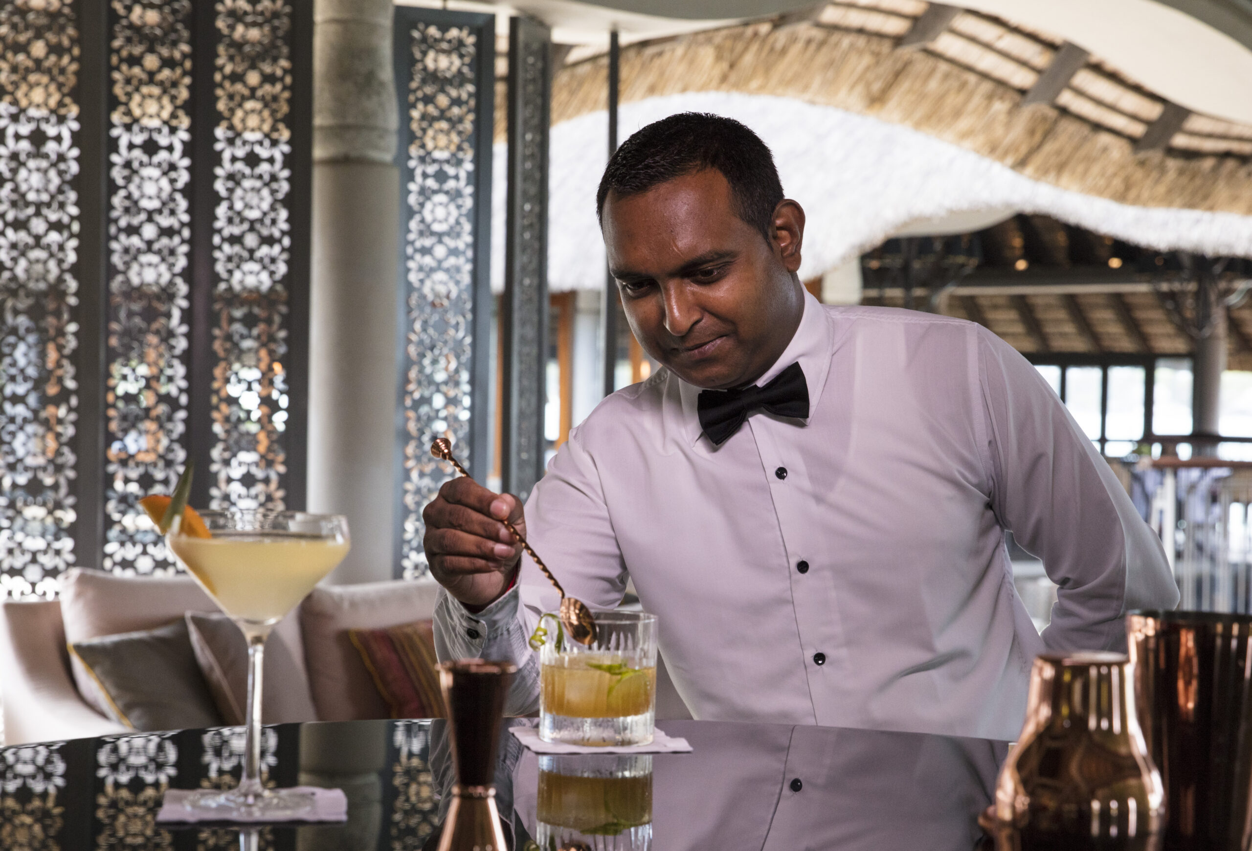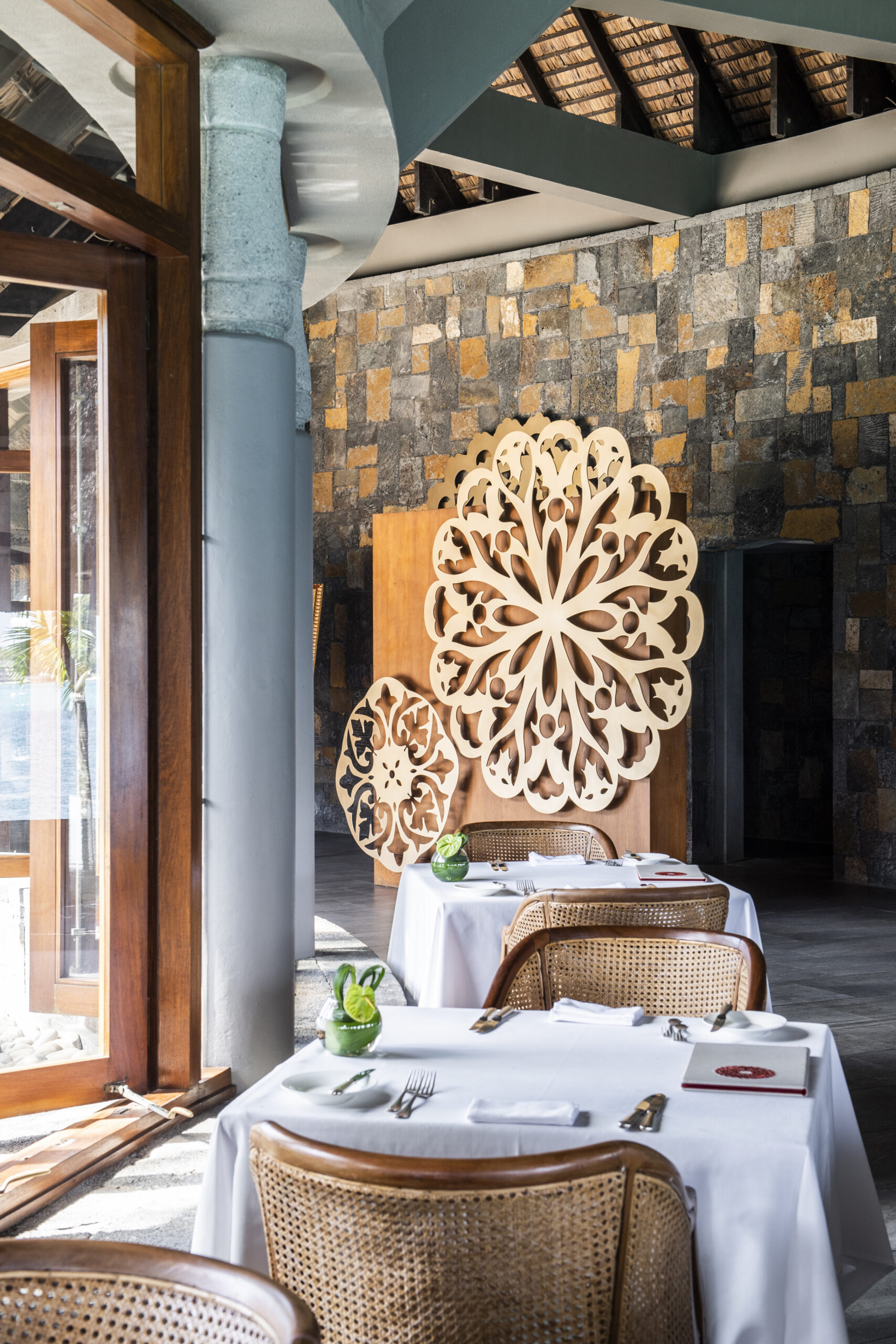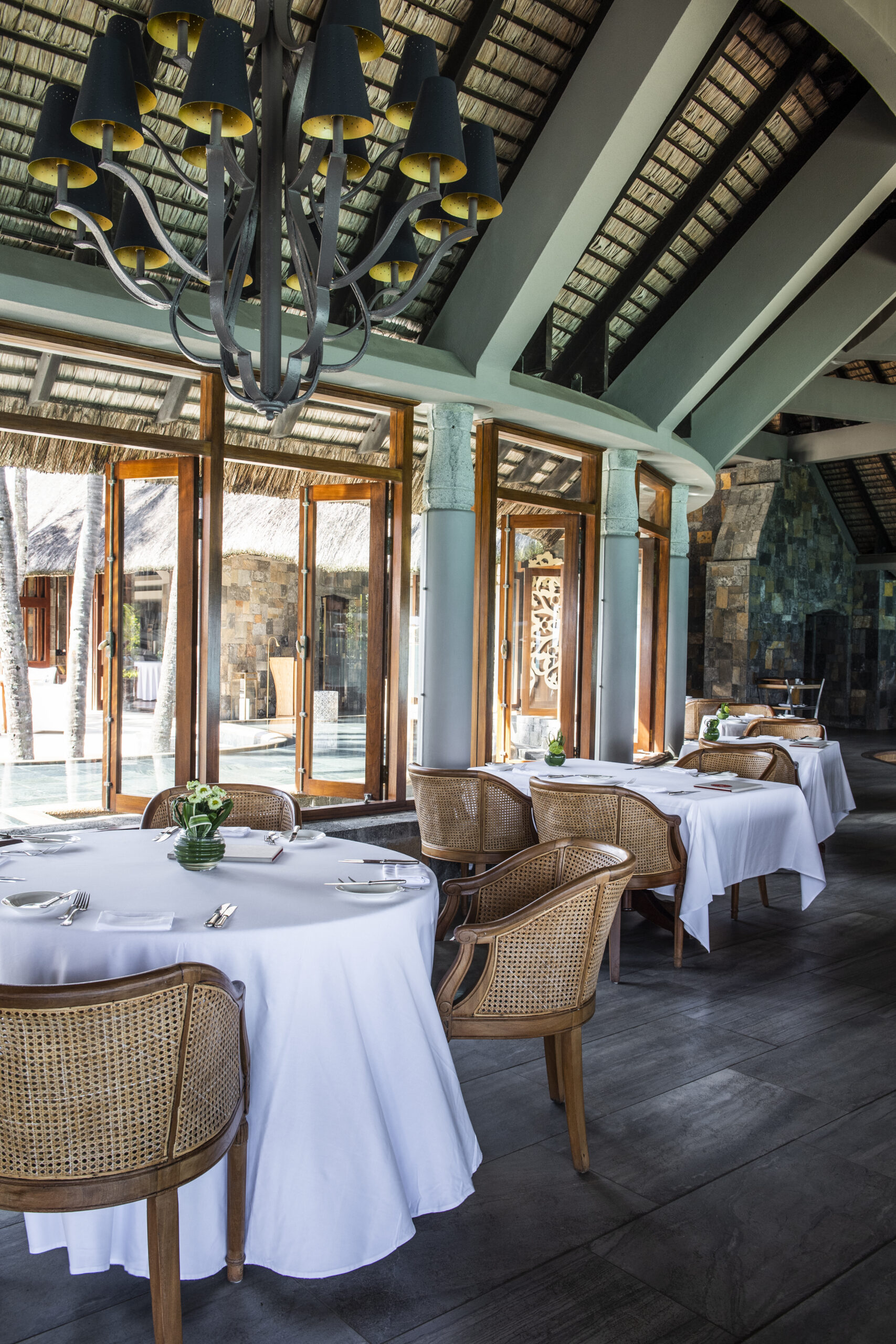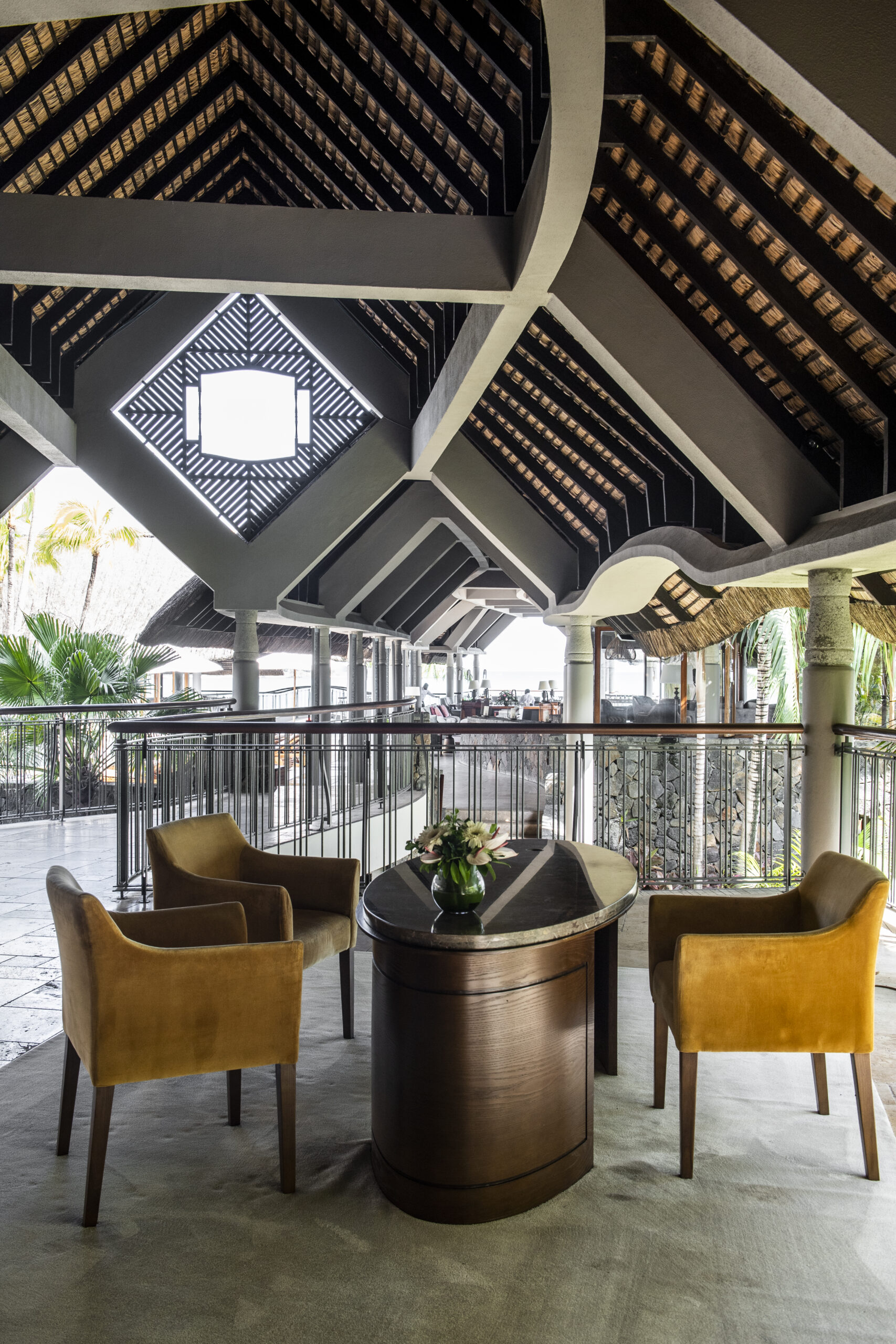 Avec sa vue imprenable sur la baie de Grand Baie, le bar principal est le rendez-vous incontournable du Royal Palm. Son réaménagement voit les boiseries éclaircies et de nouveaux canapés moelleux installés, dans un esprit COCOONing. Le lieu conserve son ambiance feutrée, propice à la détente et aux échanges.