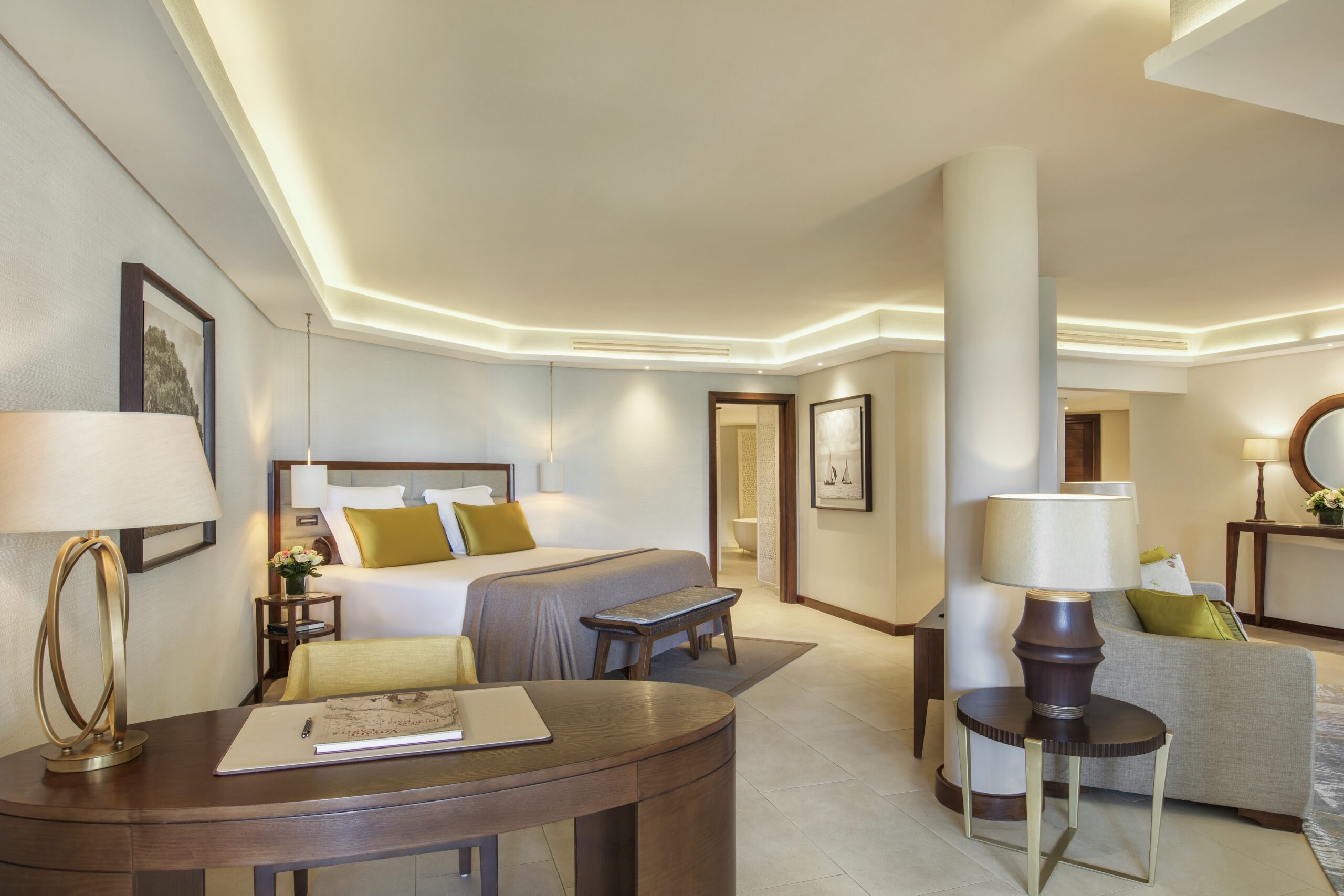Les 69 suites de l’hôtel ont été entièrement repensées dans un style épuré et lumineux. Les teintes claires et les matériaux nobles comme le bois, le lin, la soie, créent une atmosphère apaisante. De la chambre au dressing en passant par la salle de bain, chaque détail contribue à l’harmonie des lieux.
