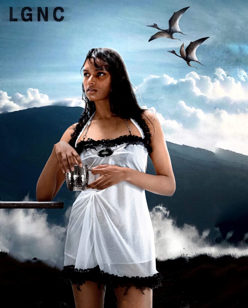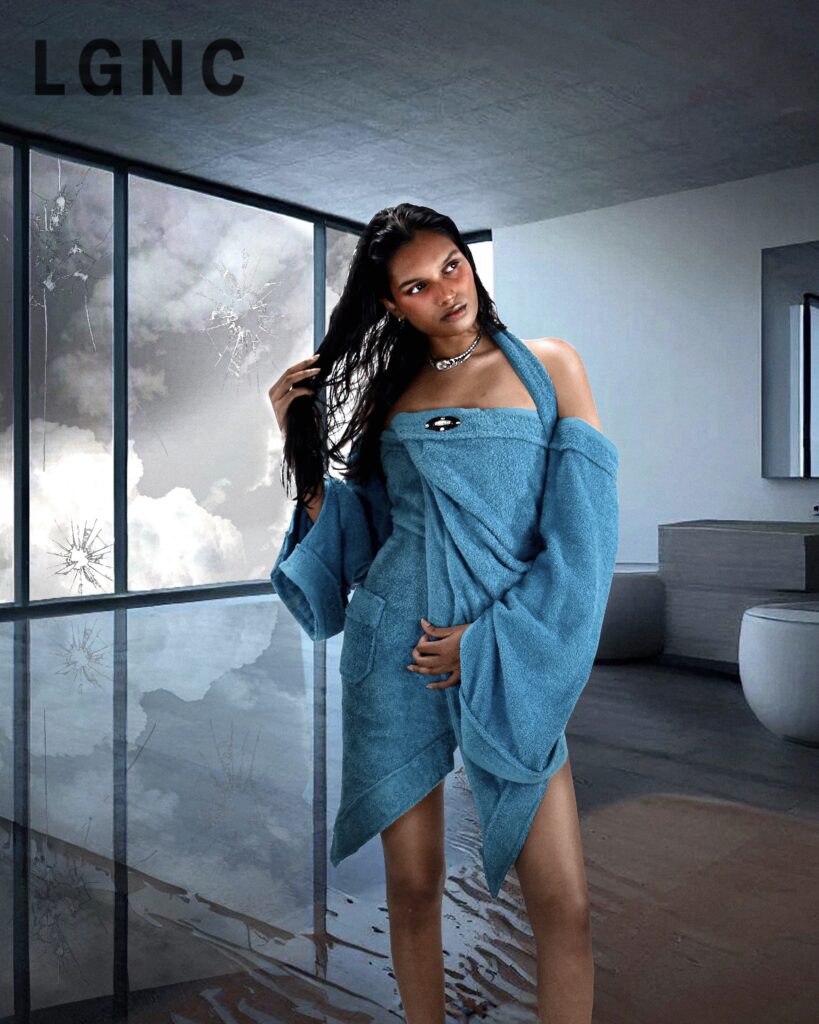Cette collection, à la croisée des chemins entre l’utopie et la réalité, présente un vestiaire féminin métaphorique évoluant dans un monde en plein bouleversement climatique. Mais que l’on ne s’y trompe pas, loin de dépeindre une vision sombre, LGNC choisit de célébrer l’été, les beaux jours, et la capacité de l’Homme à s’adapter et à redéfinir ses habitudes. Une « summer vibe » se dégage de chaque pièce, évoquant ces moments estivaux que nous chérissons tant, tout en rappelant l’importance de vivre en harmonie avec la nature.
