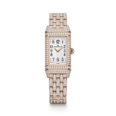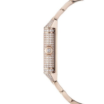 La Reverso One Duetto Jewellery transcende les attentes, se muant en une pièce majestueuse de haute joaillerie. Son bracelet, sa boîte, et même ses maillons sont entièrement pavés de diamants – au total, 719 pour être précis. Chaque maillon en or rose du bracelet est une invitation à admirer le savoir-faire de l’Atelier des Métiers Rares®, où quatre diamants trouvent refuge dans une harmonie parfaite.