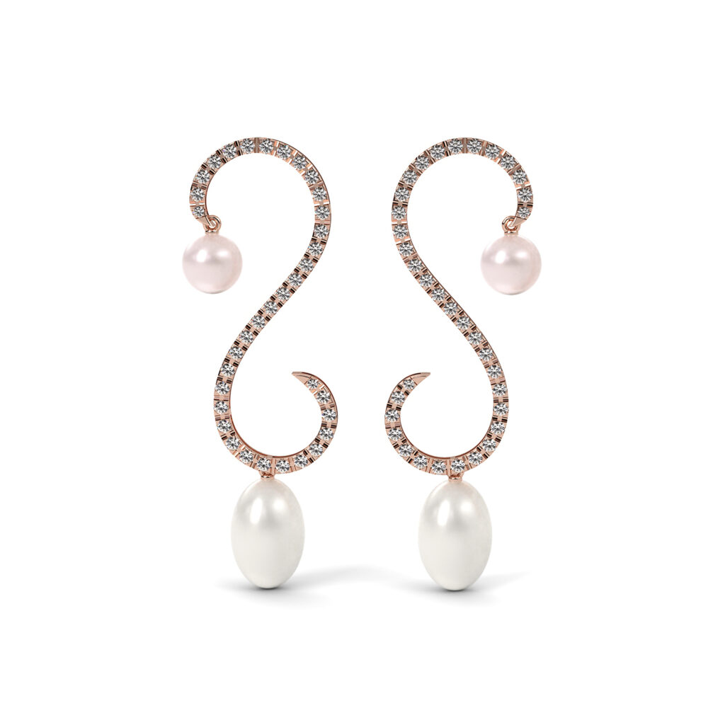 • Boucles d’oreilles « Perles » en or rose 750/1000e, serties de diamants et accompagnées de perles de culture blanches et roses (Réf. E972) : Prix de Vente Public conseillé de 6 250 €.
