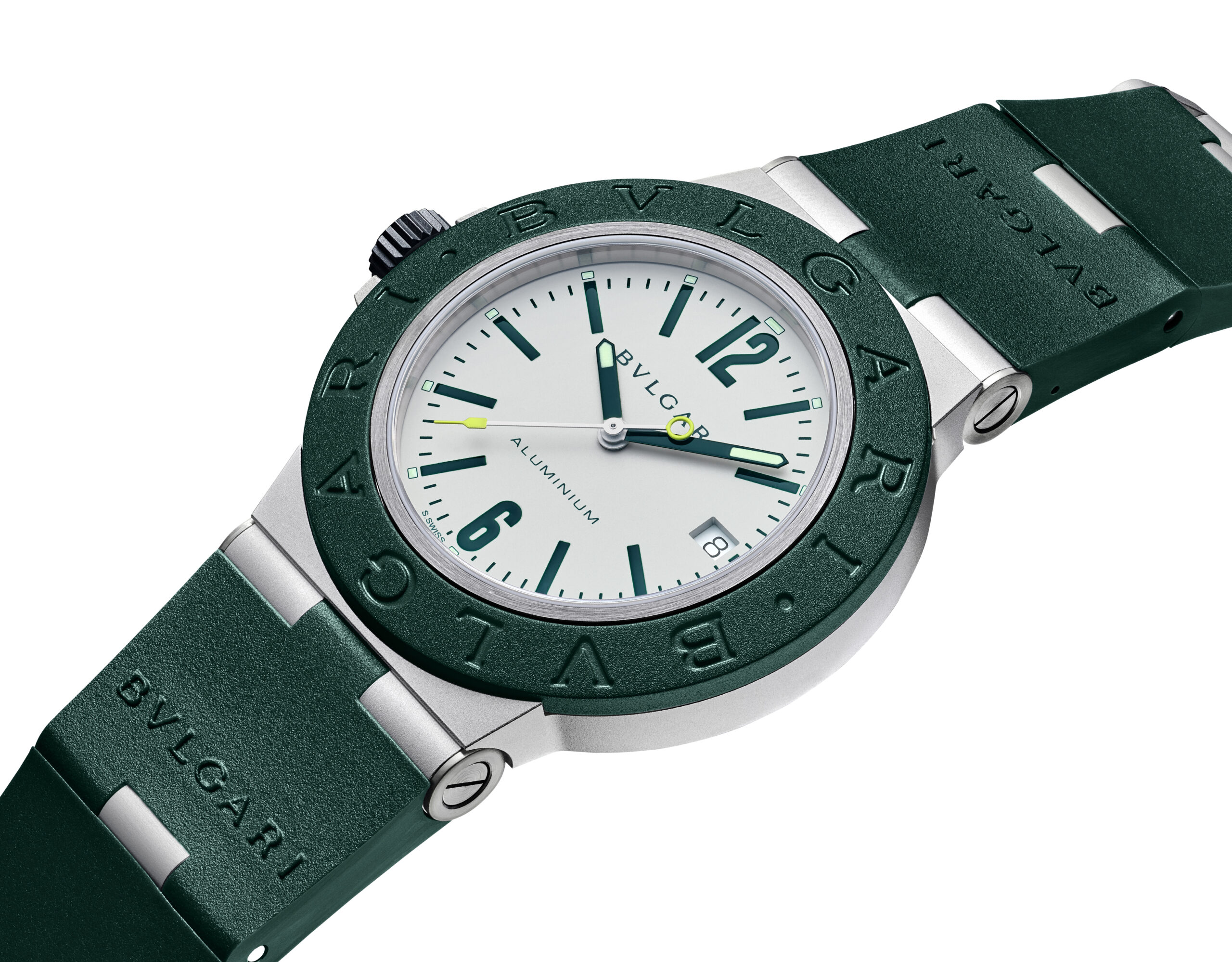 Rehaussée d’un mouvement mécanique à remontage automatique en 2020, la Bulgari Aluminium a renforcé sa place parmi les montres les plus convoitées. Aujourd’hui, elle revient sur le devant de la scène, plus colorée et audacieuse que jamais, illustrant le génie créatif de la maison Bulgari.