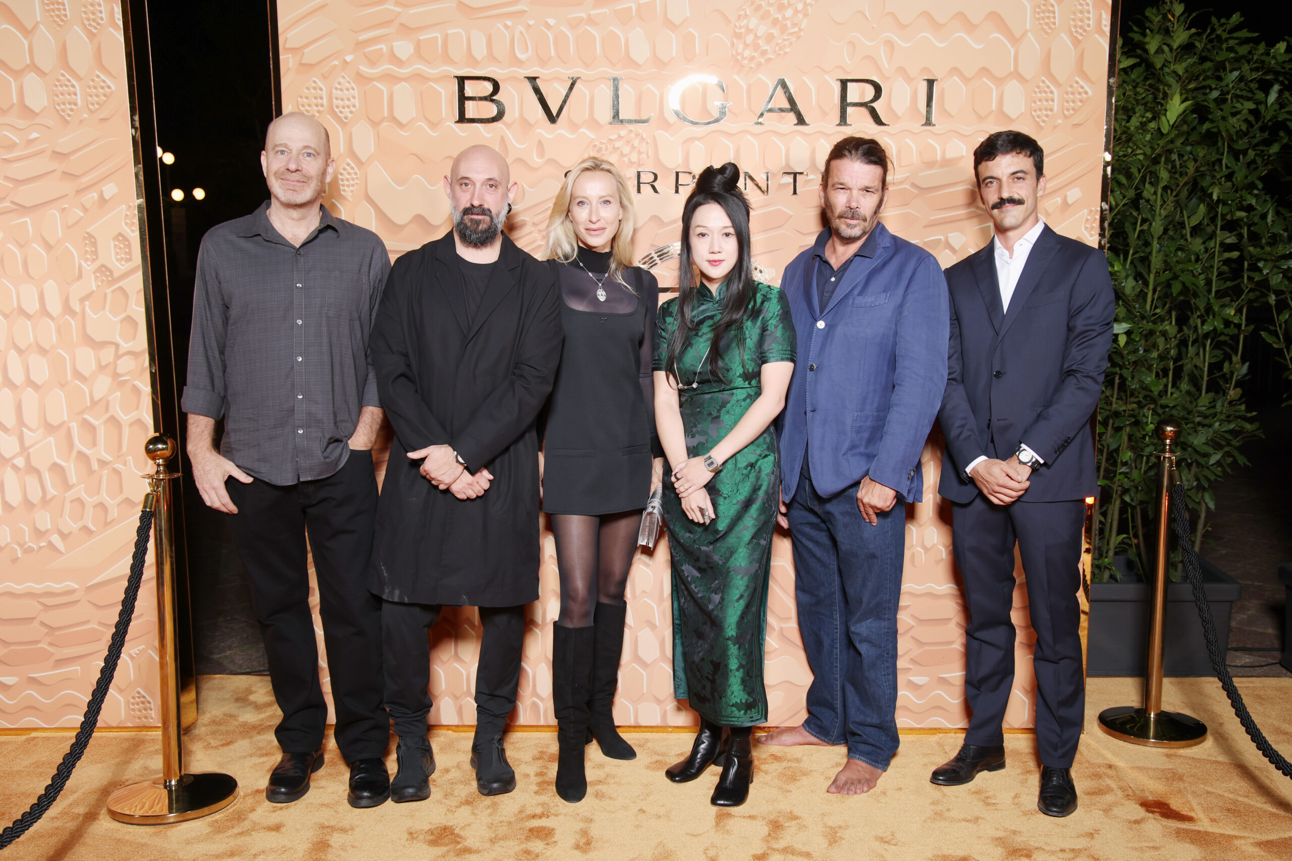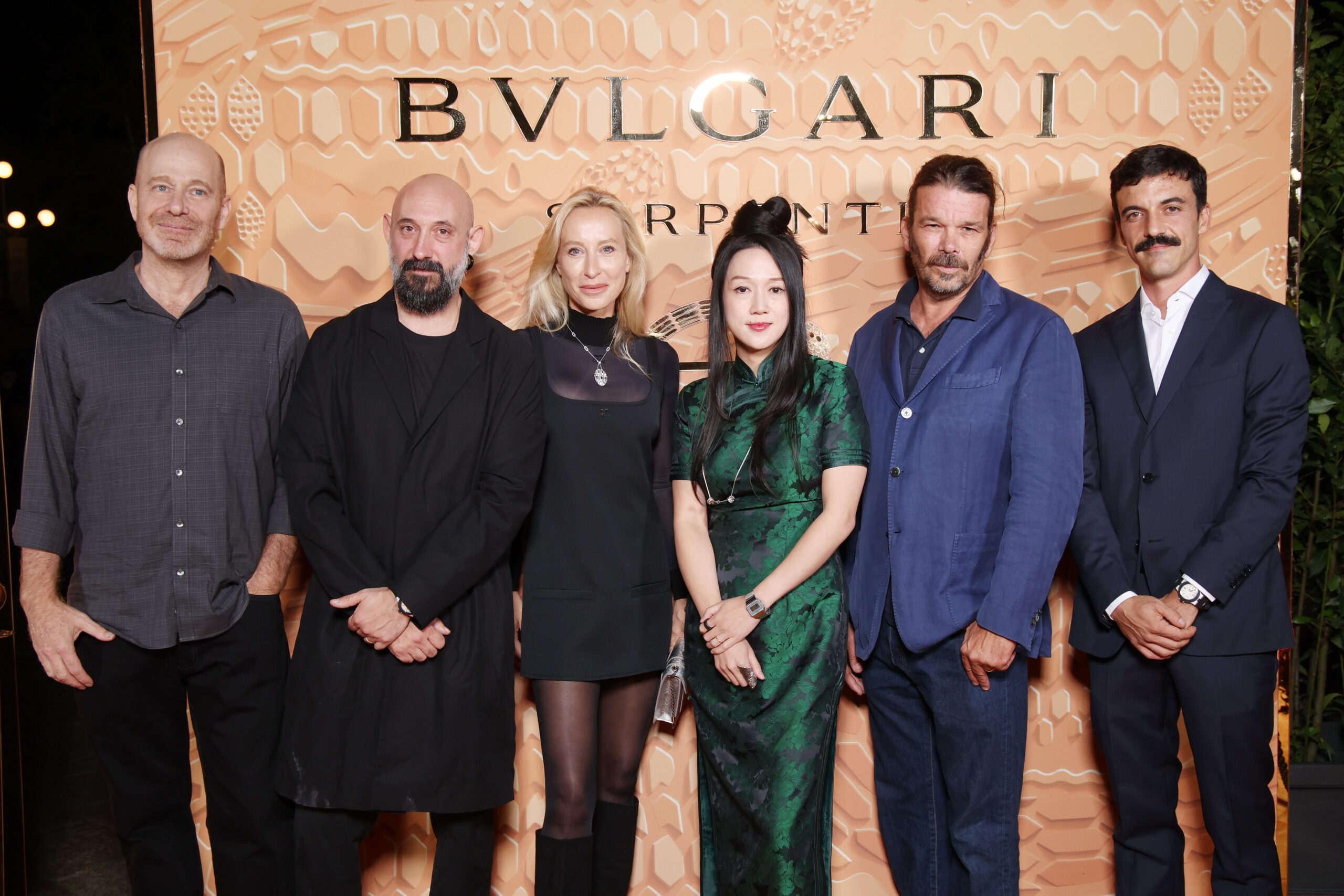 - MILAN, ITALY – OCTOBER 10: (L-R) Daniel Rozin, Quayola, Cate M, Sougwen Chung, Fabrizio Bixio Braghieri and Filippo Salerni attend the Bulgari « Serpenti. 75 Years Of Infinite Tales » exhibition opening on October 10, 2023 in Milan, Italy. (Photo by Daniele Venturelli/Getty Images for Bulgari)