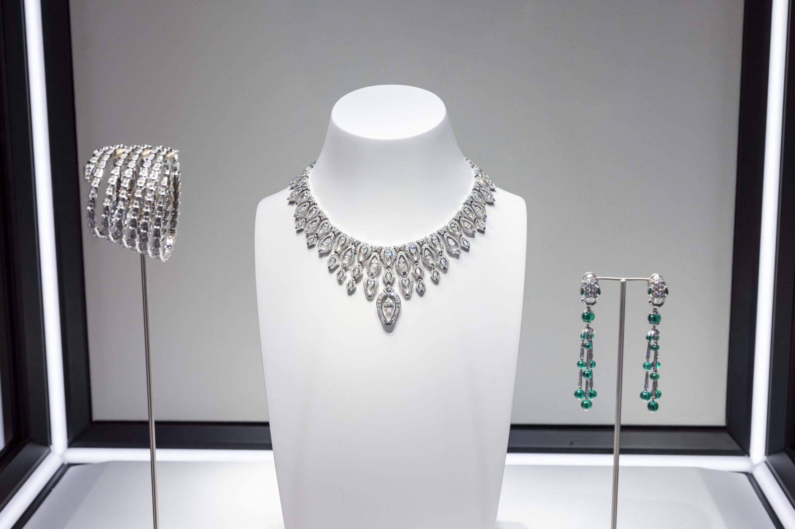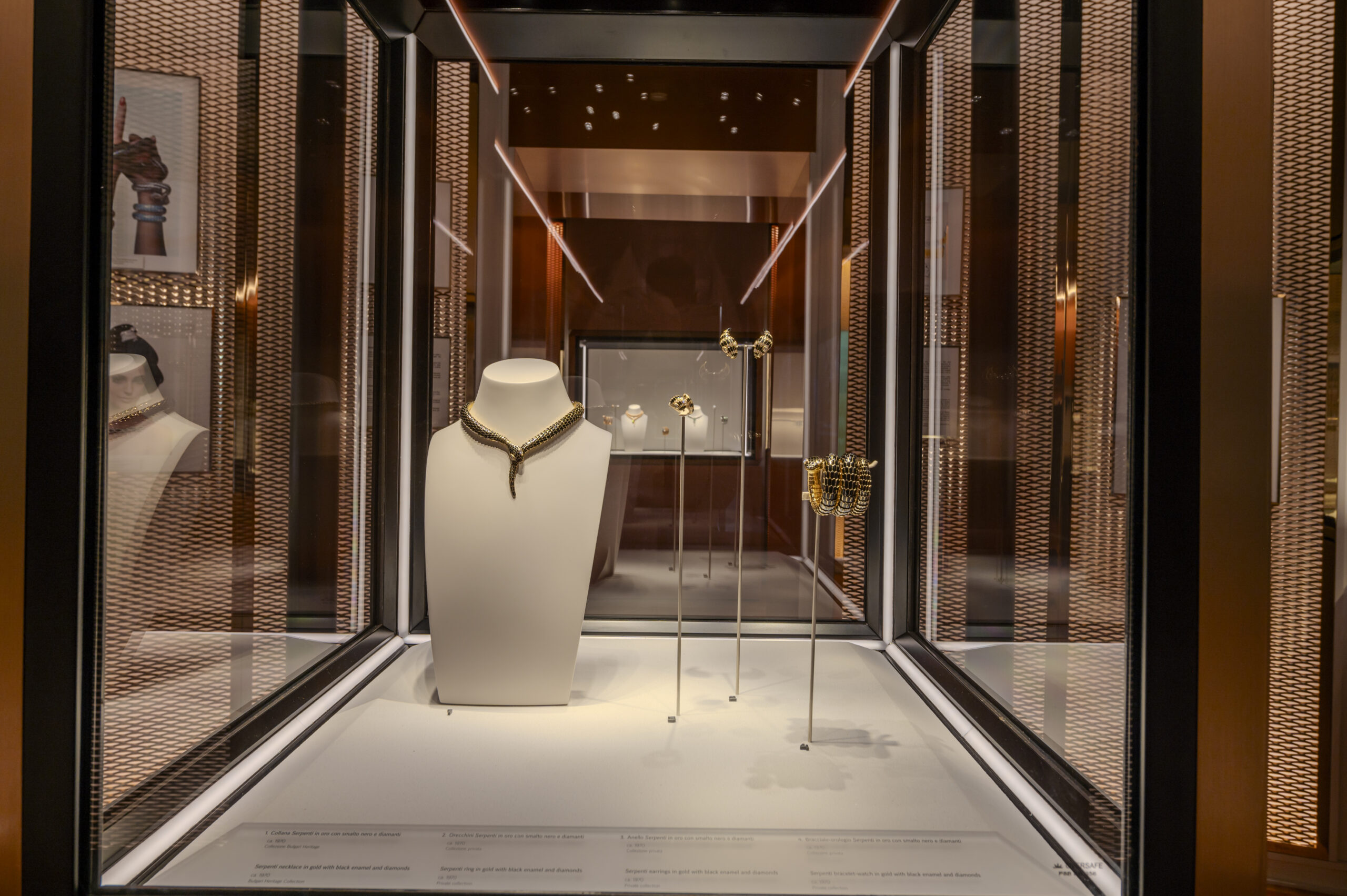 - MILAN, ITALY – OCTOBER 10: A general view during the Bulgari « Serpenti. 75 Years Of Infinite Tales » exhibition opening on October 10, 2023 in Milan, Italy. (Photo by Daniele Venturelli/Getty Images for Bulgari)