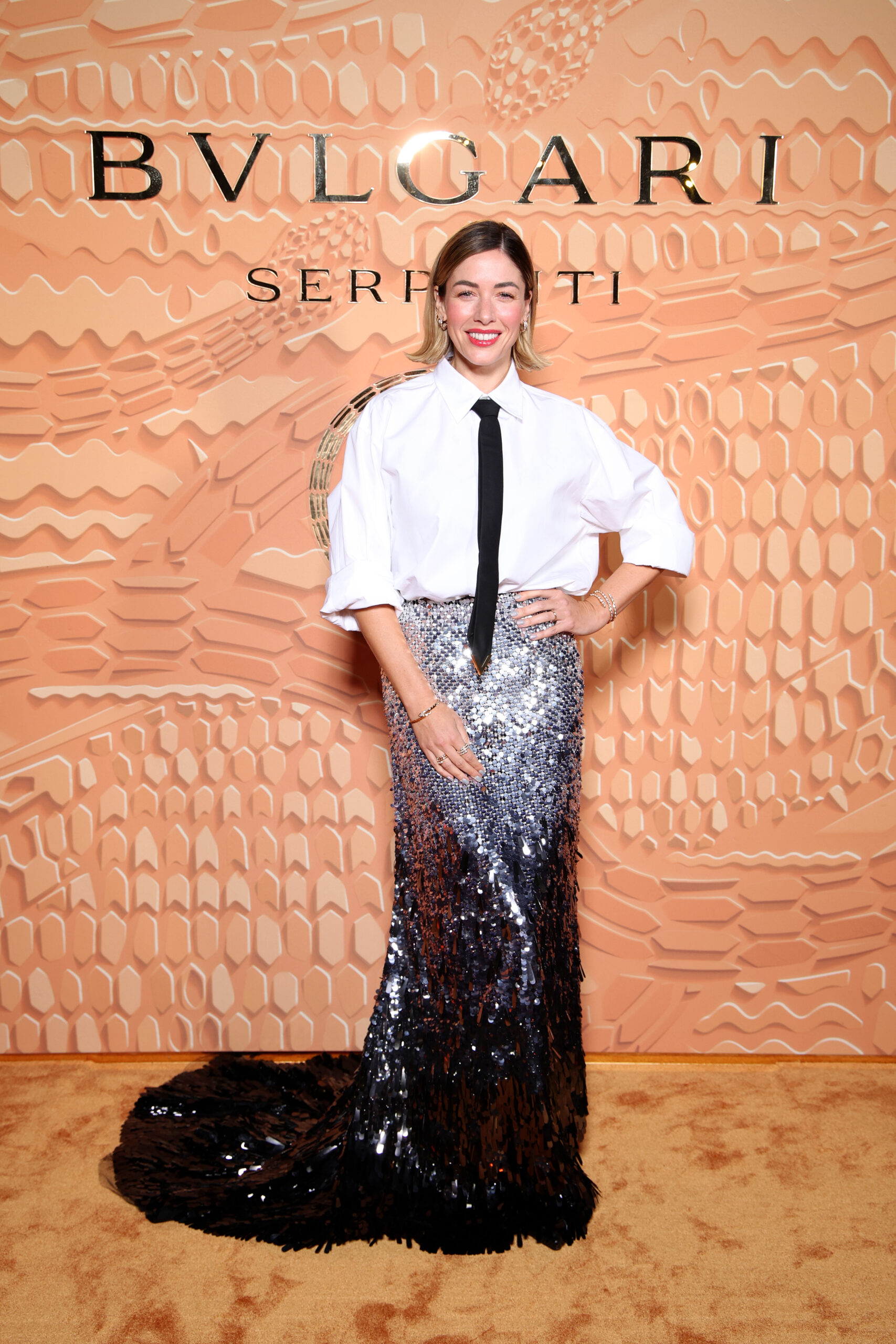 - MILAN, ITALY – OCTOBER 10: Lucia Silvestri attends the Bulgari « Serpenti. 75 Years Of Infinite Tales » exhibition opening on October 10, 2023 in Milan, Italy. (Photo by Daniele Venturelli/Getty Images for Bulgari)