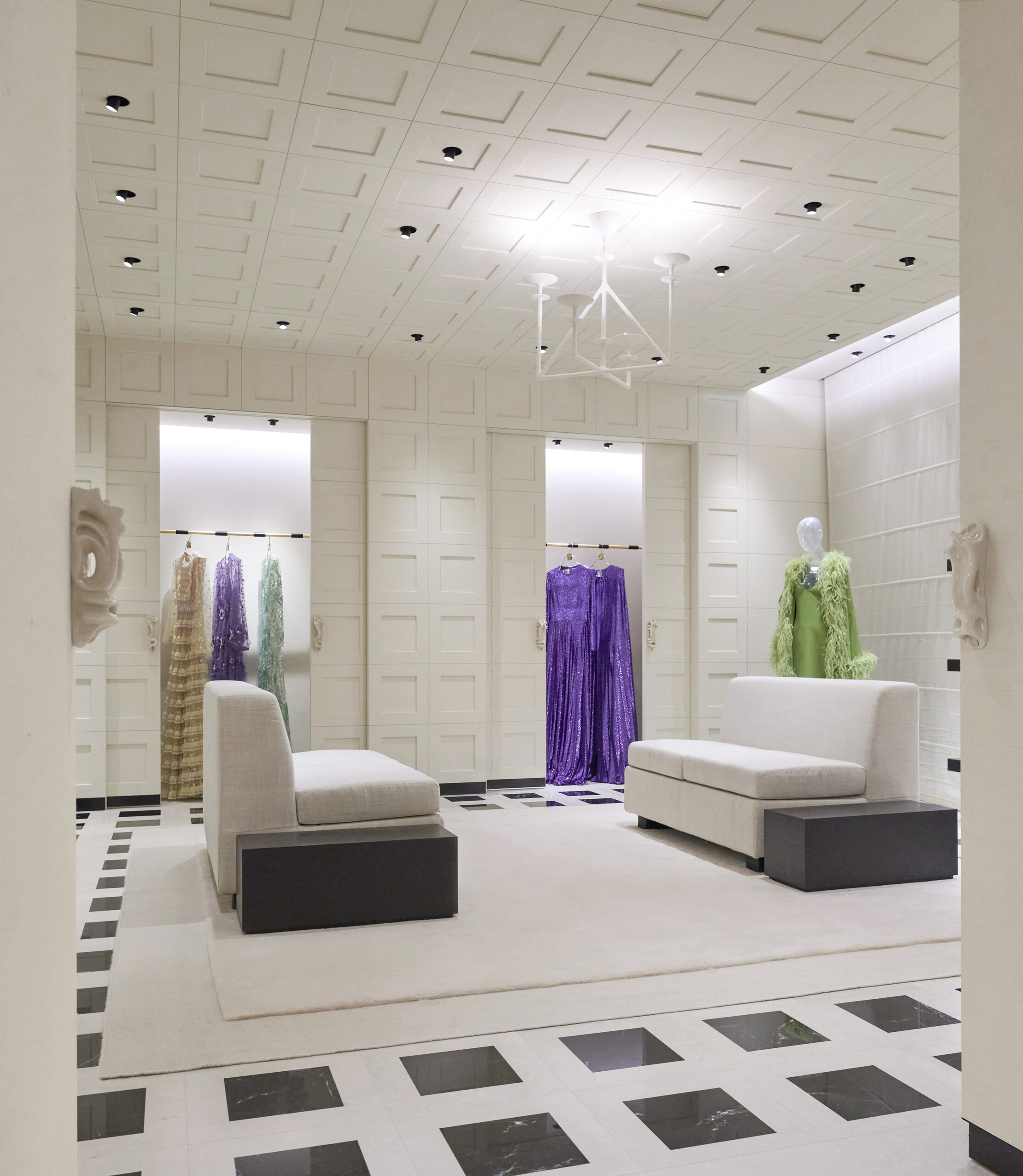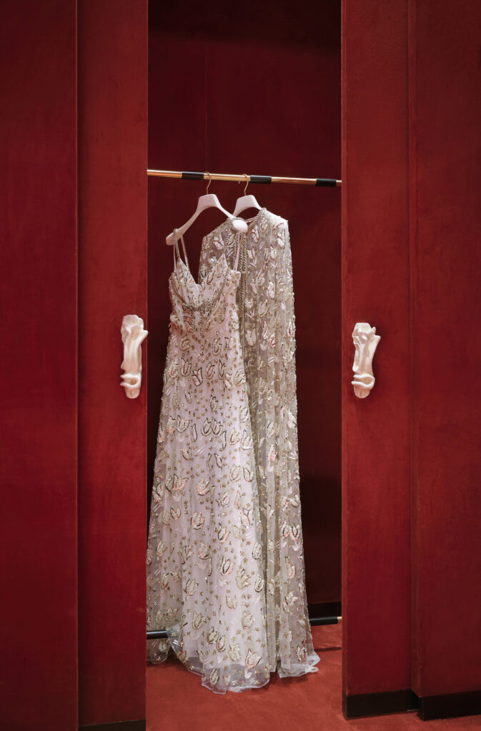 À quelques numéros seulement de son ancienne demeure, Valentino redéfinit son identité tout en restant fidèle à ses racines. L’espace, magnifiquement étalé sur trois niveaux, réunit le Prêt-à-porter femme, les accessoires et, dans un geste audacieux, un étage entièrement dédié à la collection homme. Cette réinvention a été conçue par deux maîtres d’œuvre : Jacopo Venturini et Pierpaolo Piccioli, qui incarnent la vision et l’essence de la maison de couture.