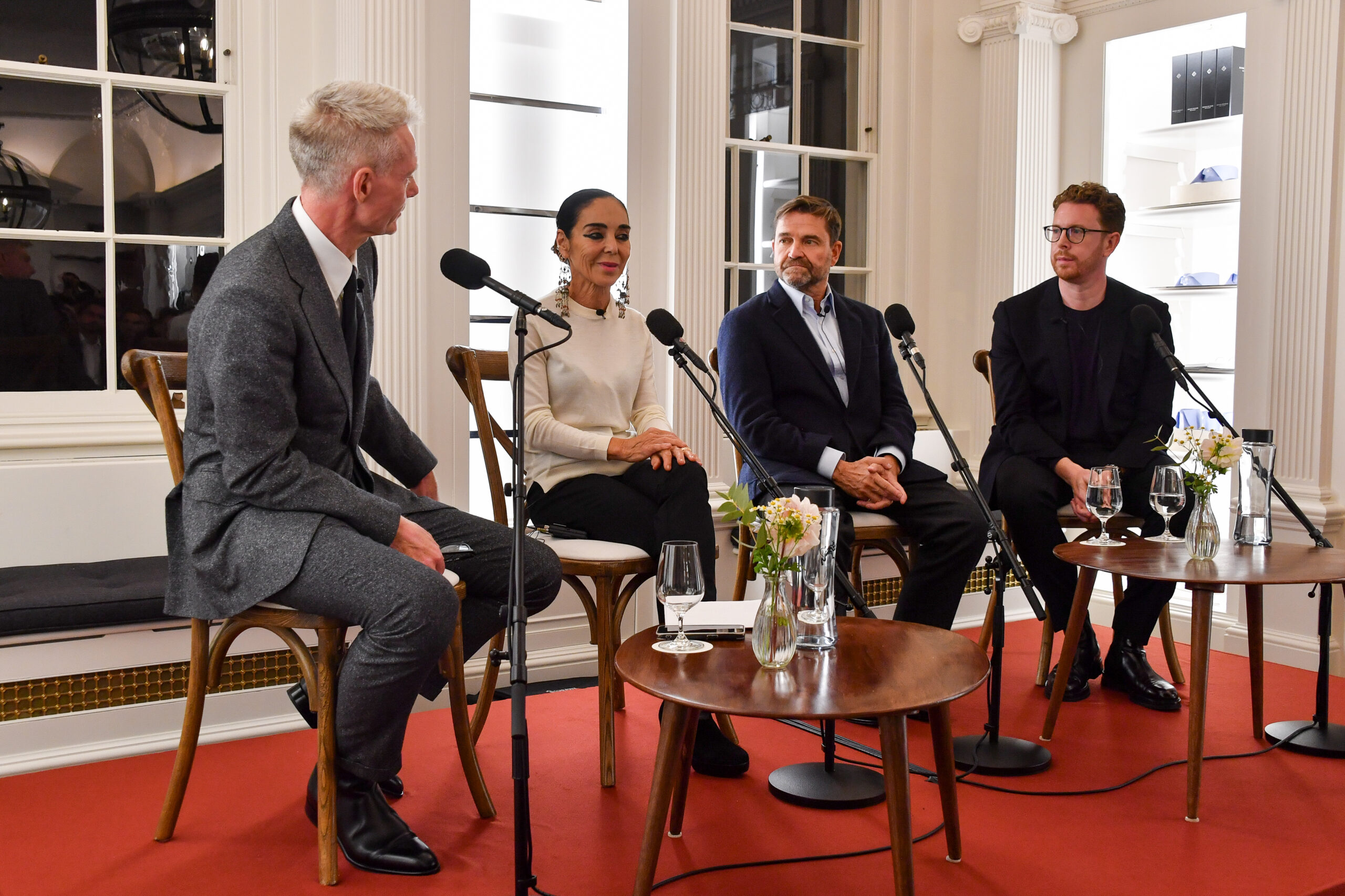 La liste des invités était un véritable who’s who du monde de l’art et du design. On comptait parmi eux Nathan Clements-Gillespie, Dr Nicholas Cullinan, Tim Marlow, Jamie Fobert, et bien d’autres, tous habillés en dunhill pour l’occasion. Tim Marlow, directeur du Design Museum, a animé une discussion de panélistes de renom, dont le Dr Nicholas Cullinan de la National Portrait Gallery et l’artiste visuelle Shirin Neshat.