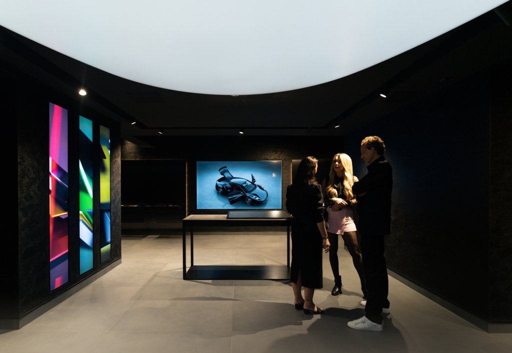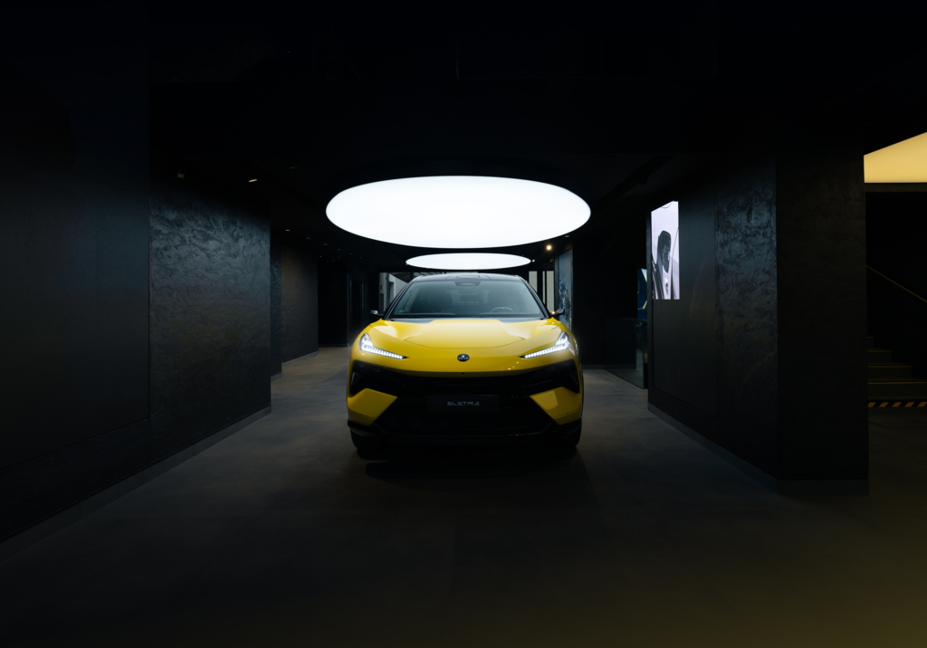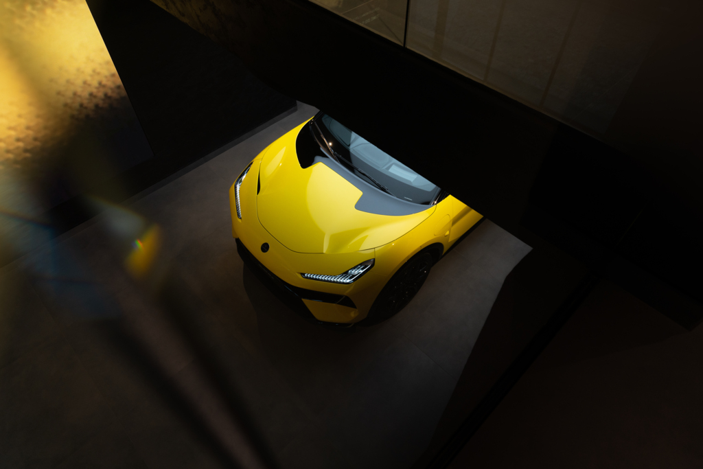 Dès que l’on franchit le seuil du 33 rue François 1er dans le huitième arrondissement, l’univers Lotus s’étend devant nous sur trois niveaux dédiés. Chacun des étages est une ode à une facette particulière de la marque. Au rez-de-chaussée, le visiteur est accueilli par les teintes vives de Lotus, qui servent de toile de fond aux modèles les plus récents tels que l’Hyper-SUV Eletre ou la sportive Emira. Les nuances audacieuses et électrisantes annoncent une nouvelle génération de véhicules électriques performants.