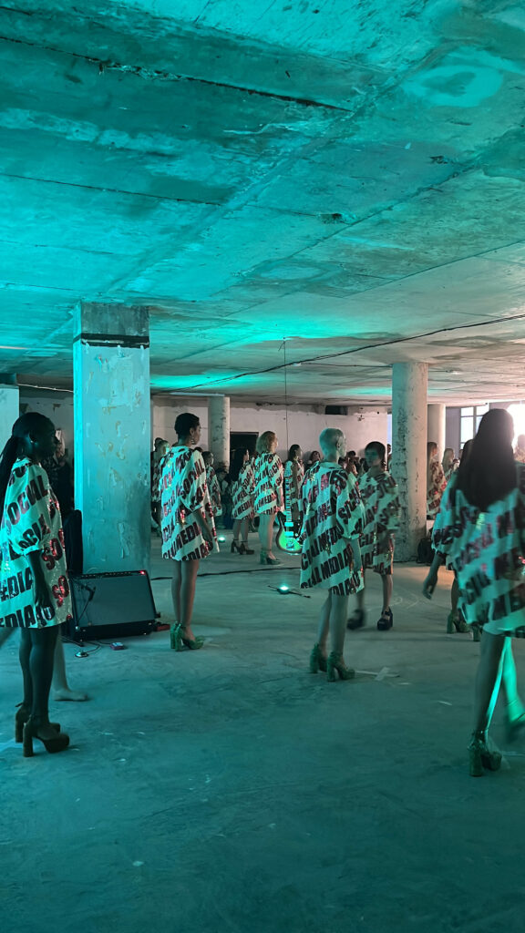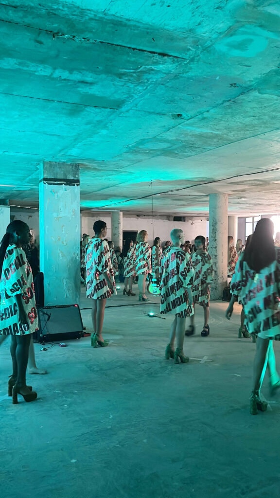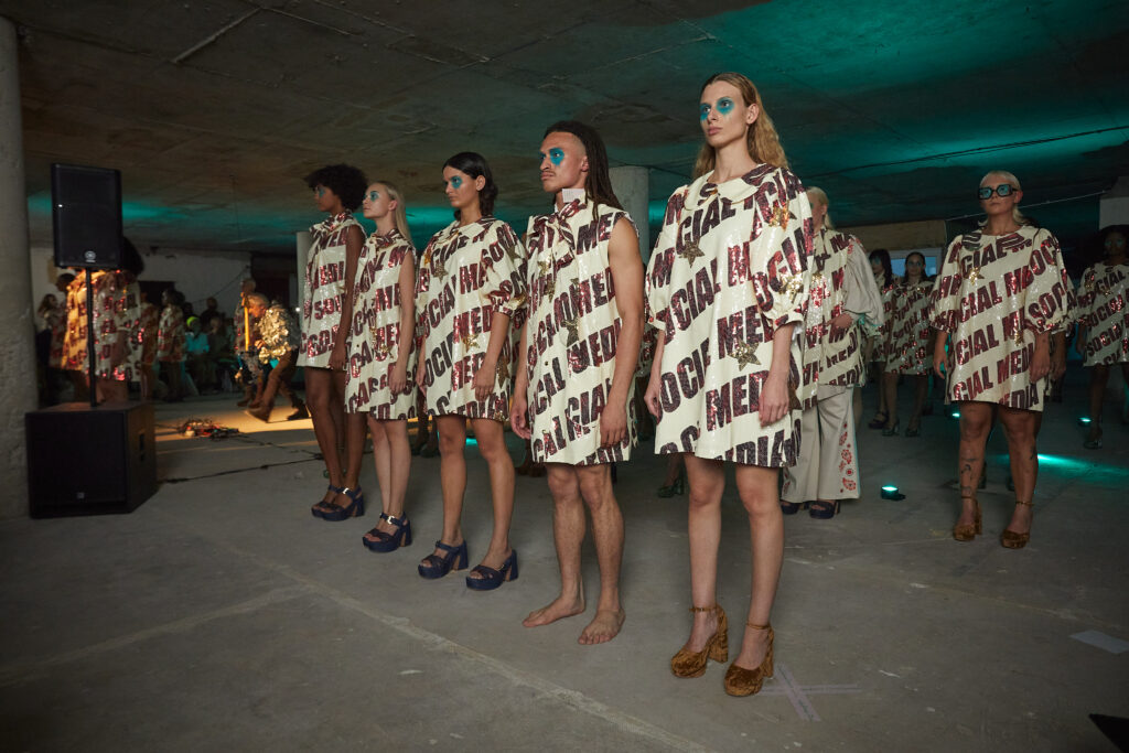 Mais l’aspect le plus frappant de l’approche d’Ivana Helsinki réside dans son retrait volontaire des médias sociaux. Il y a un an et demi, la marque fermait tous ses comptes, un choix audacieux qui souligne l’engagement d’Ivana Helsinki envers l’authenticité dans une industrie saturée de présence en ligne. Paola Suhonen a exprimé que le rejet des médias sociaux était un moyen fort et intrigant de se démarquer dans un monde de la mode où tous les tabous semblent avoir été brisés. Le thème de l’absence de médias sociaux a trouvé un écho particulier dans la récente collection parisienne, avec des slogans tels que « No social media » ornant les imprimés.