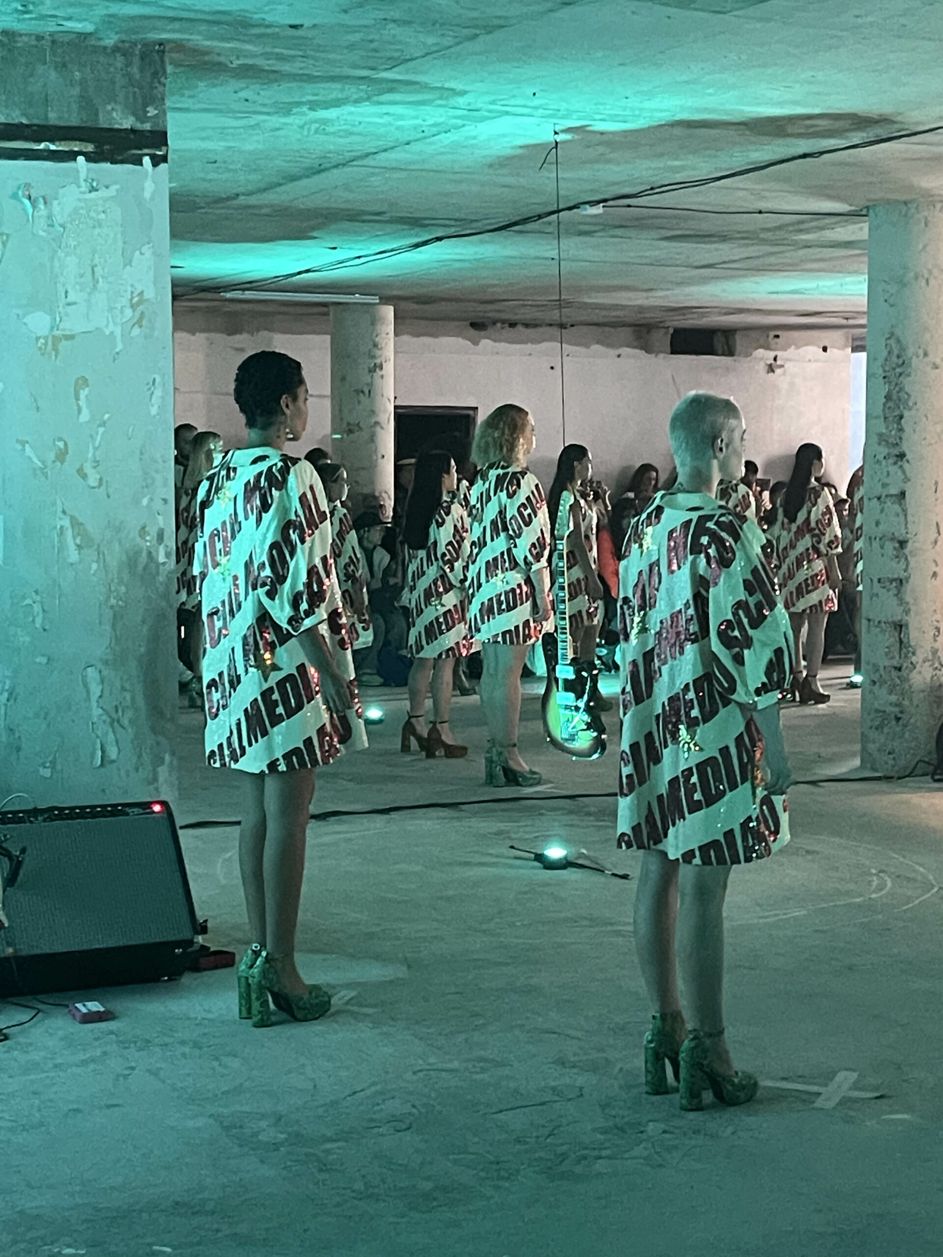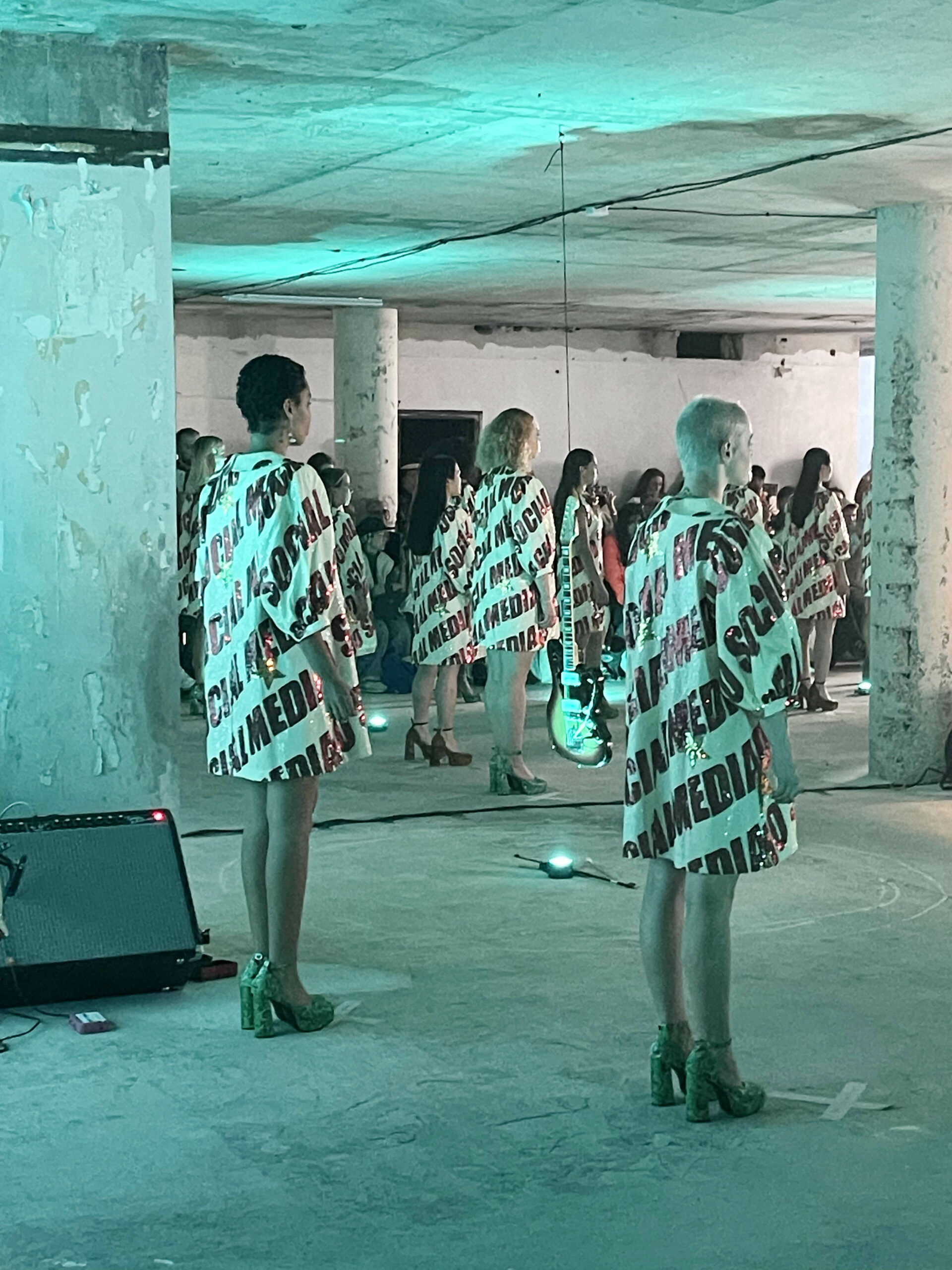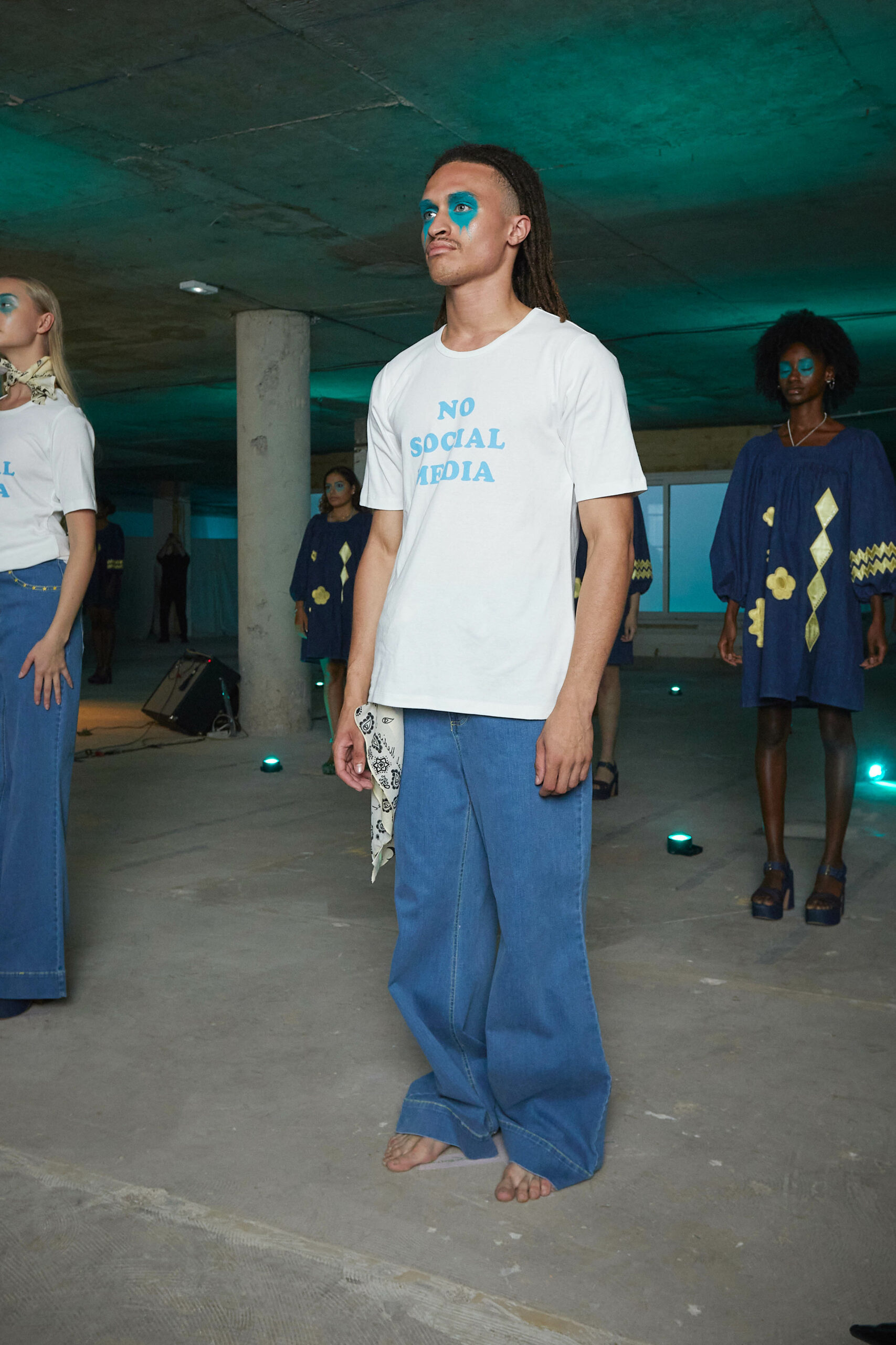 Mais l’aspect le plus frappant de l’approche d’Ivana Helsinki réside dans son retrait volontaire des médias sociaux. Il y a un an et demi, la marque fermait tous ses comptes, un choix audacieux qui souligne l’engagement d’Ivana Helsinki envers l’authenticité dans une industrie saturée de présence en ligne. Paola Suhonen a exprimé que le rejet des médias sociaux était un moyen fort et intrigant de se démarquer dans un monde de la mode où tous les tabous semblent avoir été brisés. Le thème de l’absence de médias sociaux a trouvé un écho particulier dans la récente collection parisienne, avec des slogans tels que « No social media » ornant les imprimés.