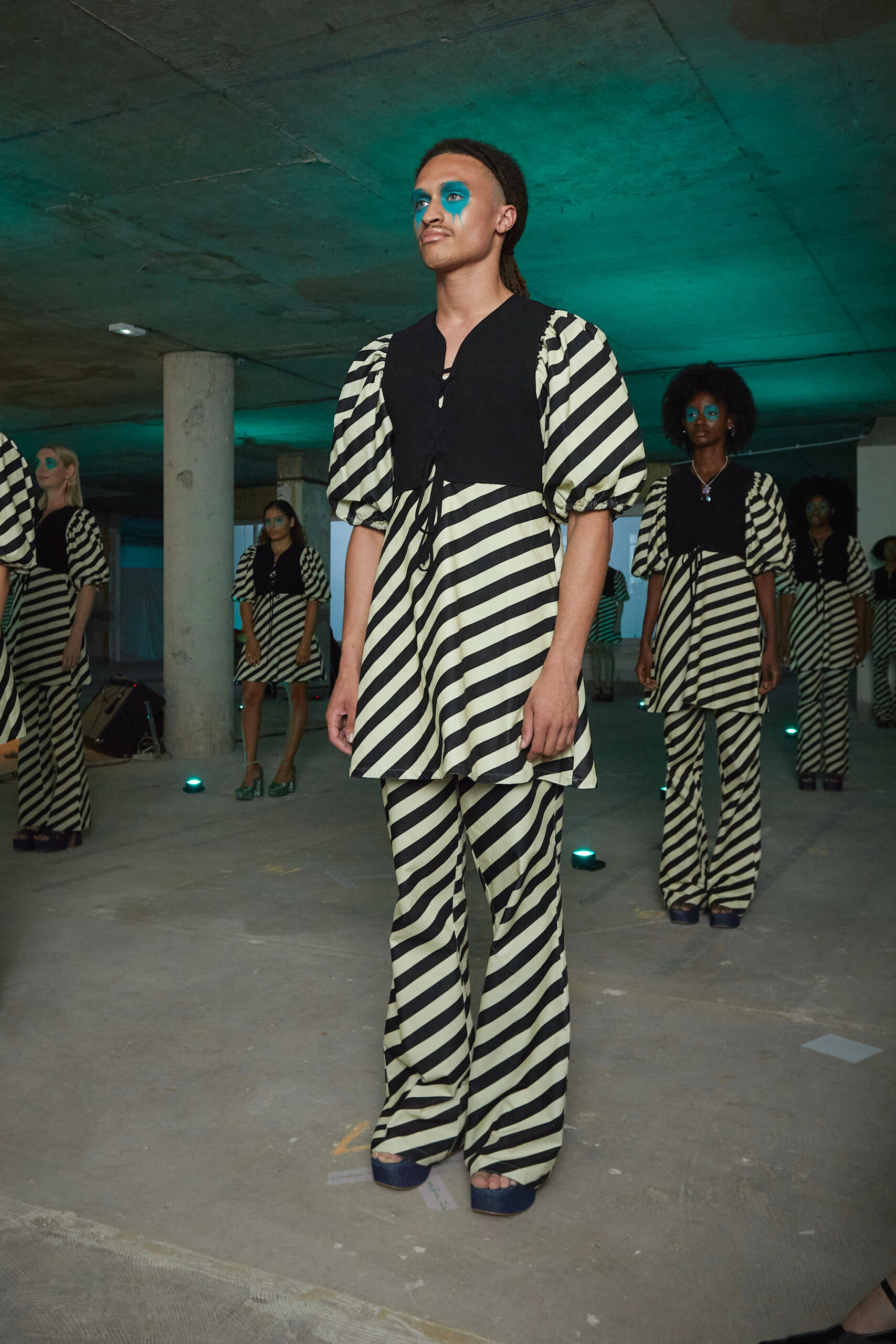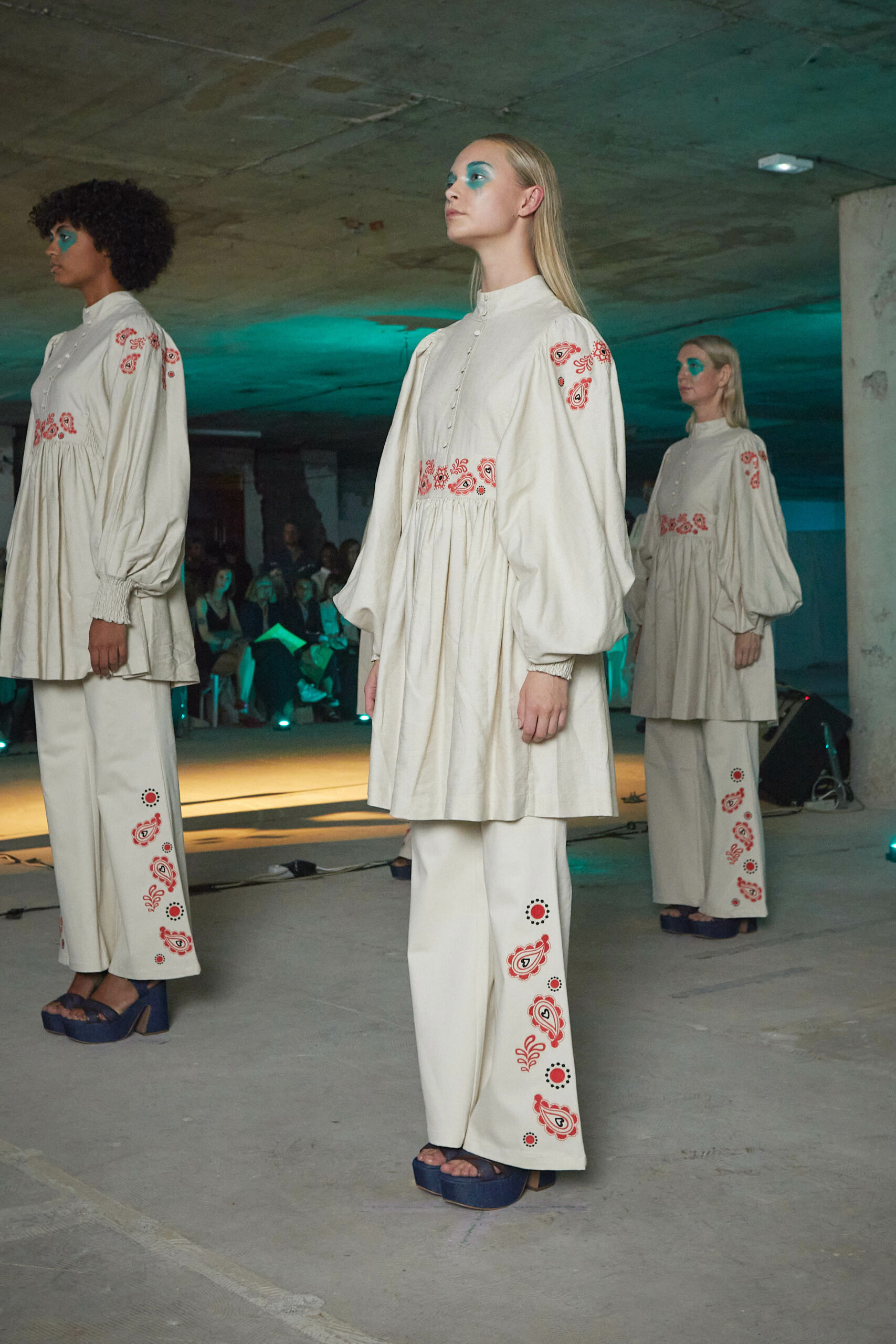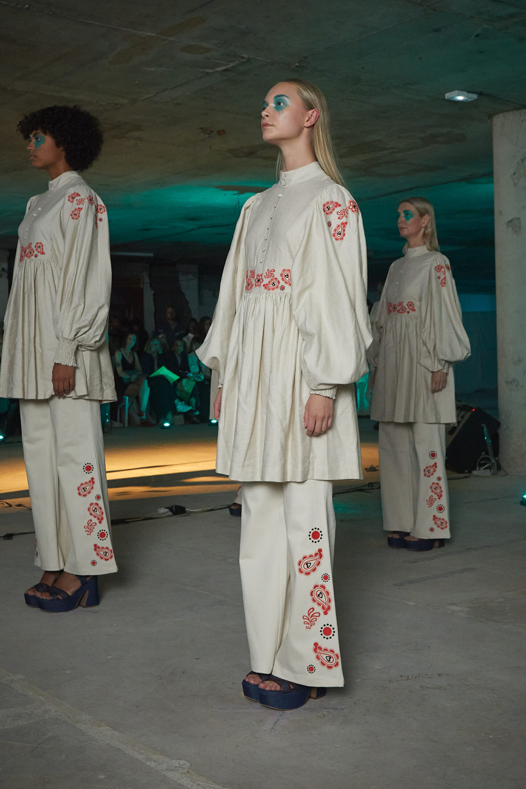 Ivana Helsinki a également introduit une perspective renouvelée sur la responsabilité en matière de production. La maison prévoit de produire chaque article présenté lors du défilé en édition limitée, avec seulement 50 pièces numérotées de chaque article. Selon Suhonen, cette limitation stricte de la production est une réponse au problème central de volume dans l’industrie de la mode. Elle envisage que l’idéologie de collectionner des pièces en édition limitée augmentera la valeur de revente des produits à l’avenir, transformant ainsi les vêtements en investissement.