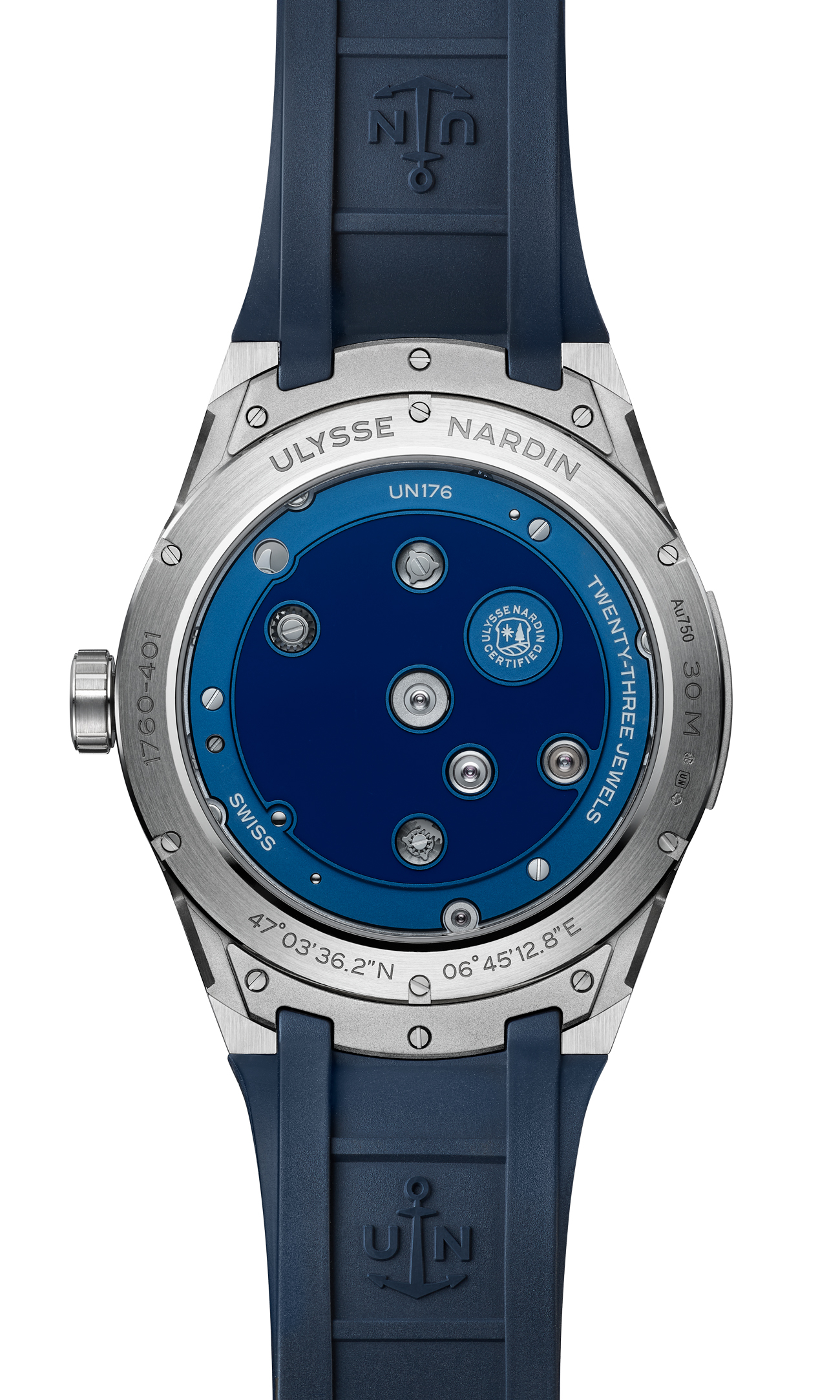 L’échappement constant à ancre, l’un des fiefs techniques d’Ulysse Nardin, garantit une régularité absolue. Le barillet flottant offre quant à lui une exceptionnelle autonomie de 7 jours.