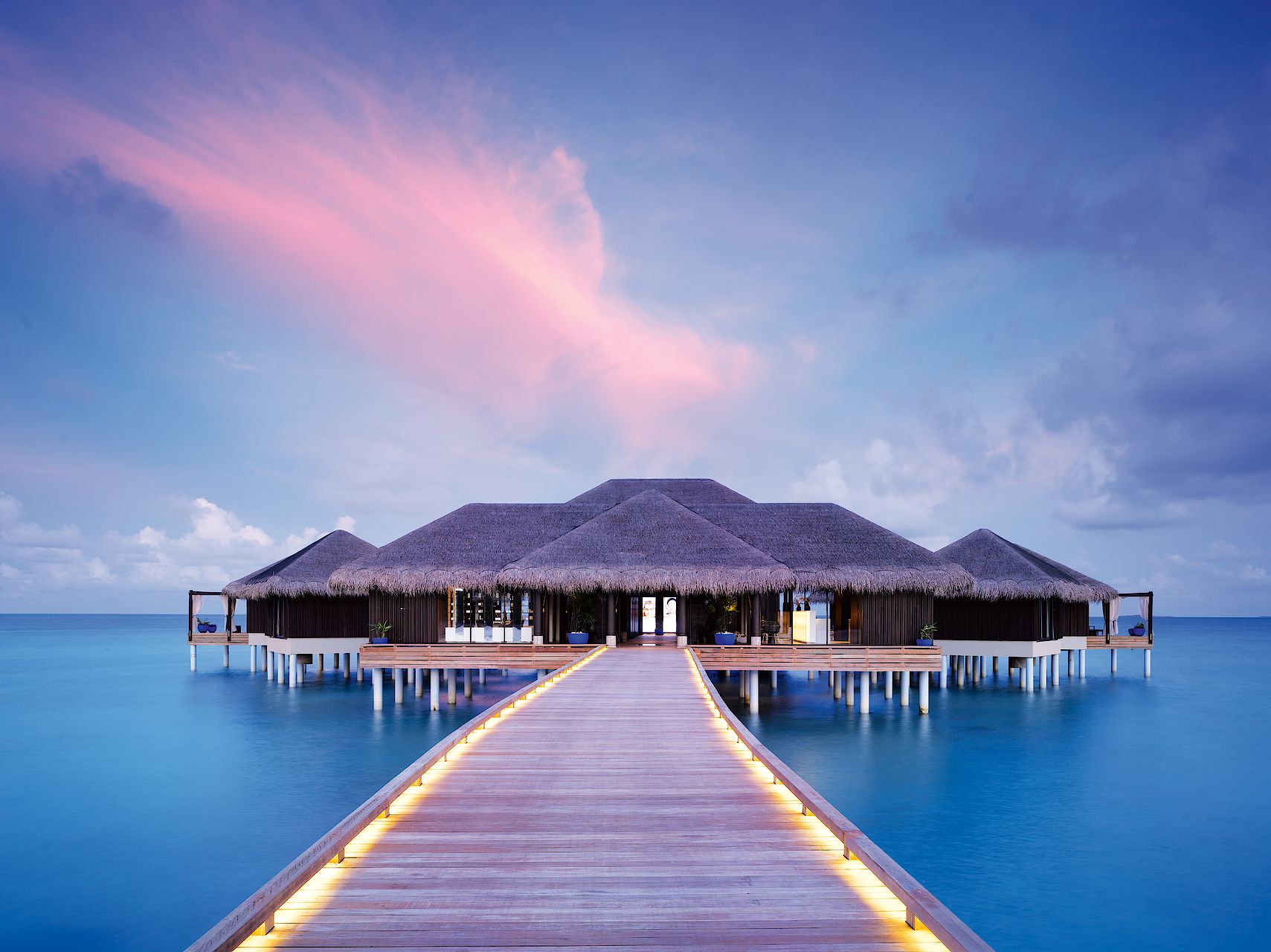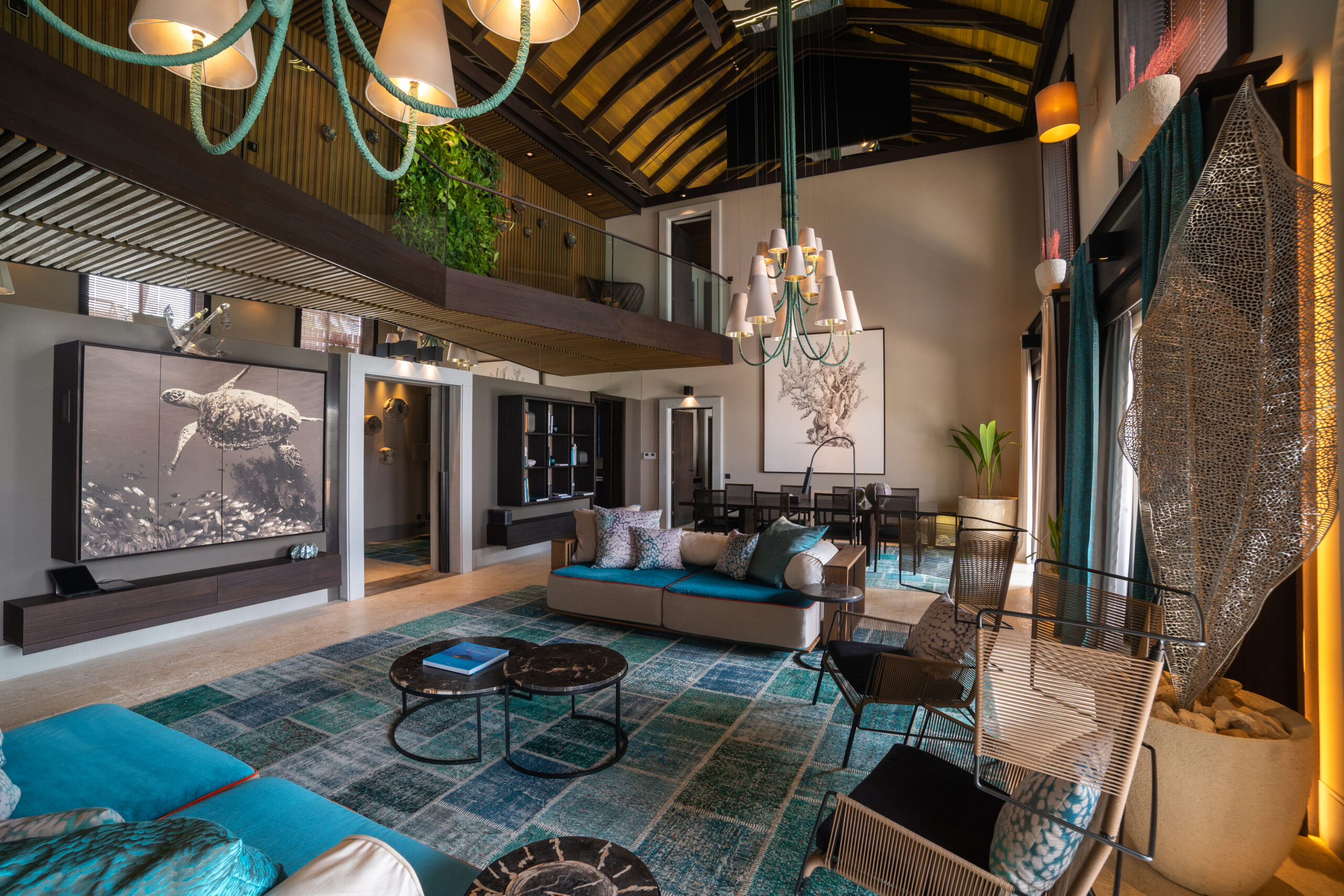 Designed by award-winning Czech architect Petr Kolar of ADR, Velaa Private Island is “an elegant fusion of Maldivian culture with contemporary luxury, intimate with Maldivian nuances”, that has been thoughtfully constructed to celebrate and protect the surrounding environment. Natural and traditional materials have been tastefully incorporated into the villas and communal spaces, including the use of local palm leaves for the thatched roof coverings. Spanning the size of 25 football fields, the island has been extensively planted with local flora to create a lush, flourishing environment that is itself a microcosm of the Maldives.