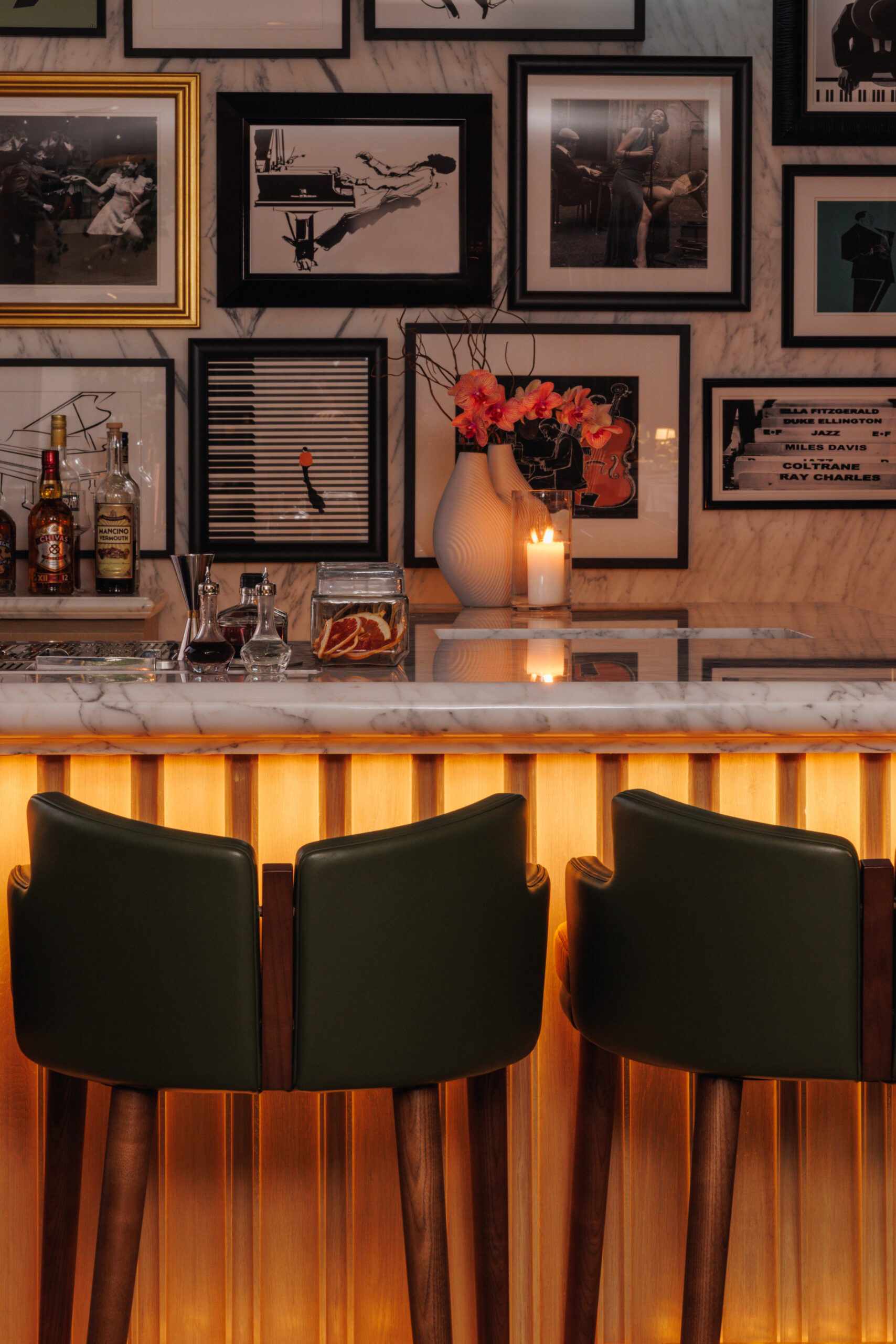 The venue seamlessly embodies a fusion of calming melodies, mixology, and culinary flair. The stylish interiors, decked in a warm colour scheme and artistic poise, create an engaging and visually captivating experience for you and your party. The beautiful space, adorned with musical artwork frames and marbled interior decor, not only complement the comforting hues of green and brown but beautifully weaves in the jazz aesthetics.