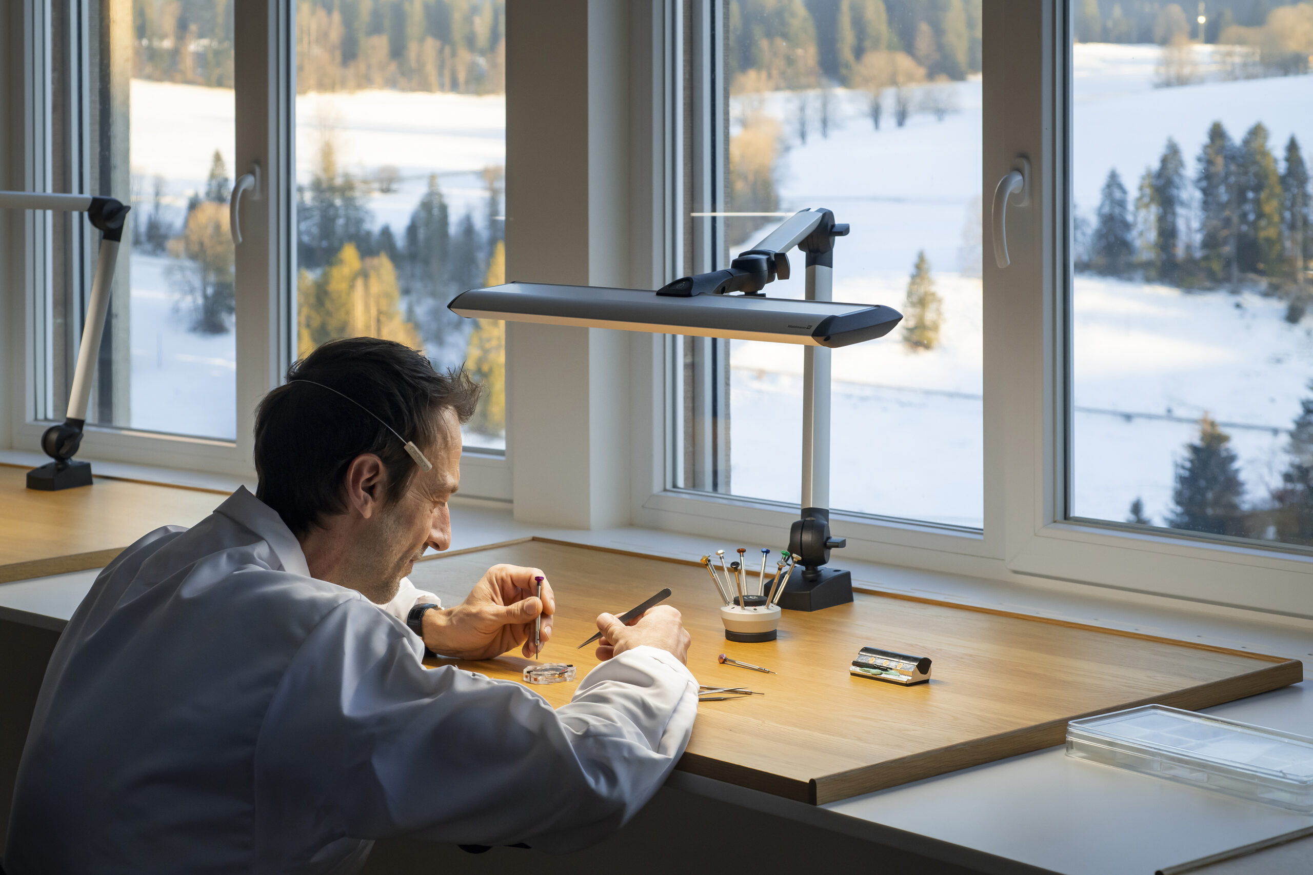 Avec seulement 2mm d’épaisseur, ce garde-temps aux lignes épurées repousse les limites de la miniaturisation. Son boîtier bleu profond met en valeur le travail virtuose accompli par les artisans de la manufacture pour donner vie à ce mouvement mécanique hors-normes.