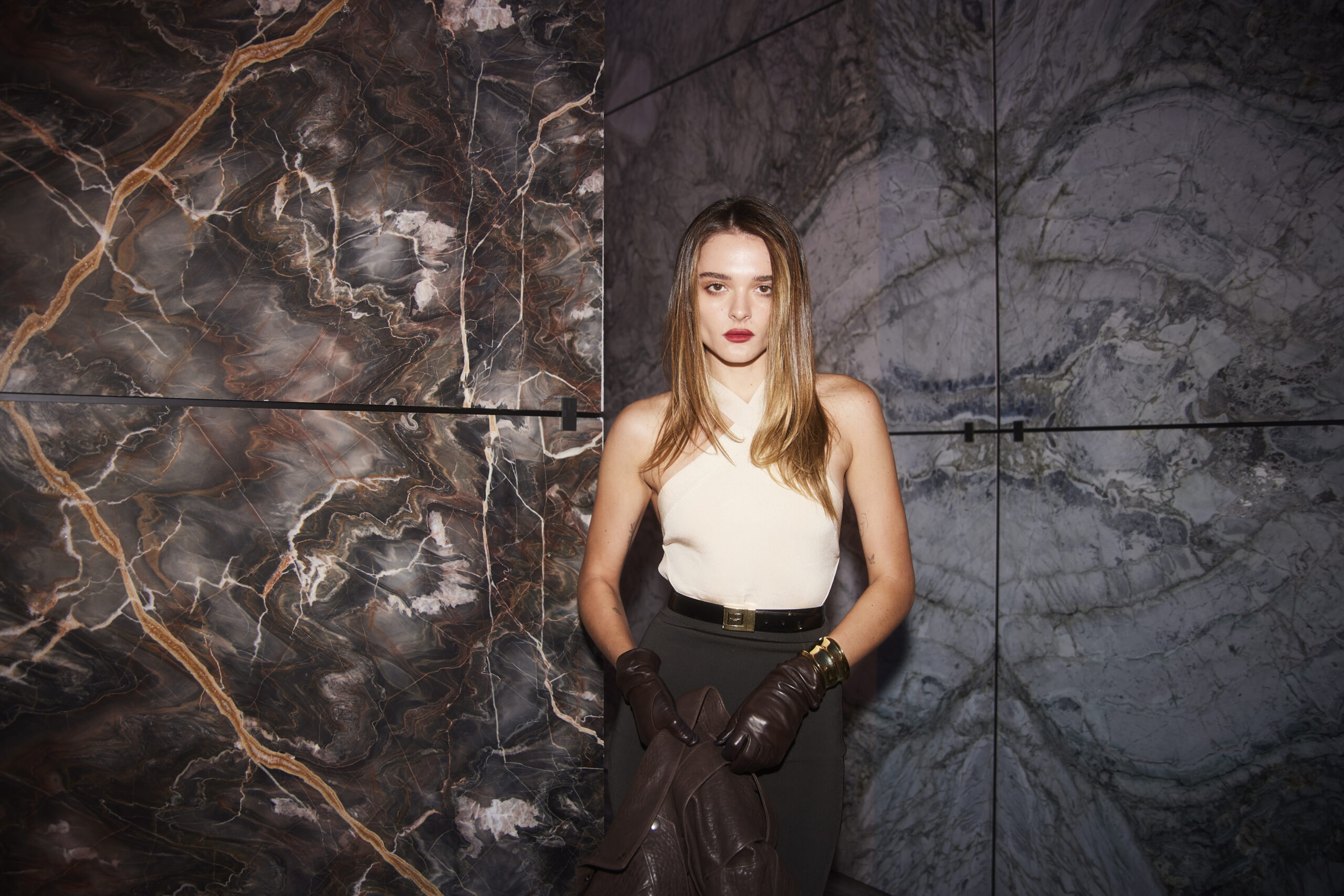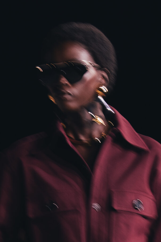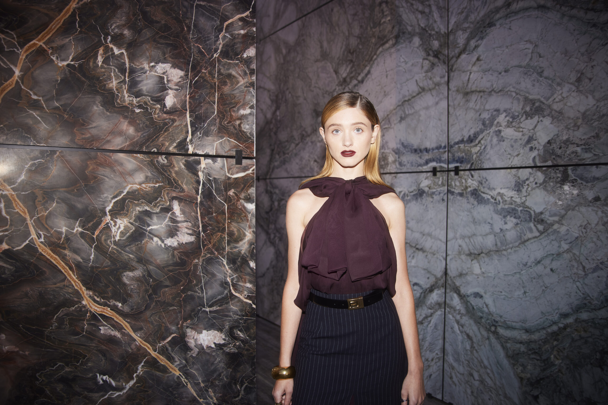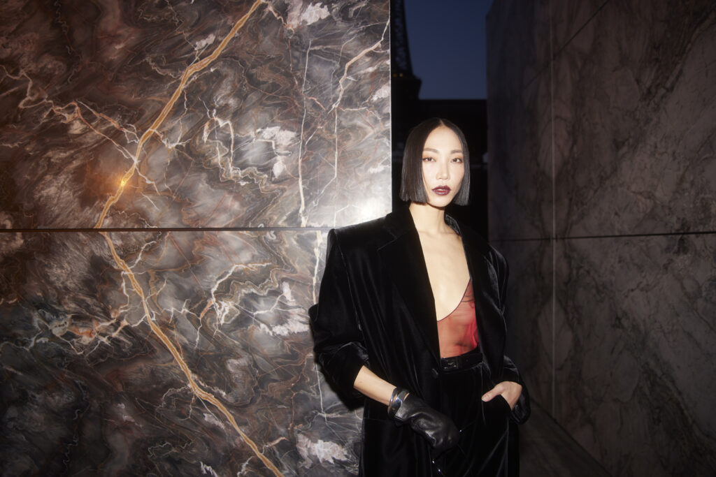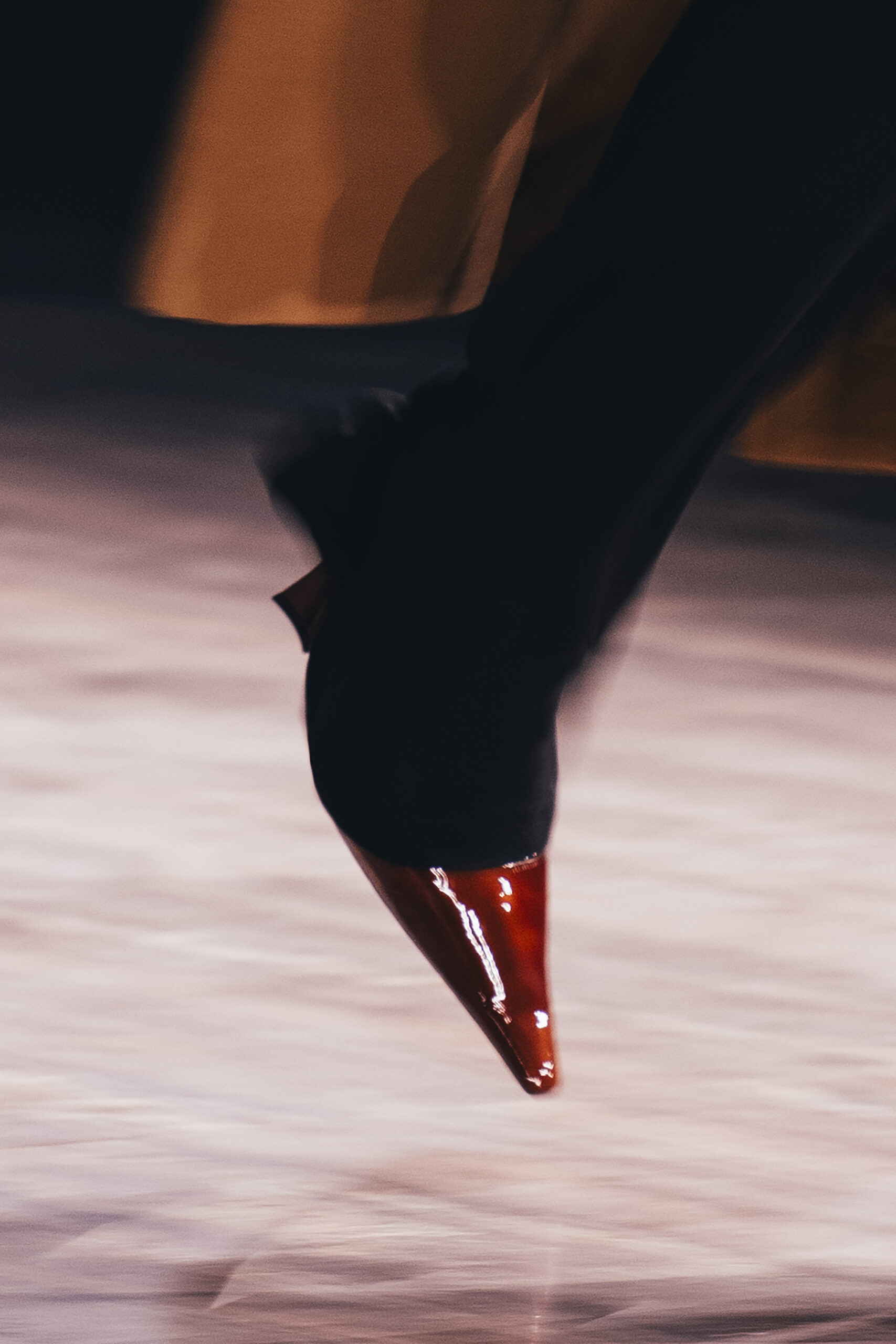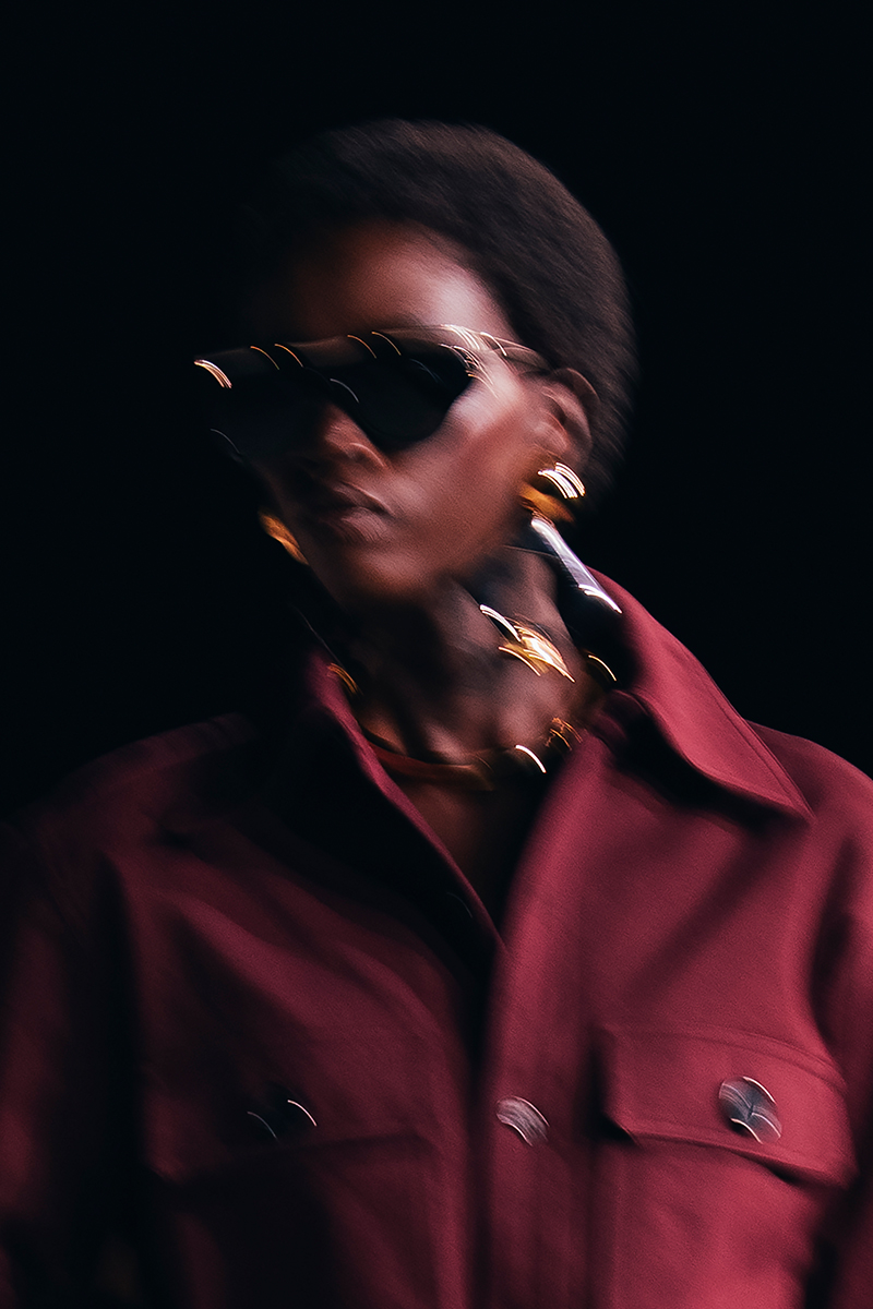 La veste safari et la combinaison trouvent ici des versions sophistiquées grâce à un travail sur les volumes et les détails, tels que les ceintures marquant la taille. Les coupes empruntées au vestiaire masculin se parent de notes raffinées comme les gants et talons aiguilles.