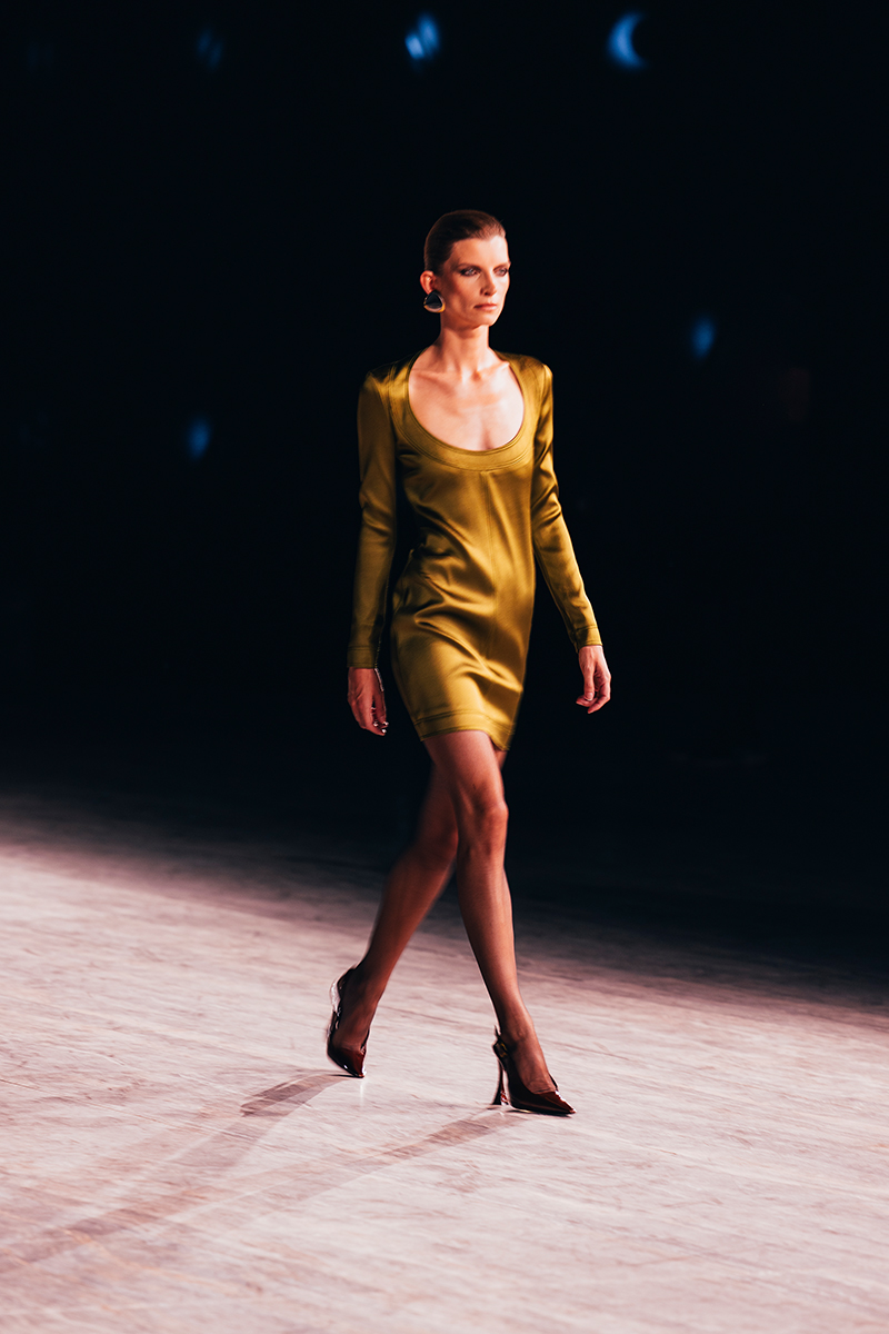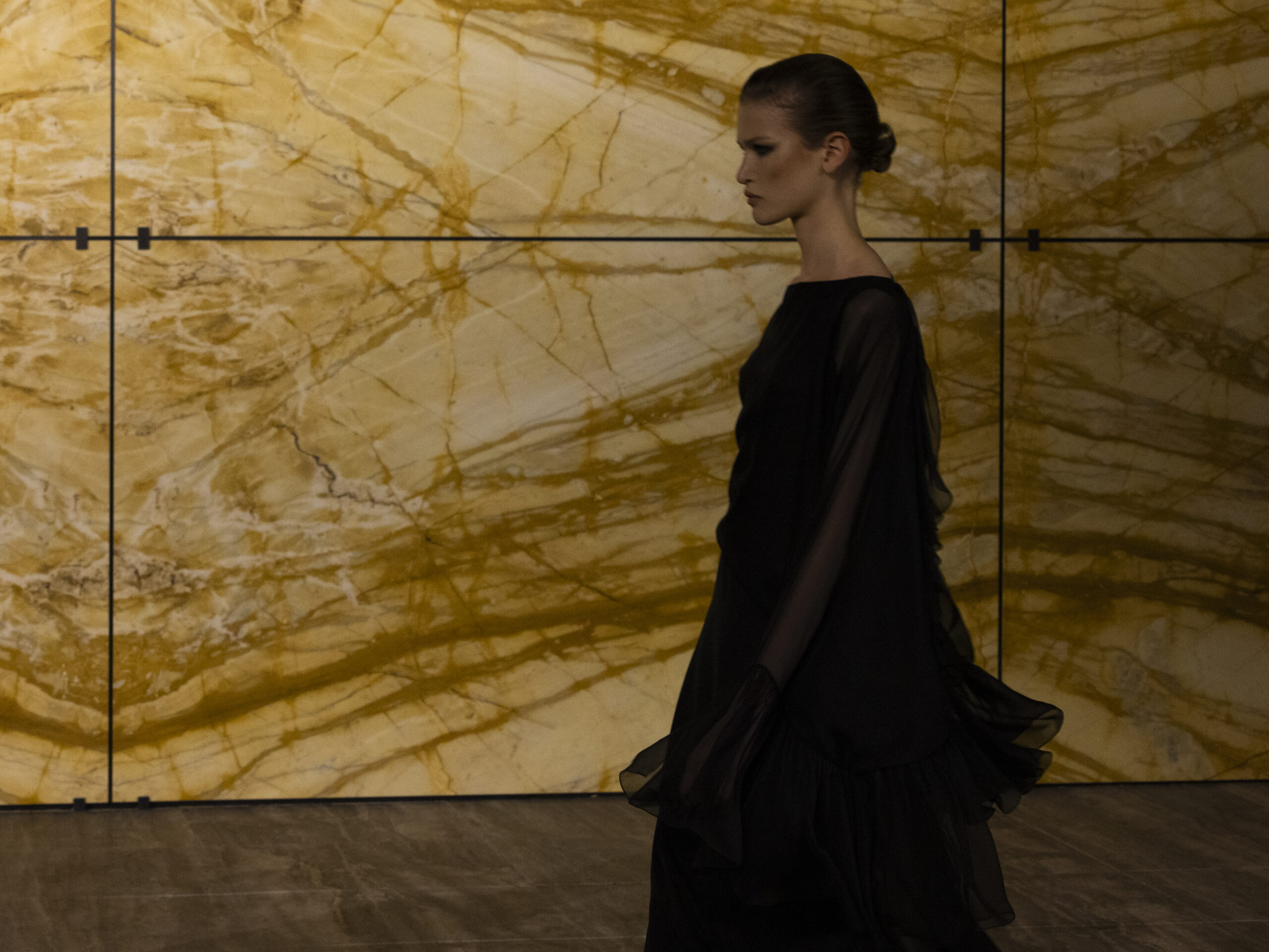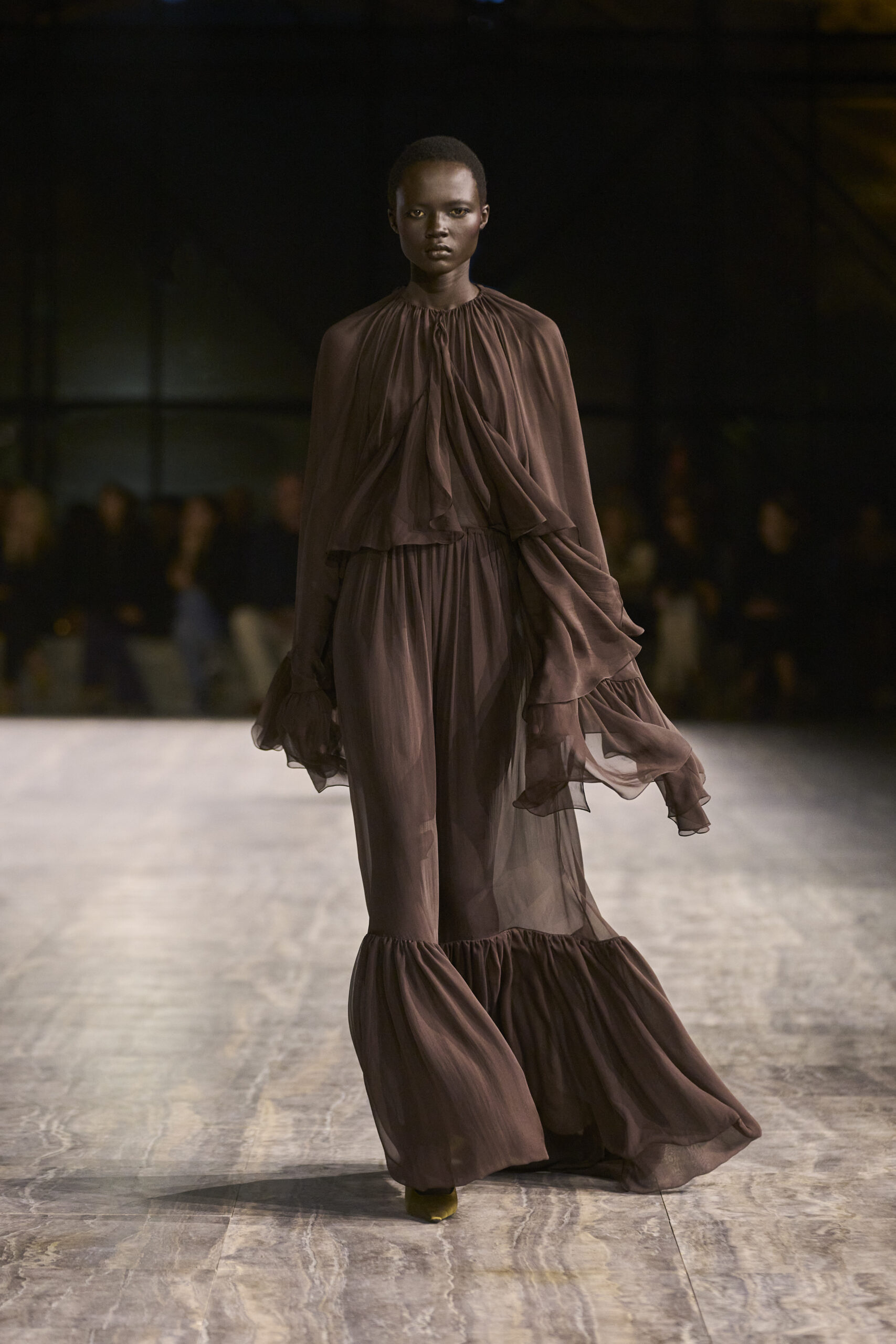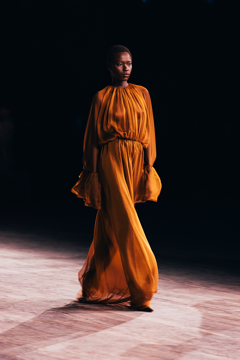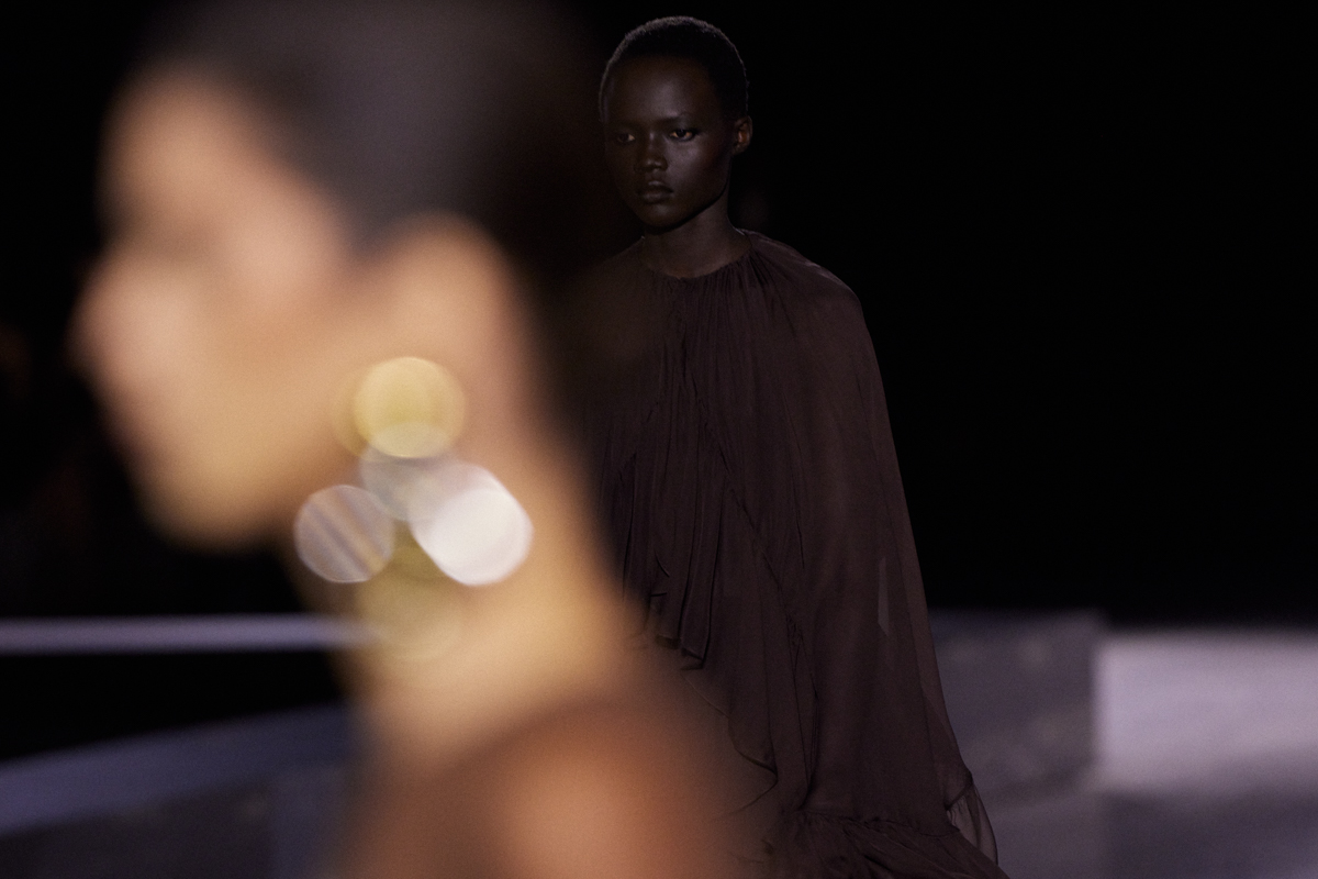 Pour l’été 2024, Anthony Vaccarello présente une collection Saint Laurent empreinte de simplicité et d’épurement. Inspiré par des pionnières intrépides comme Amelia Earhart, le créateur célèbre l’émancipation féminine à travers des silhouettes fluides et des matières fonctionnelles.