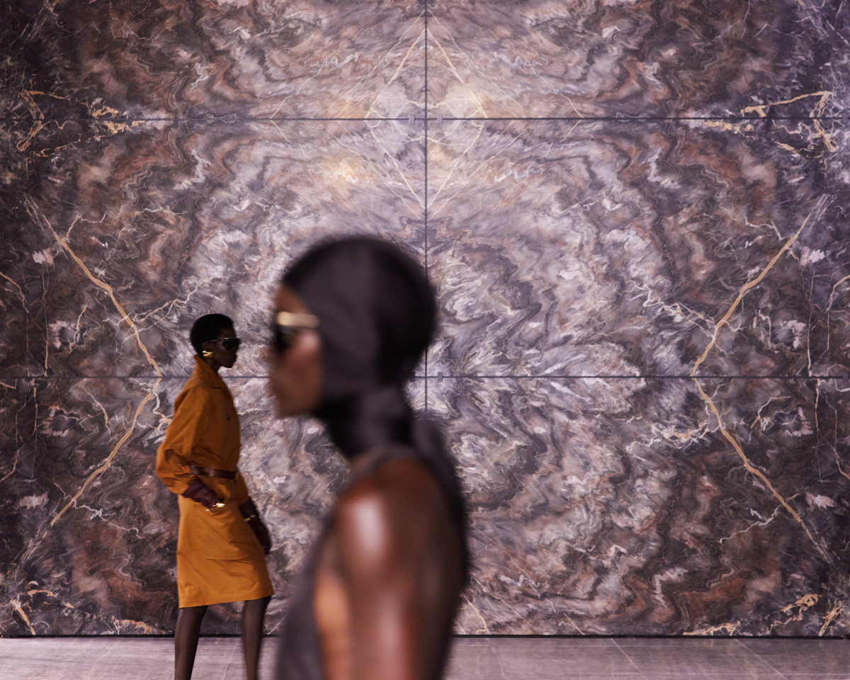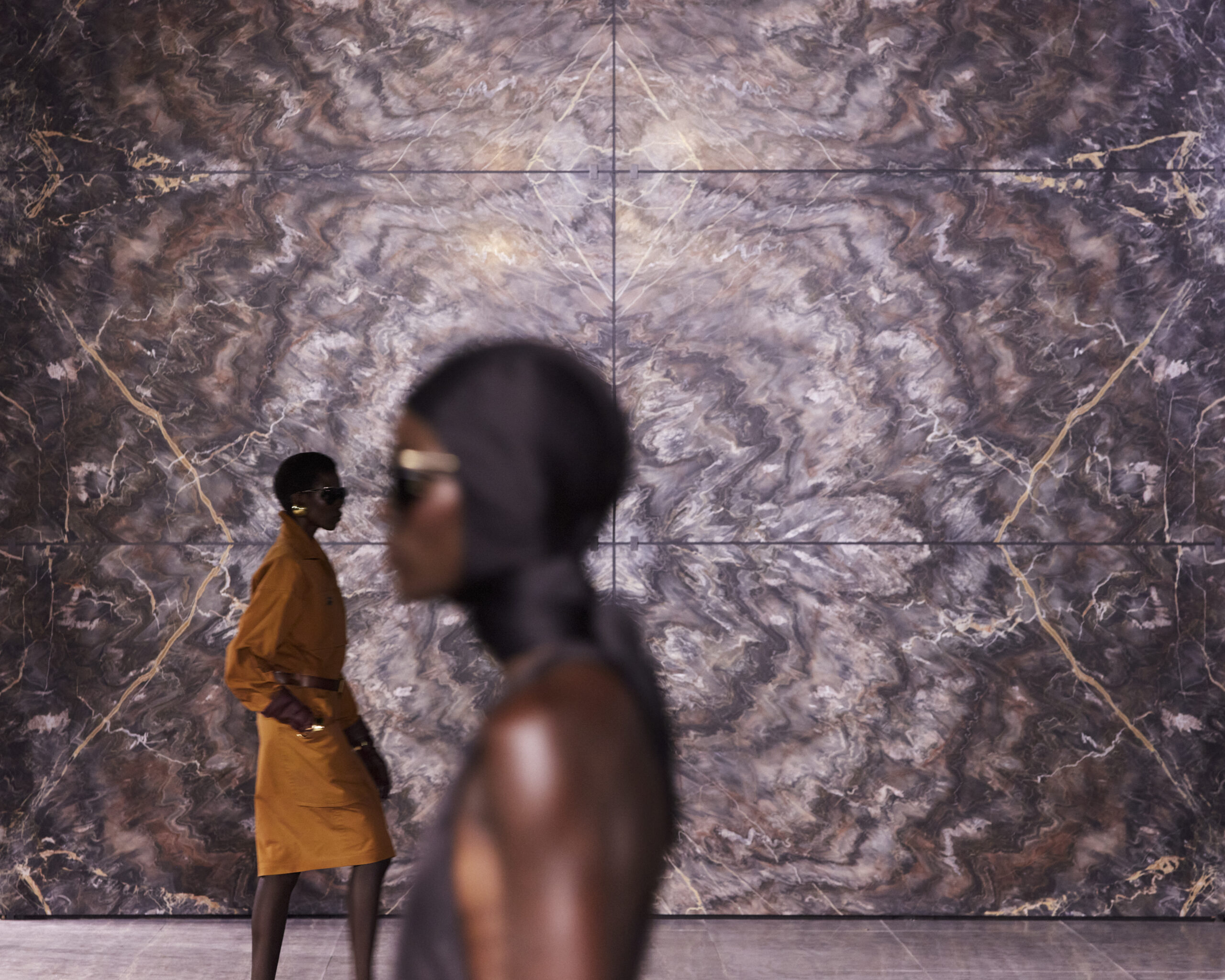 Coton, lin et teintes naturelles comme l’olive, le marron ou le sable définissent une esthétique décontractée rehaussée d’accessoires signature. Sur des reliefs minéraux colorés évoquant la tour Eiffel, la collection dévoile une élégance douce au service de la liberté de mouvement.