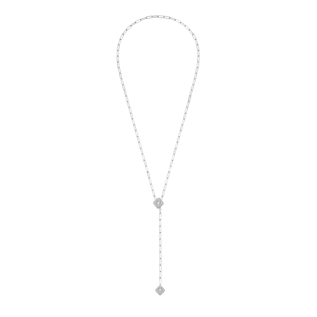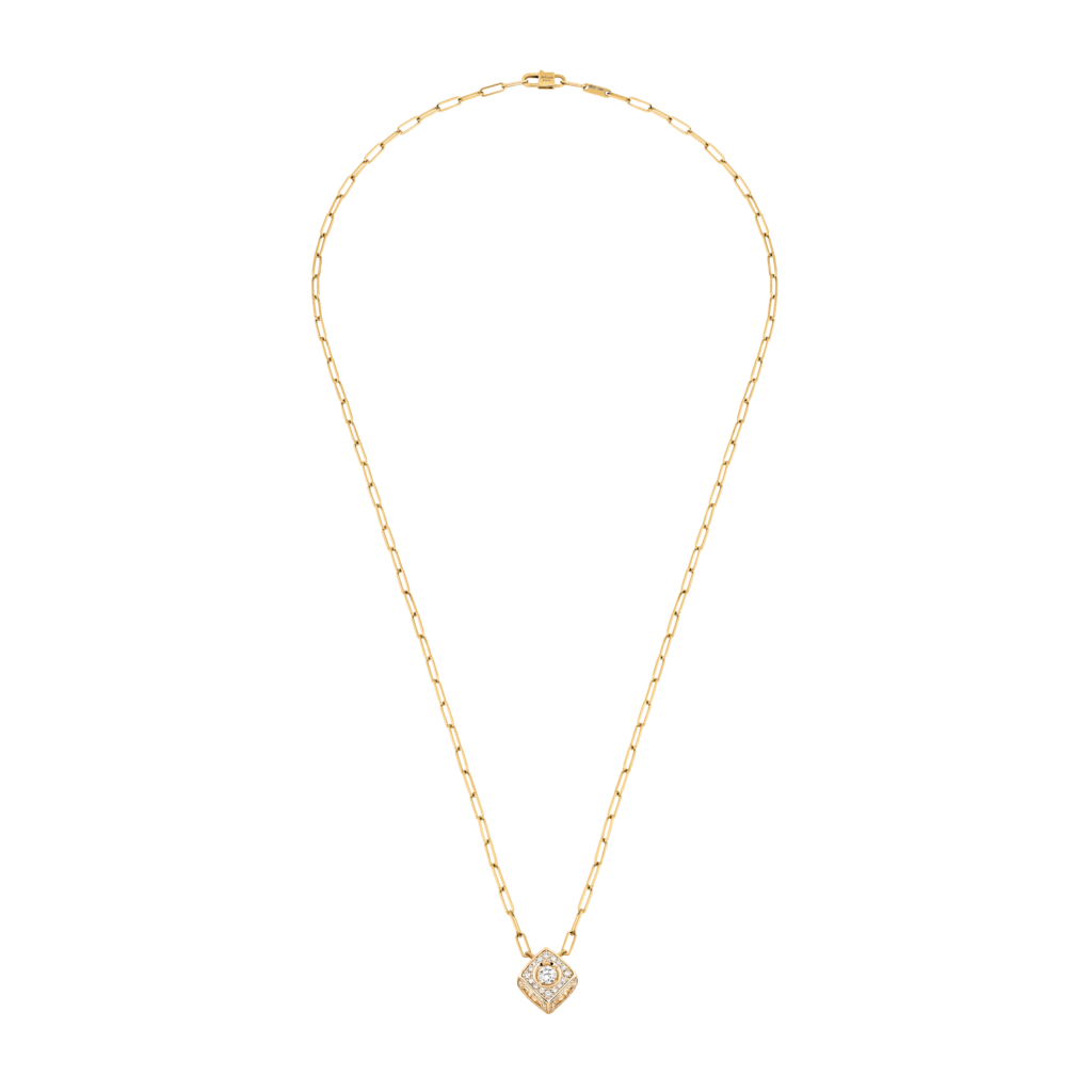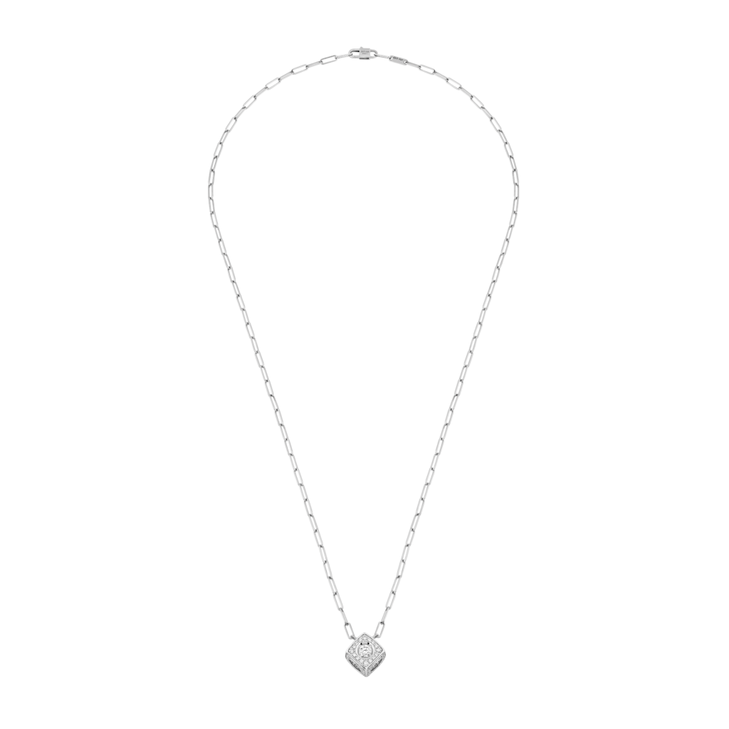 Parmi les lancements phares de la rentrée, deux pendentifs sculpturaux arborant un Cube Diamant XXL entièrement serti de diamants. Suspendus à une chaîne fluide, ces cubes précieux se dévoilent sous toutes leurs facettes avec élégance.