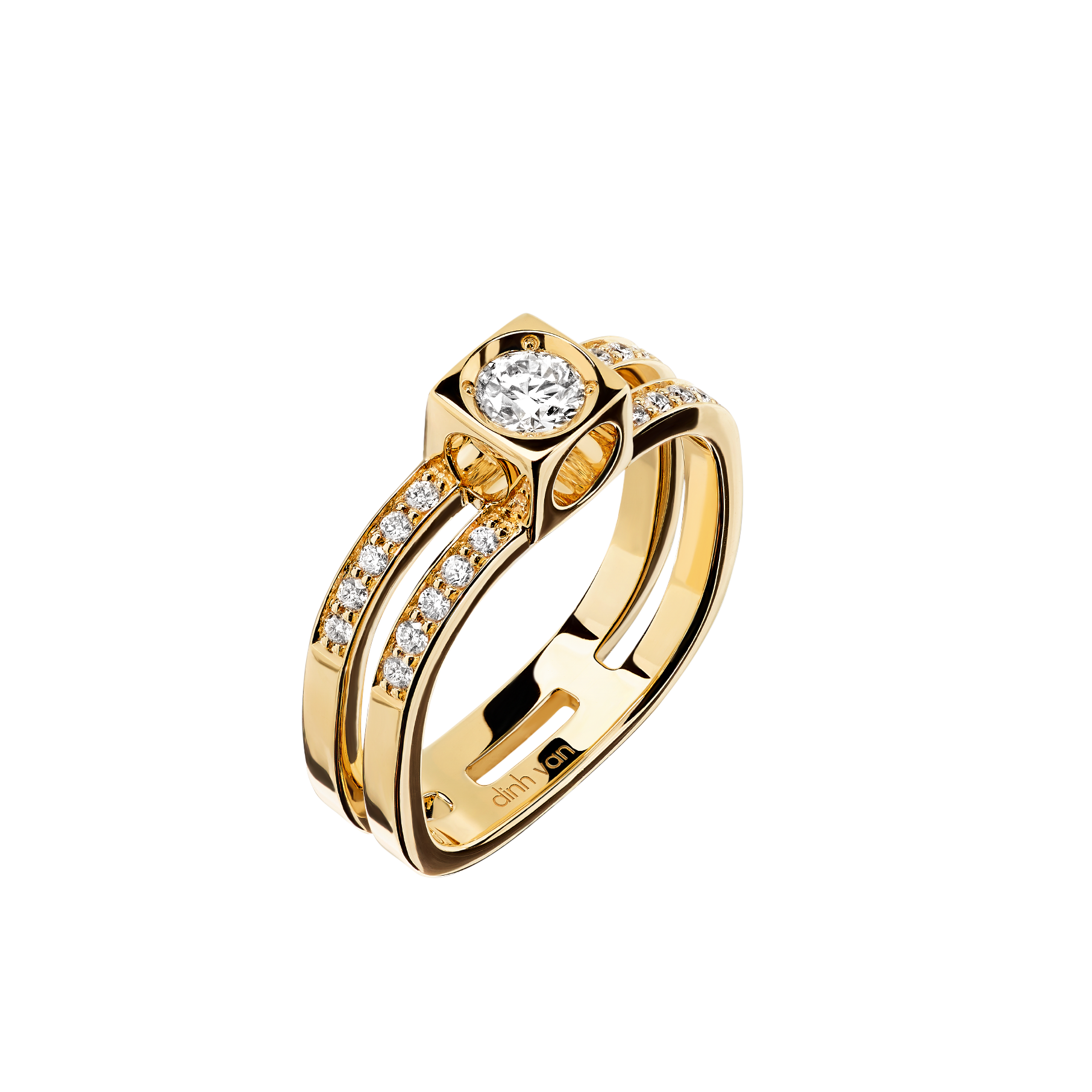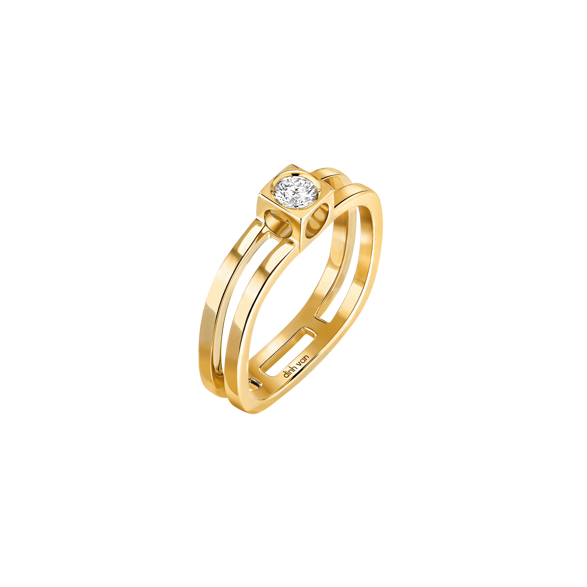 Née dans les années 70 sous l’impulsion du fondateur Jean Dinh Van, la collection Le Cube Diamant célèbre la rencontre de deux formes primordiales : le cercle et le carré.