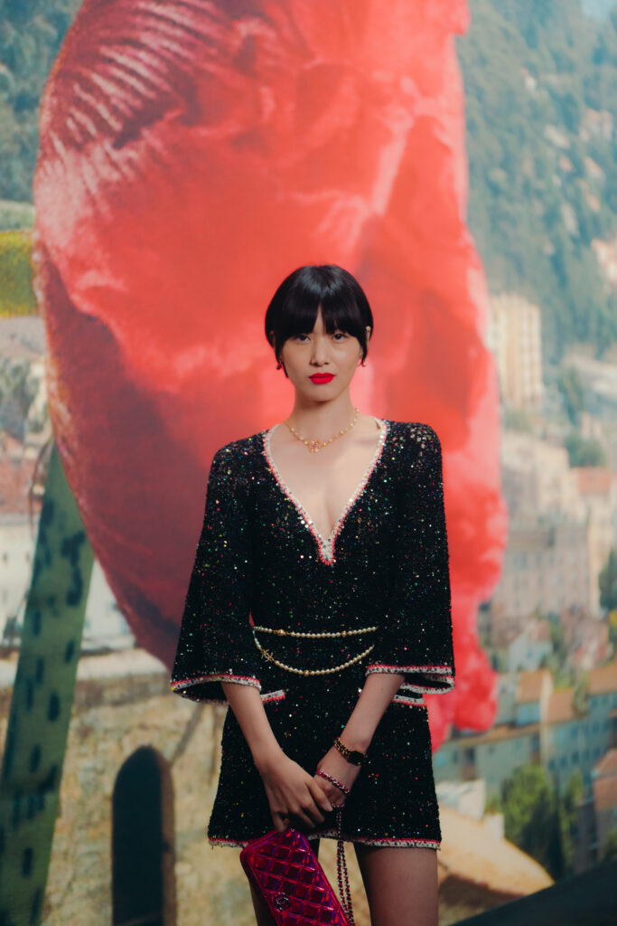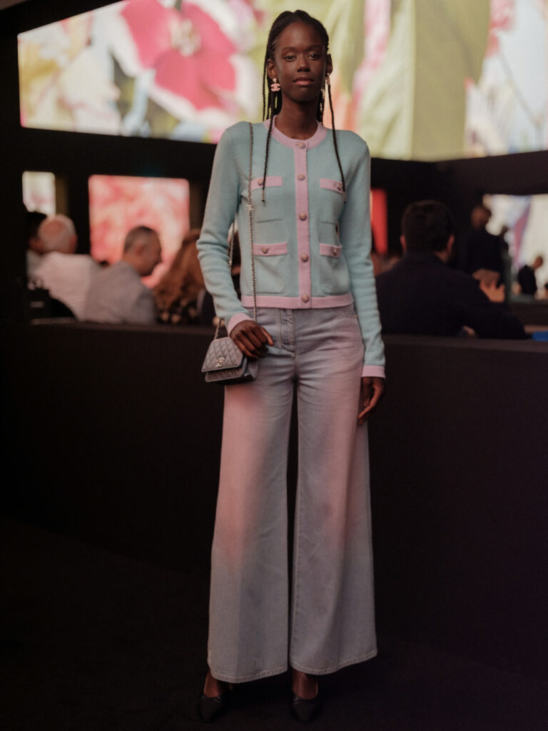 Anamaria VARTOLOMEI, jeune ambassadrice Chanel, a offert une interprétation fraîche de la tendance avec ses créoles “COCO CRUSH” en or beige 18K. Sa tenue, alliant modernité et classicisme, a offert une vision renouvelée de l’élégance Chanel, soulignant la capacité de la marque à se réinventer tout en restant fidèle à son héritage.