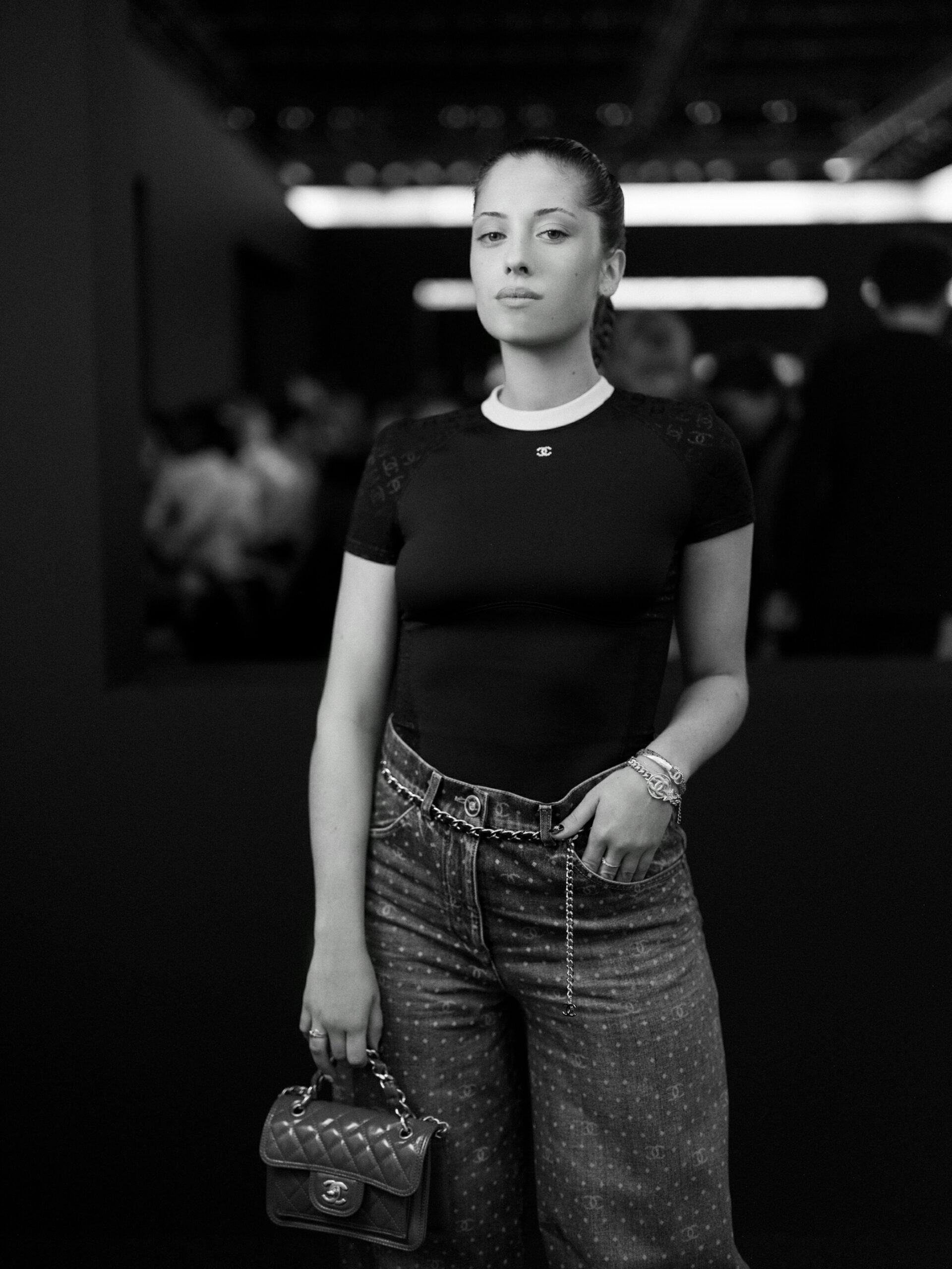Riley KEOUGH, illustre représentante du charisme Chanel, a capté les regards avec une élégance sidérale, grâce à sa boucle d’oreille « Comète 1932 », un bijou en or blanc 18K et diamants, véritable célébration du centenaire de la première collection de bijoux de la Maison. Sa tenue complète, du paletot au sac, en passant par les souliers, était signée Chanel, affirmant son statut d’ambassadrice avec une grâce incontestée.