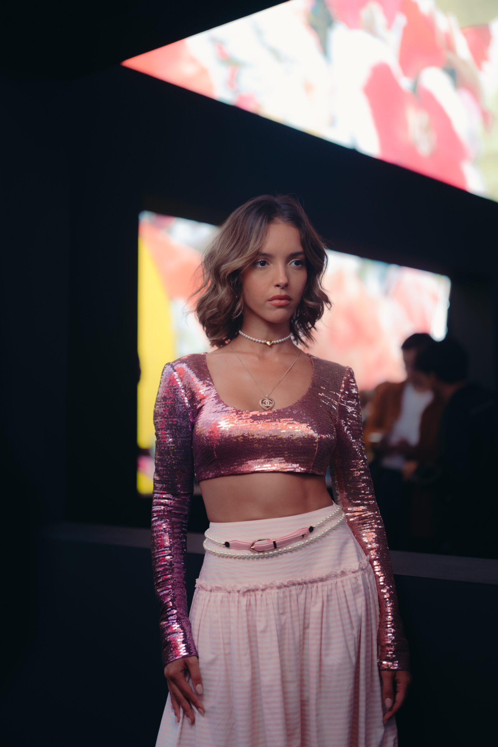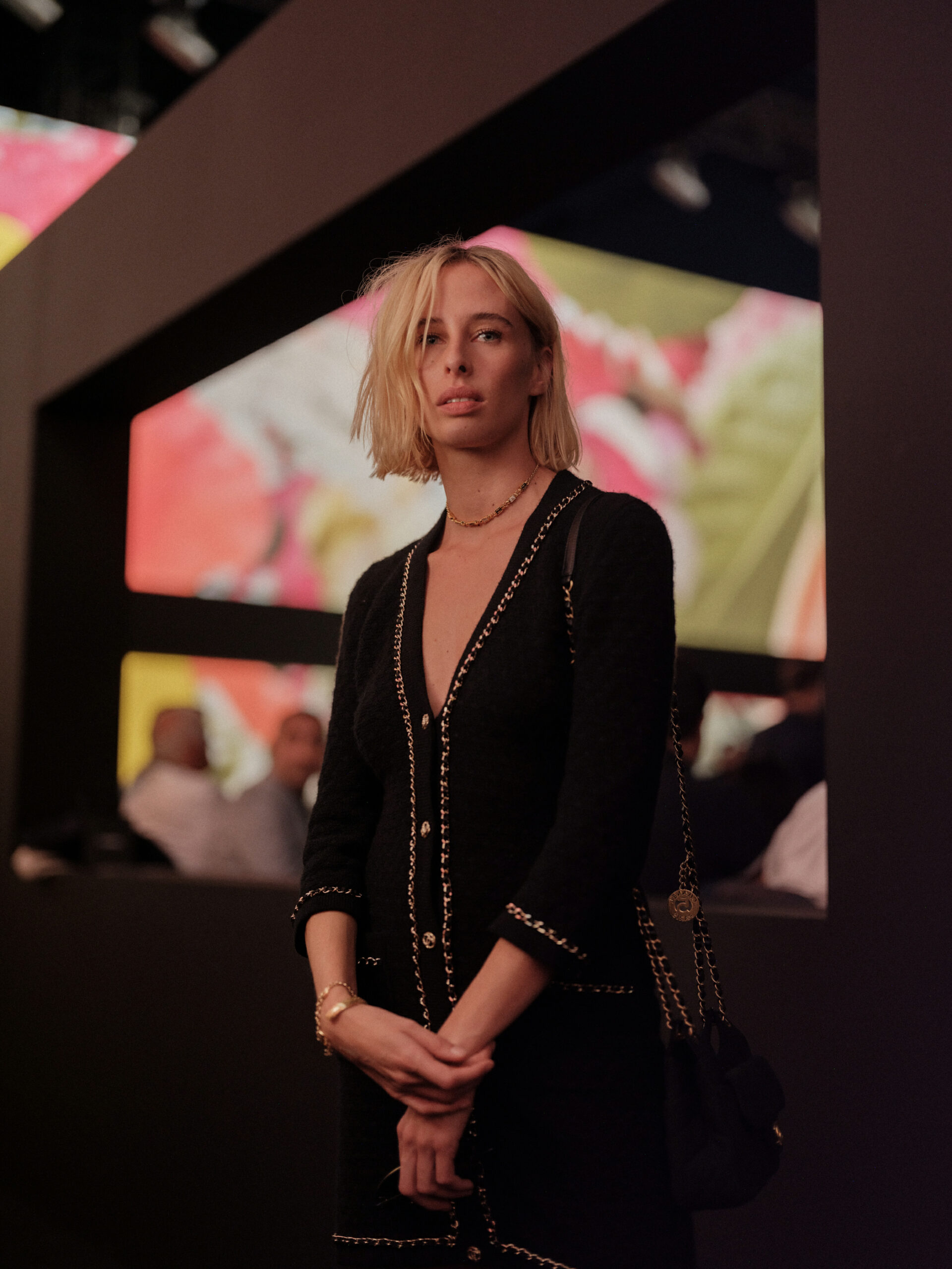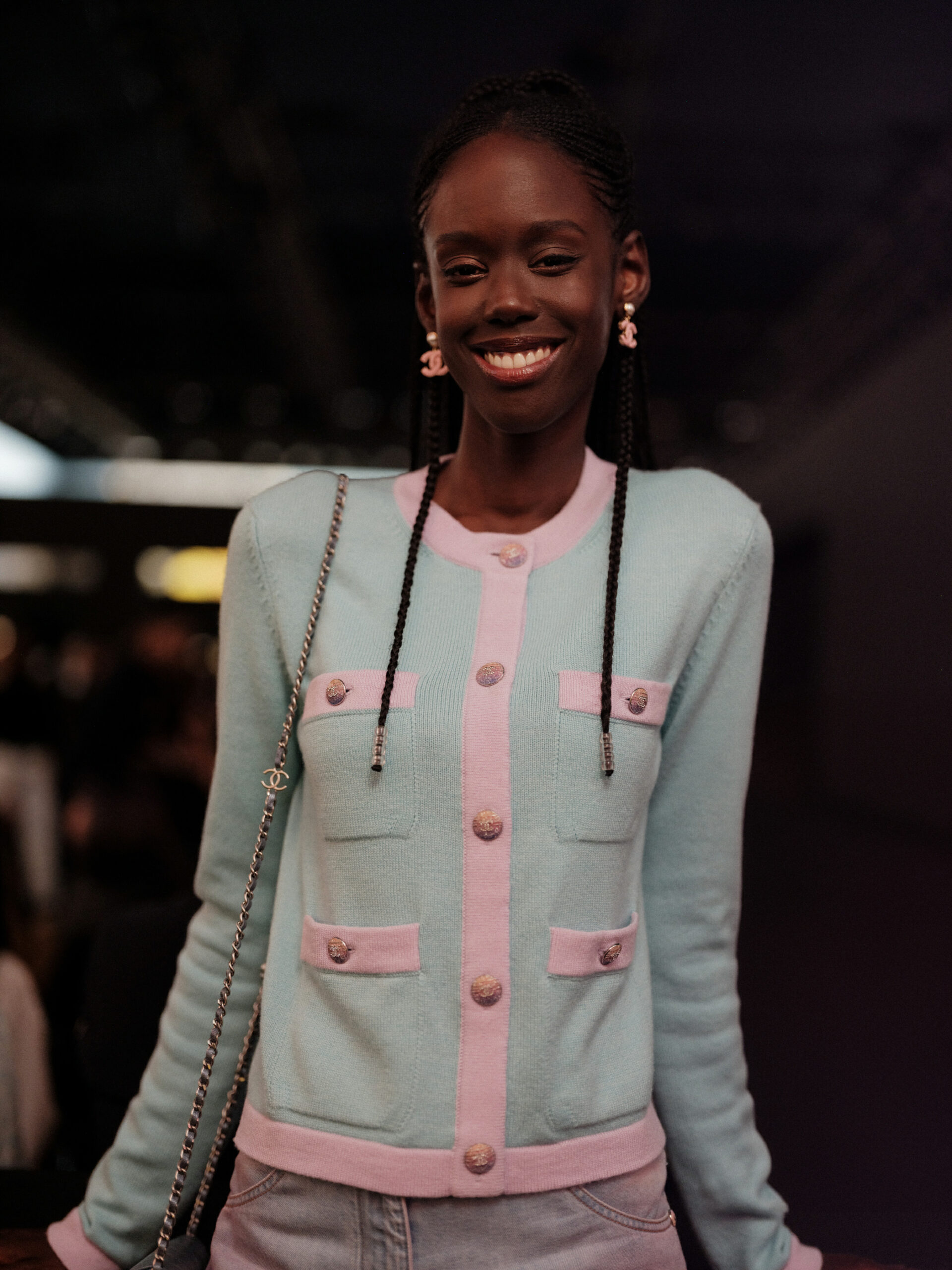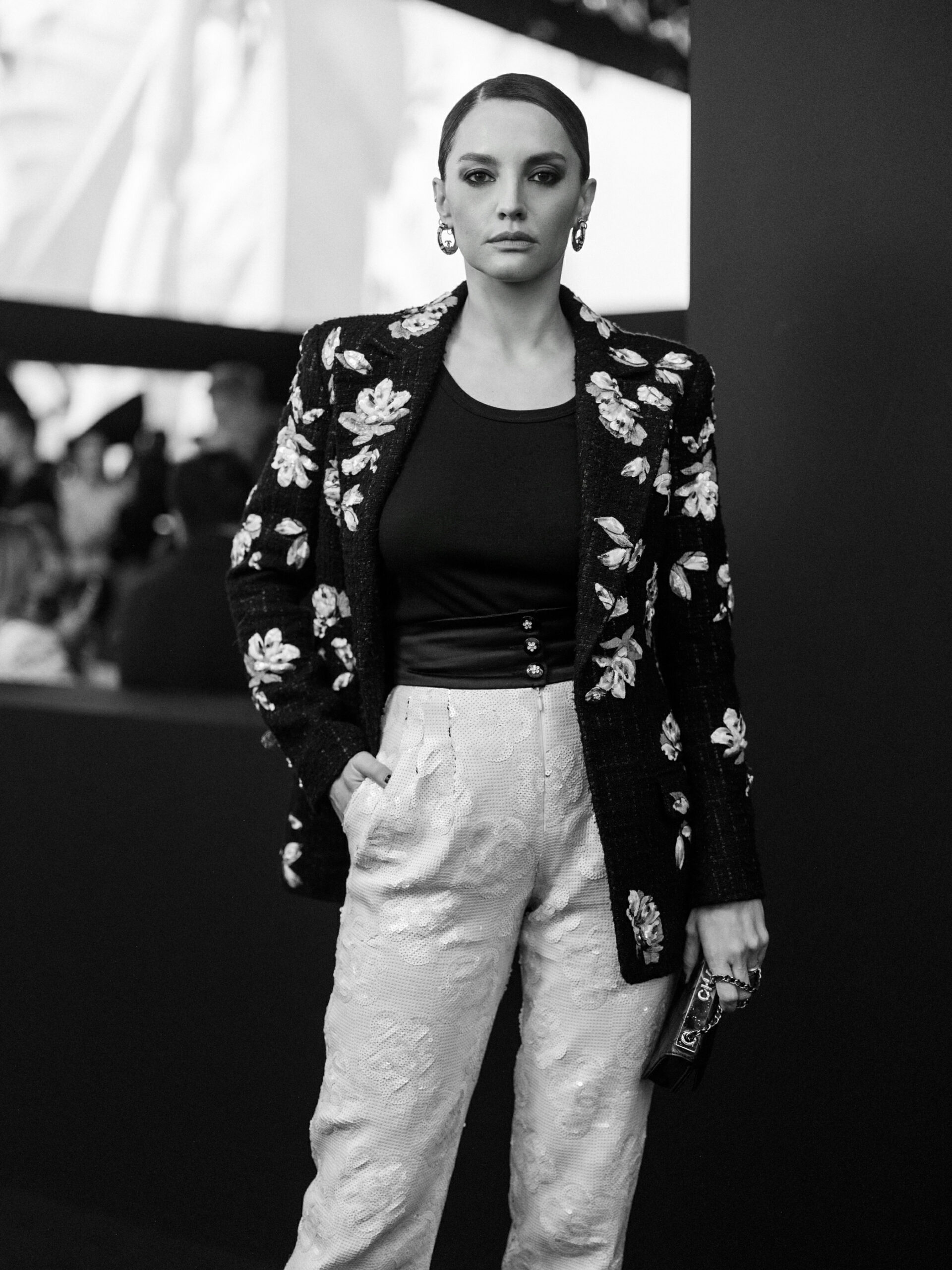 Anamaria VARTOLOMEI, jeune ambassadrice Chanel, a offert une interprétation fraîche de la tendance avec ses créoles “COCO CRUSH” en or beige 18K. Sa tenue, alliant modernité et classicisme, a offert une vision renouvelée de l’élégance Chanel, soulignant la capacité de la marque à se réinventer tout en restant fidèle à son héritage.