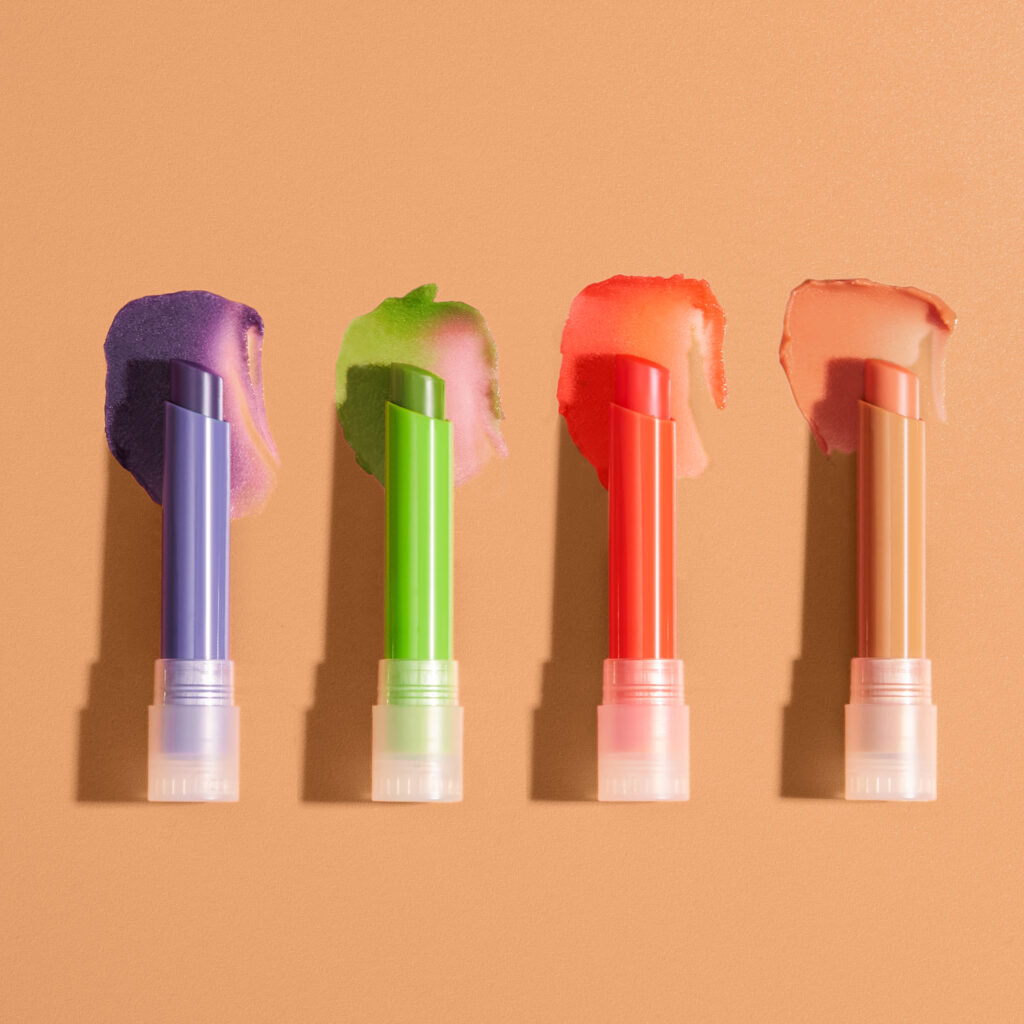 Huda Kattan a imaginé 4 teintes gourmandes qui s’adaptent au pH des lèvres. Le bleu se mue en rose frais, le vert en rose pâle, le rouge en corail et le beige devient transparent. De quoi sublimer naturellement chaque carnation.