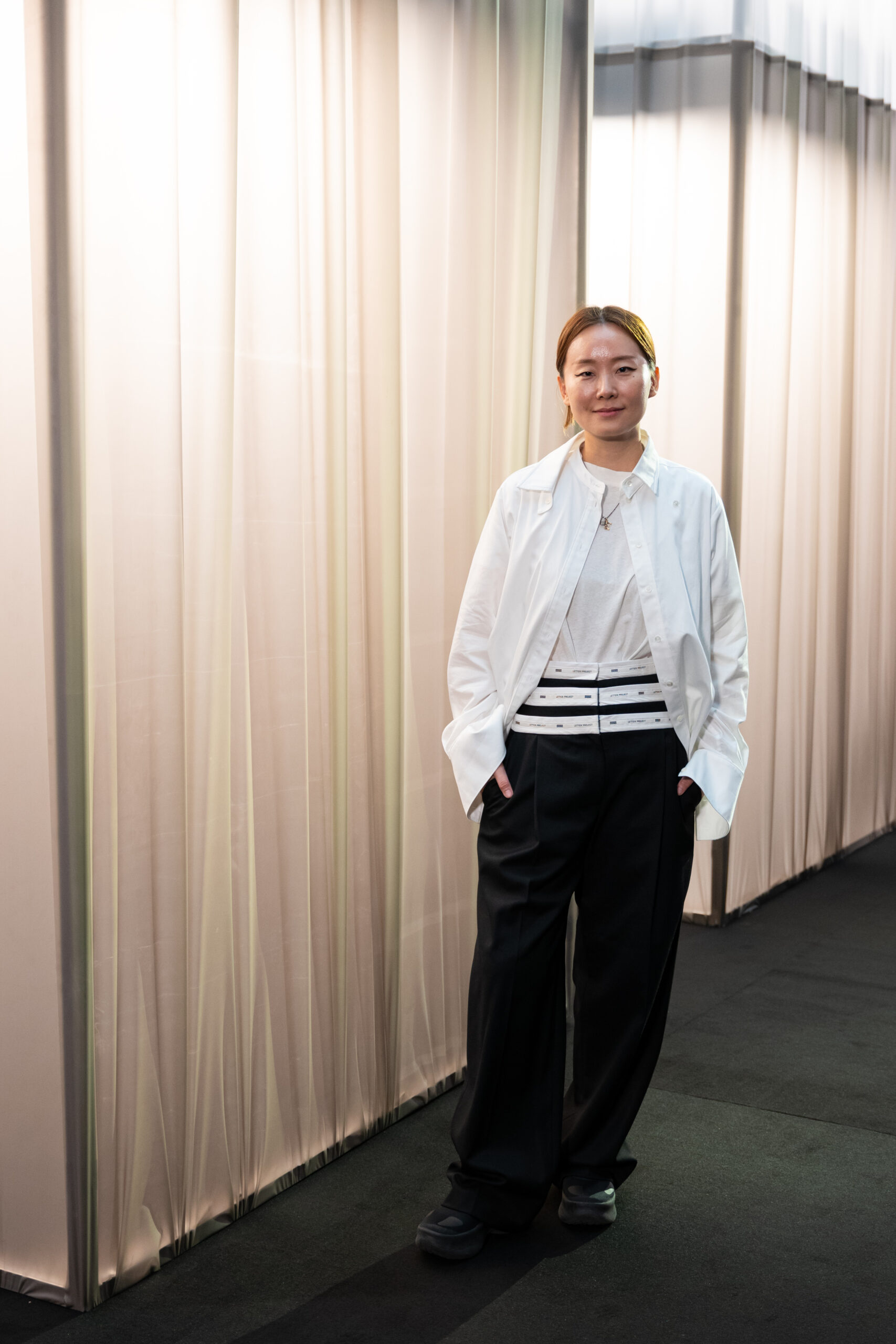 Hyemee s’inspire de son propre passé, des émotions et des inspirations qui ont jalonné son parcours, ainsi que de l’histoire de la marque EENK. Elle propose ainsi une collection qui, tout en évoquant la nostalgie, embrasse le modernisme avec assurance.