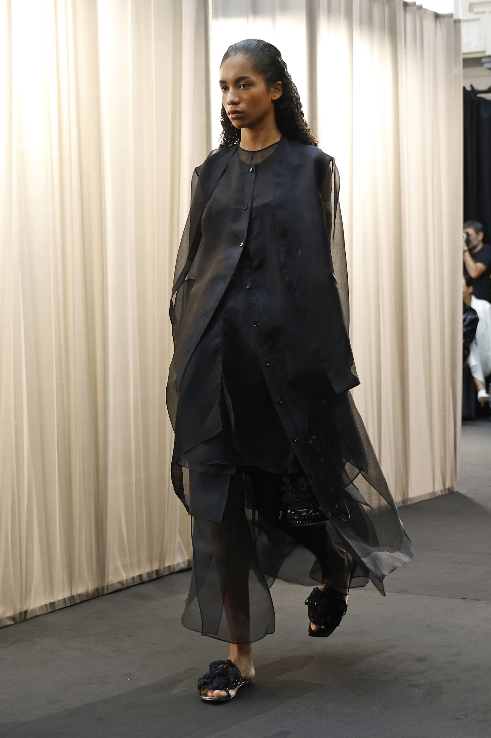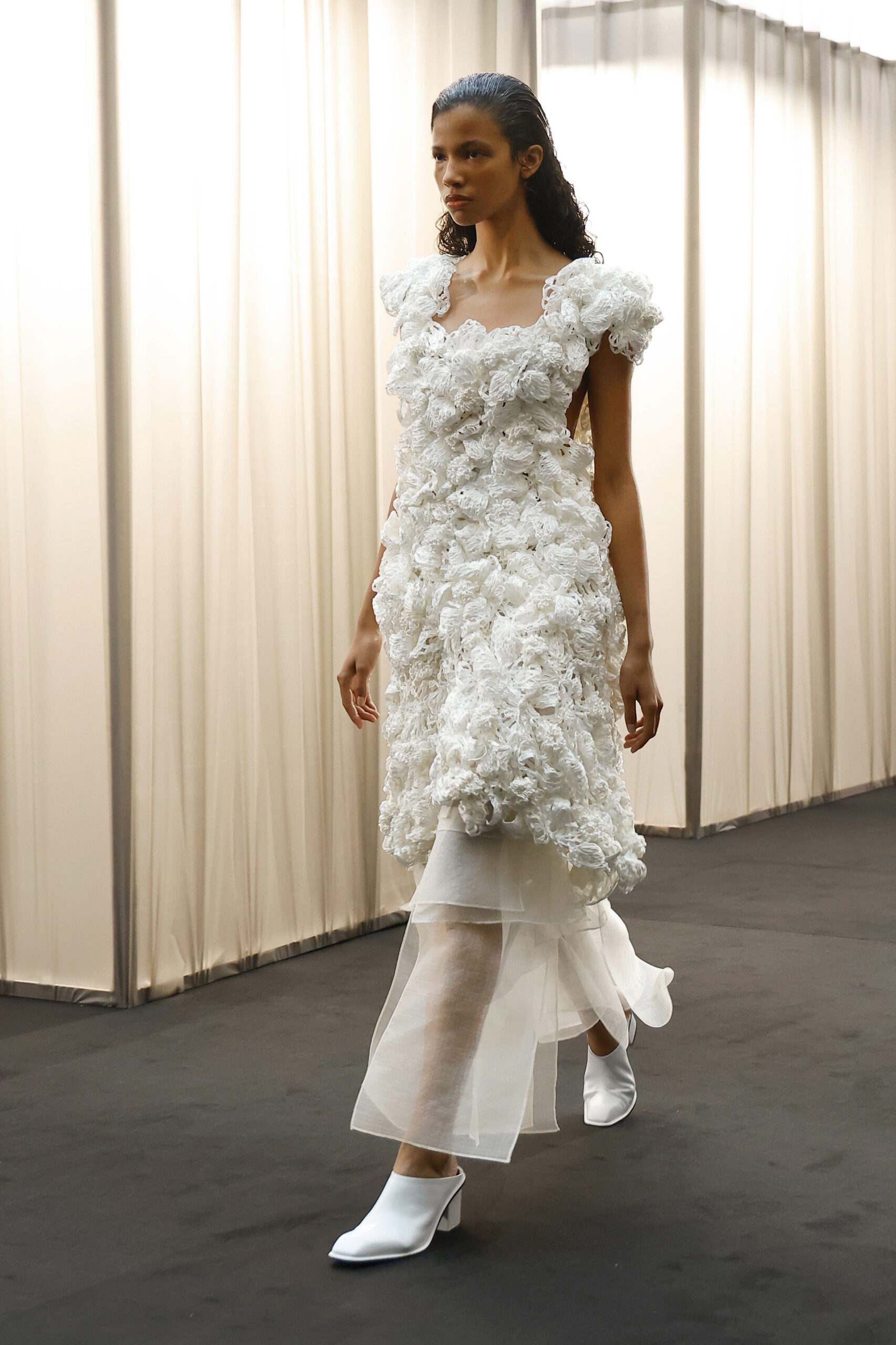 Les vêtements qui étaient autrefois des signes de restriction et de formalité se réinventent en pièces de tailleur puissantes, conçues pour la femme moderne. Les détails délicats de la dentelle et les volumes imposants, puisés dans la nostalgie, rencontrent des silhouettes bien-aimées extraites des archives d’EENK, apportant une structure inattendue et une confiance redéfinie. La collection présente des robes à corsage vintage tricotées à la main, des chemises longues, des pantalons et des vestes puissantes, ainsi que des cyanotypes doux et des ensembles de tailleur élégants. Ces pièces rappellent que la féminité et le pouvoir peuvent coexister harmonieusement dans la mode d’aujourd’hui.