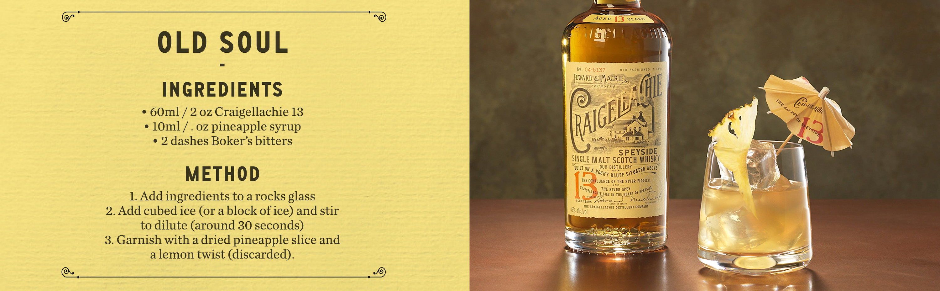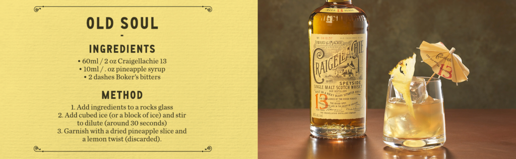 Pour les amateurs de cocktails, la distillerie propose également le CRAIGELLACHIE 13 ans pour réaliser le cocktail classique « THE OLD SOUL ». La recette est disponible dans le communiqué ci-joint.