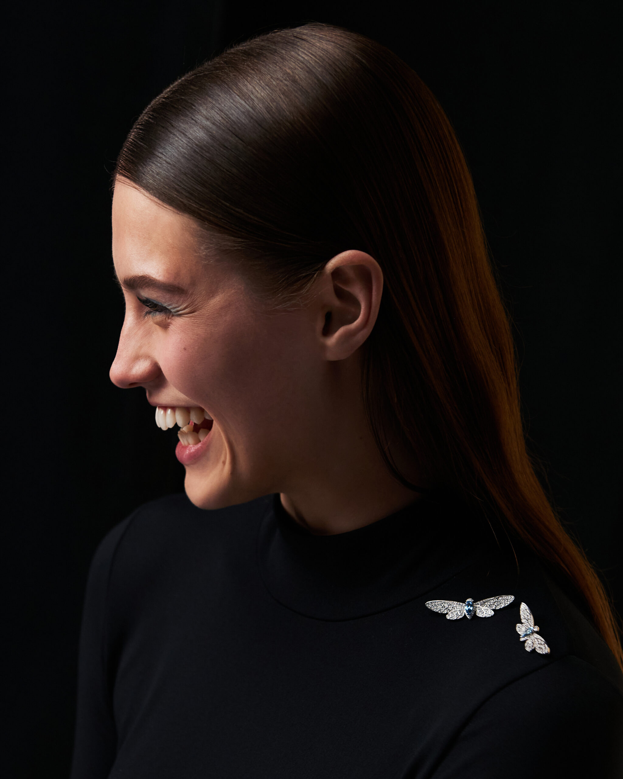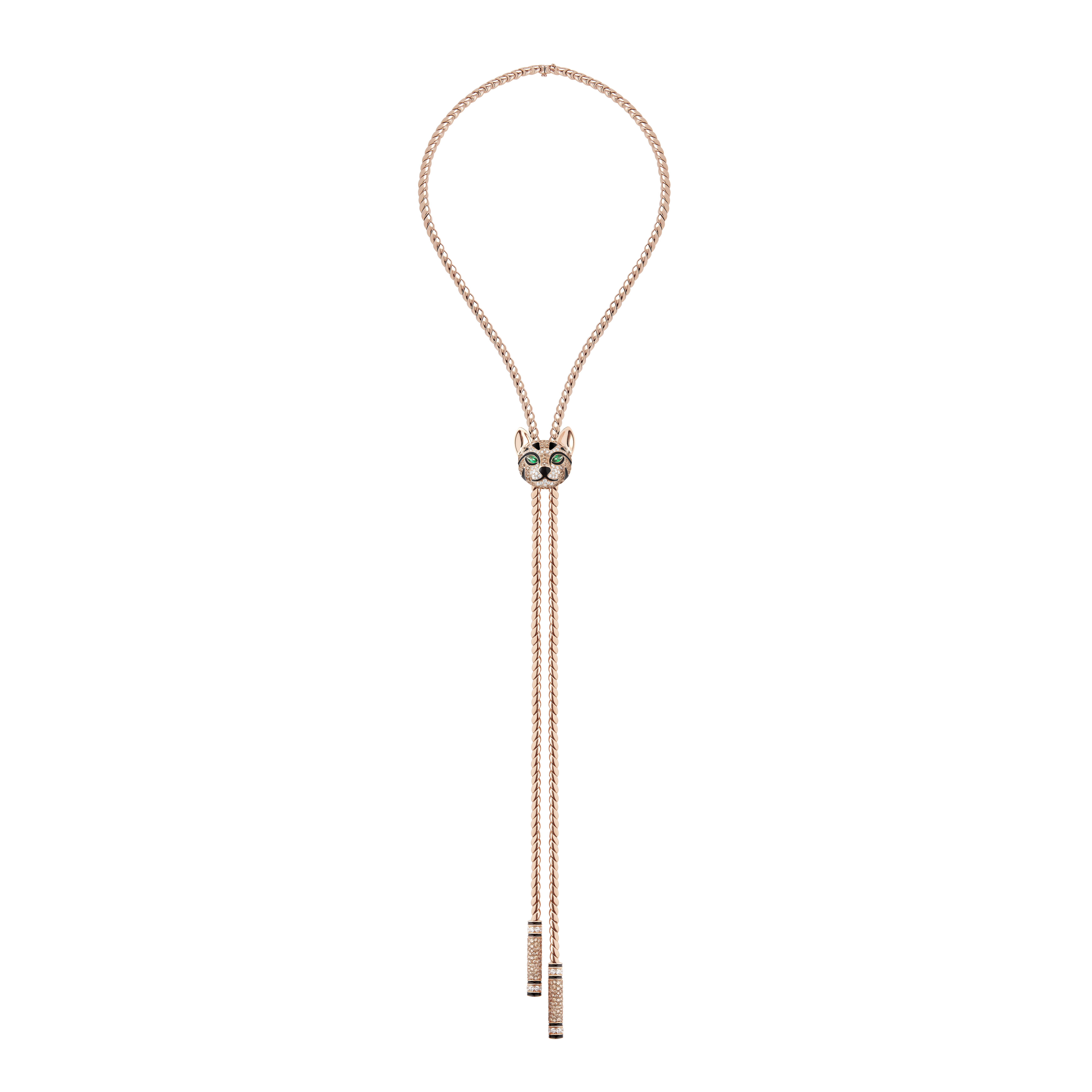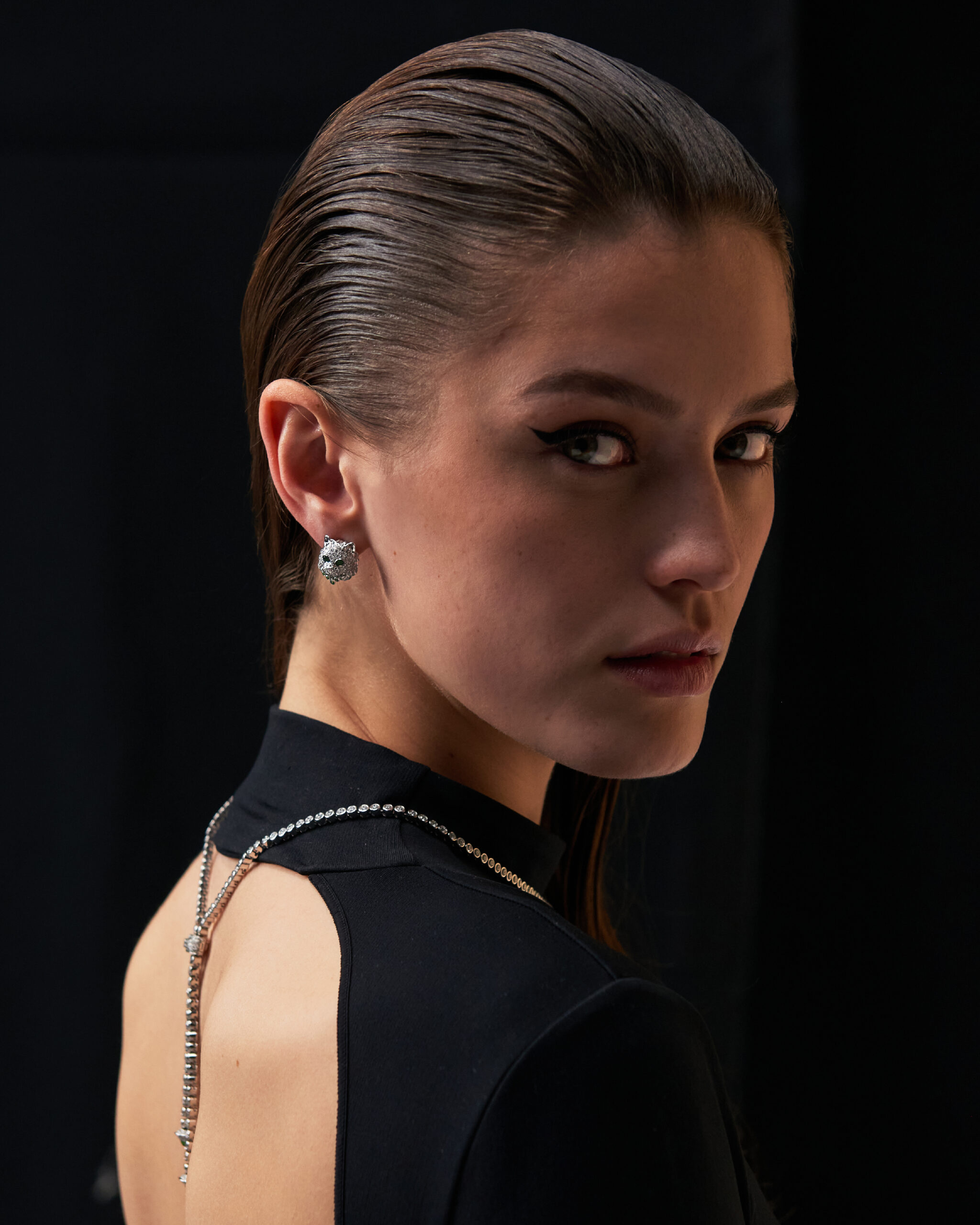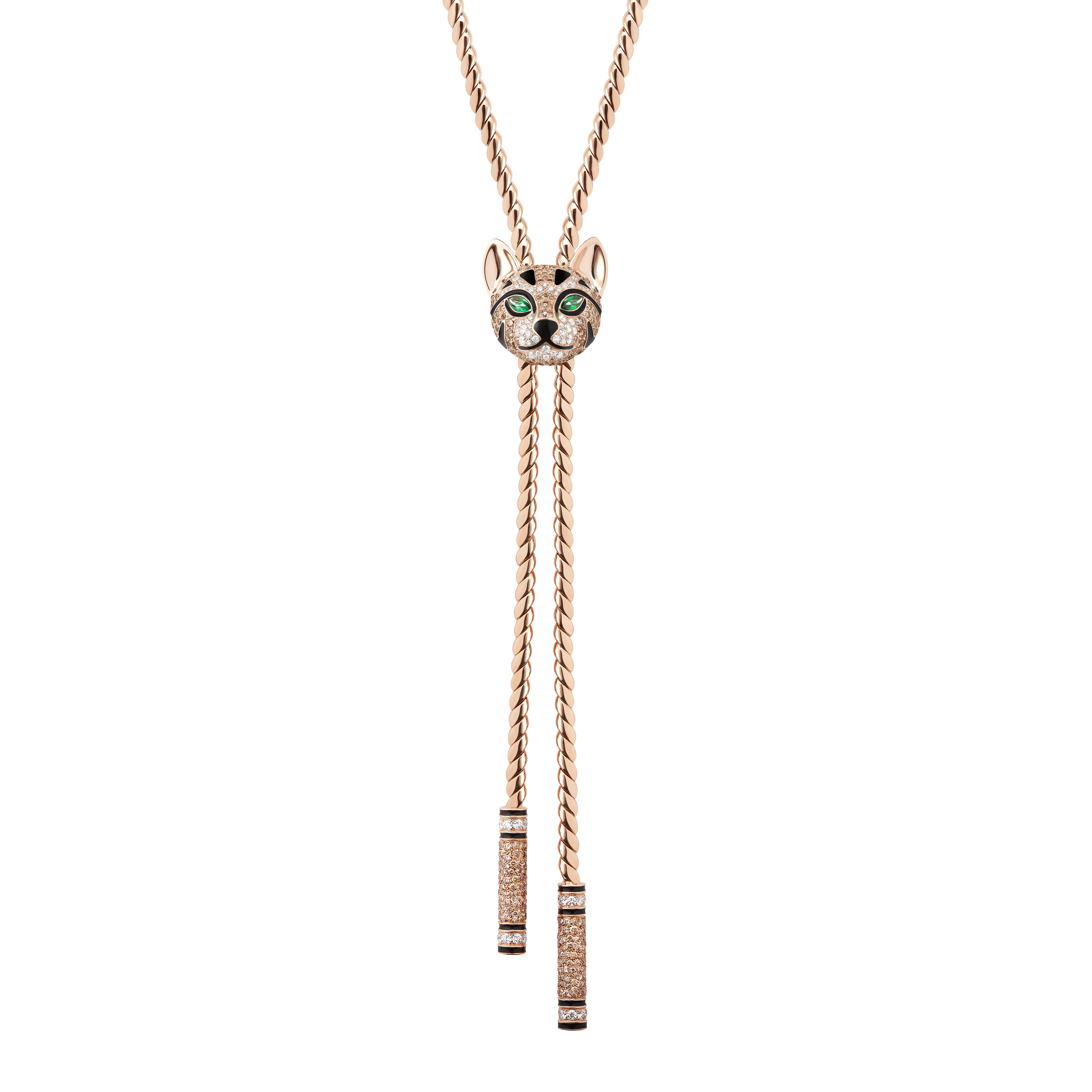 S’épanouir à travers les Collections Fétiches Il serait imprudent de passer sous silence les autres pièces qui continuent de faire la renommée de la maison. Fuzzy, le chat léopard, apparaît dans un sautoir joueur et dans un pendentif en édition limitée pour la nouvelle boutique de Ginza en septembre 2023. Wladimir, le chat emblématique de la maison, s’enrichit d’un collier multiporté, d’un bracelet ainsi que d’une paire de puces d’oreilles, chacun serti de tsavorites et saphirs noirs.