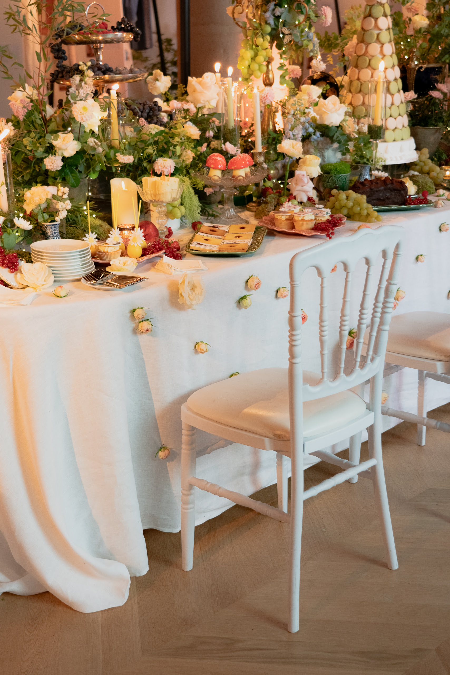La palette de couleurs fraîches vient parfaire l’ensemble, avec des nuances de citron yuzu, rose marshmallow et bleu céruléen. Sophie Mechaly invite à laisser tomber les masques et à embrasser l’abondance, tout comme le faisait Colombine sur scène.