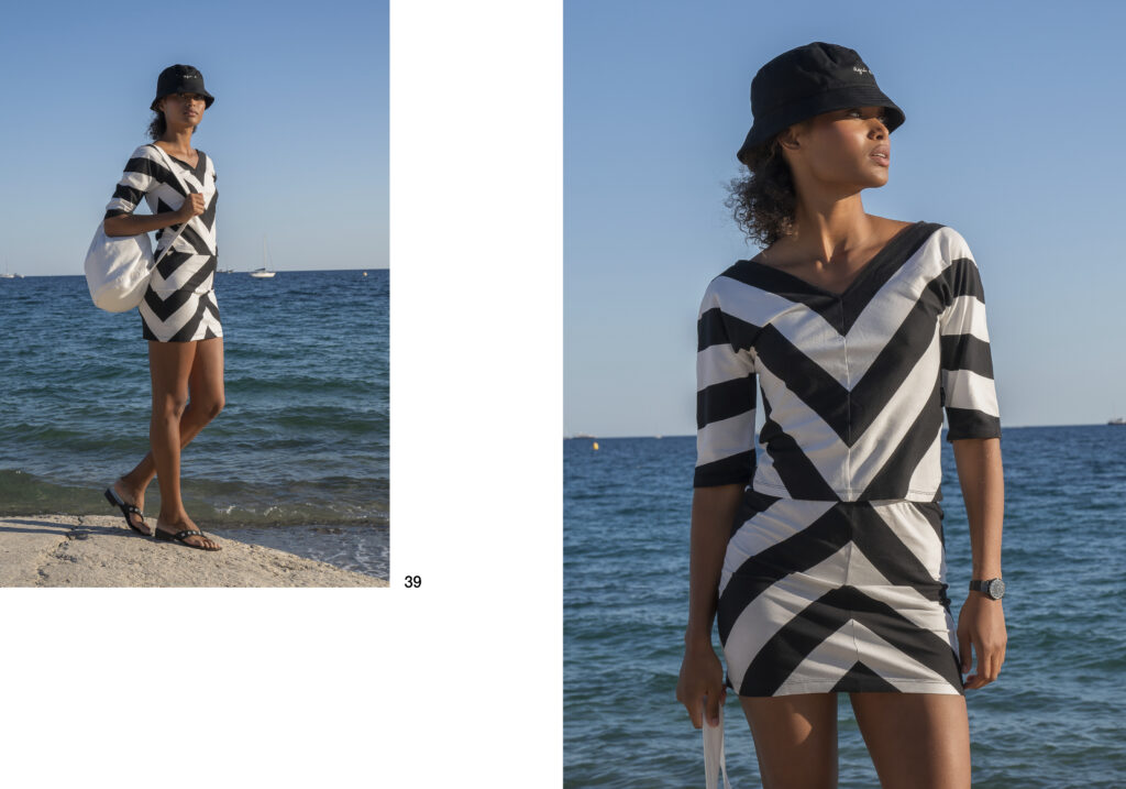 Le choix de la Côte d’Azur comme toile de fond pour la mise en image de cette collection n’est pas anodin. Cette région, connue pour son charme pittoresque et son élégance décontractée, fait écho aux créations d’Agnès B qui fusionnent la grâce intemporelle avec une modernité réfléchie. Chaque pièce de la collection semble raconter une histoire, celle d’une évasion estivale sur les rivages méditerranéens, offrant ainsi une respiration stylistique bienvenue dans le tumulte de la vie urbaine.