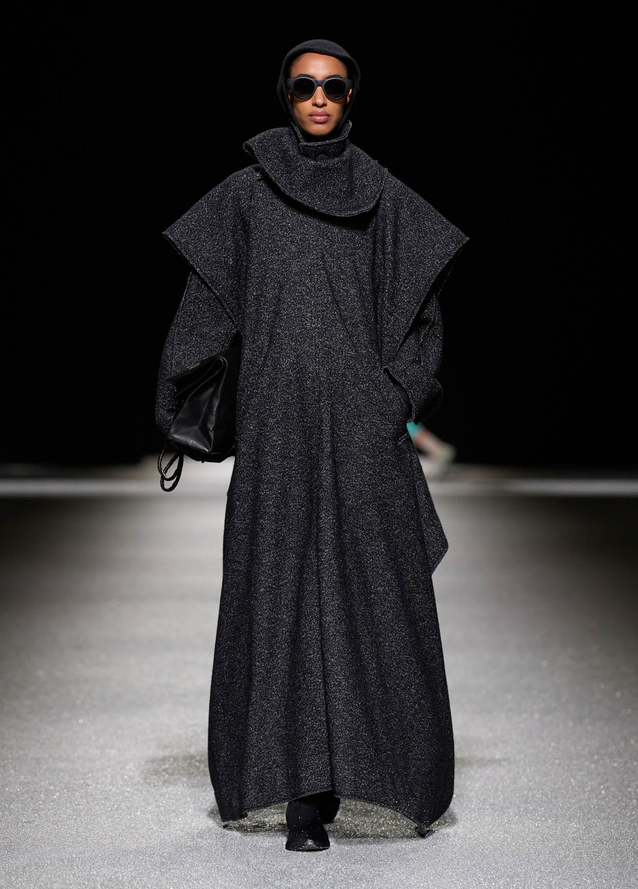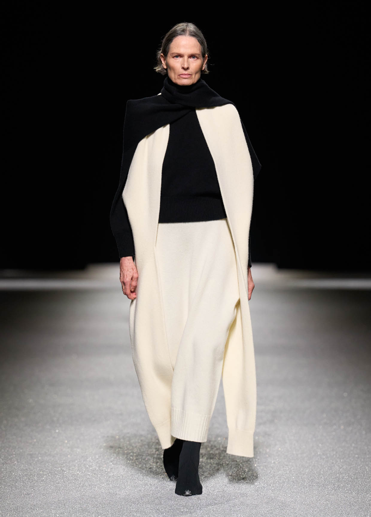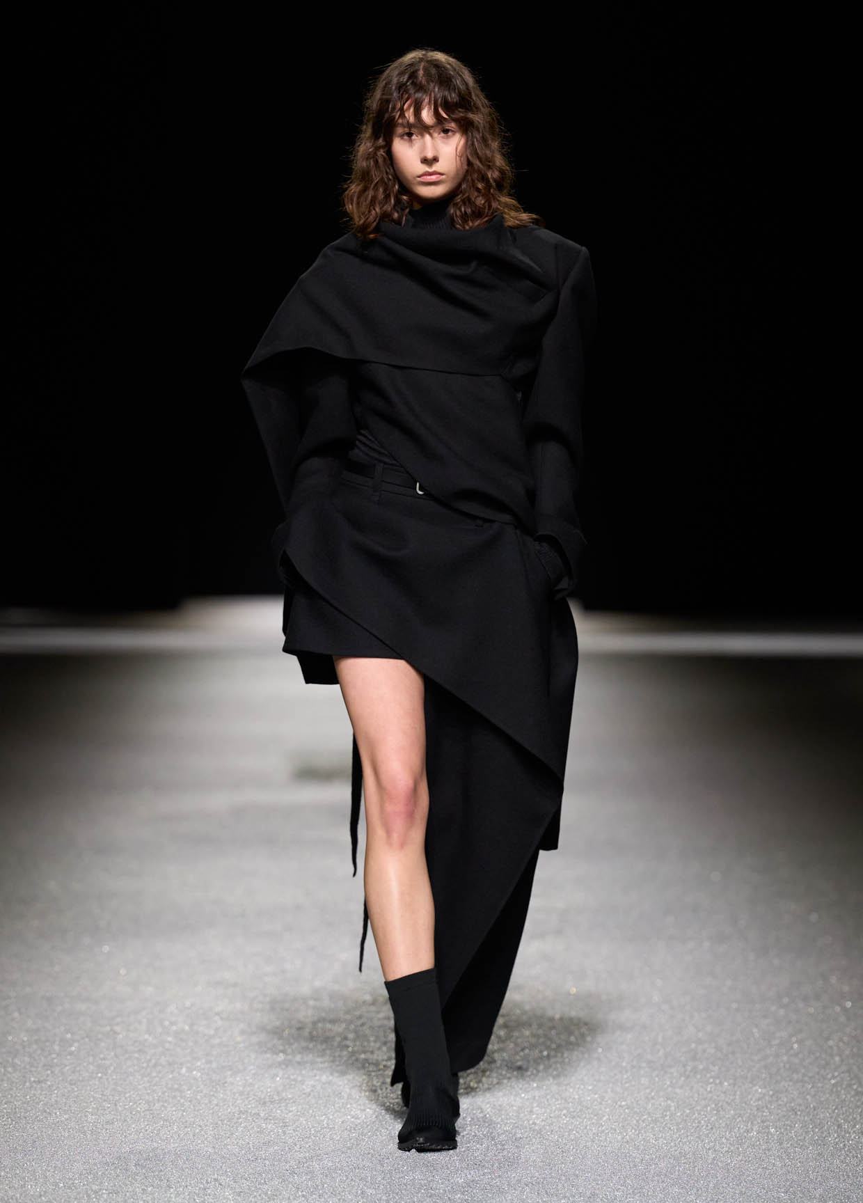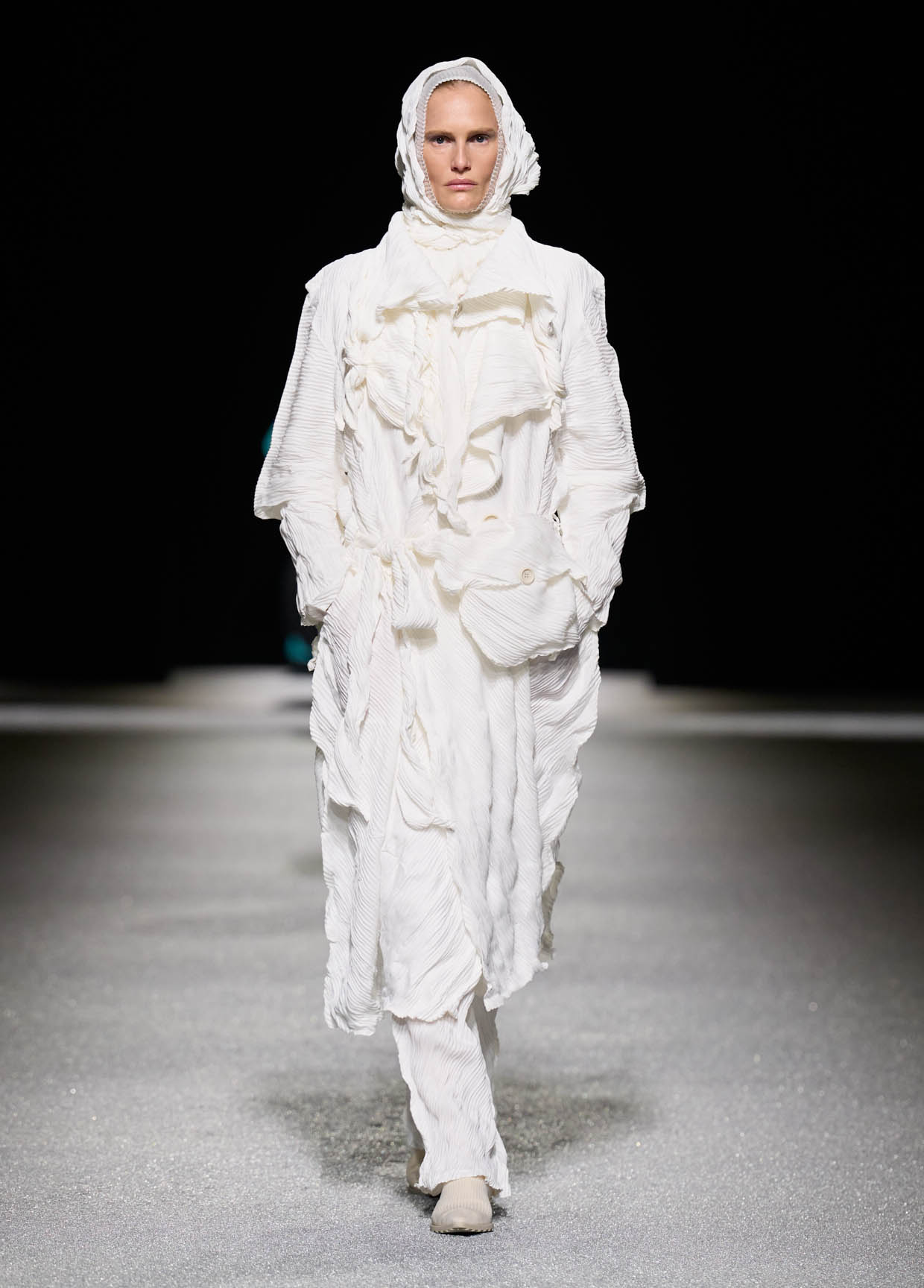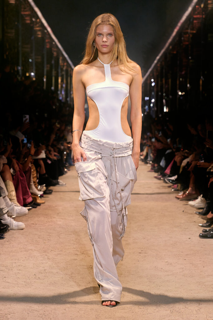 Des matières légères comme les parachutes et les sandales plates allongent la silhouette tandis que de grandes boucles d’oreilles en argent lévitent au rythme des démarches.
