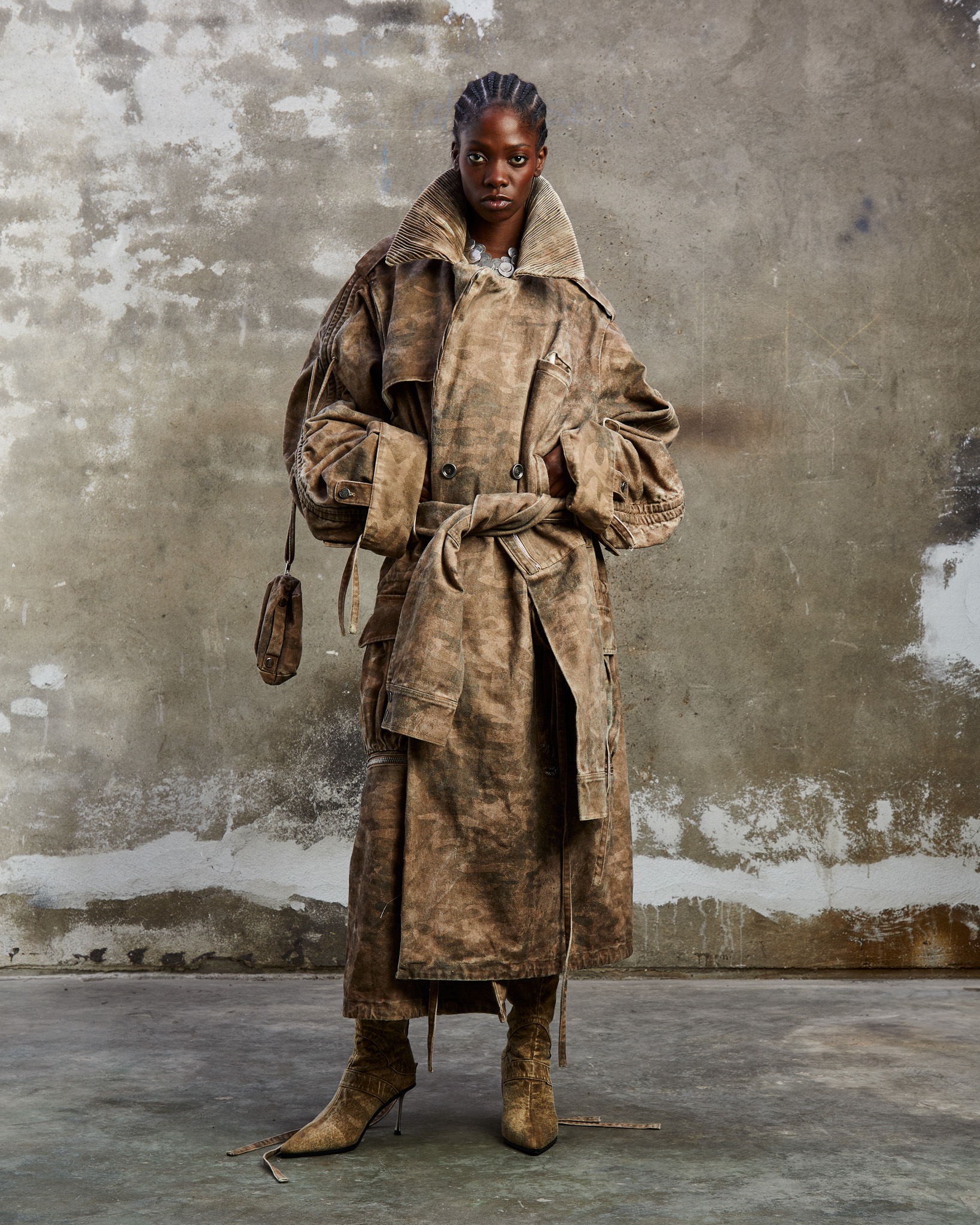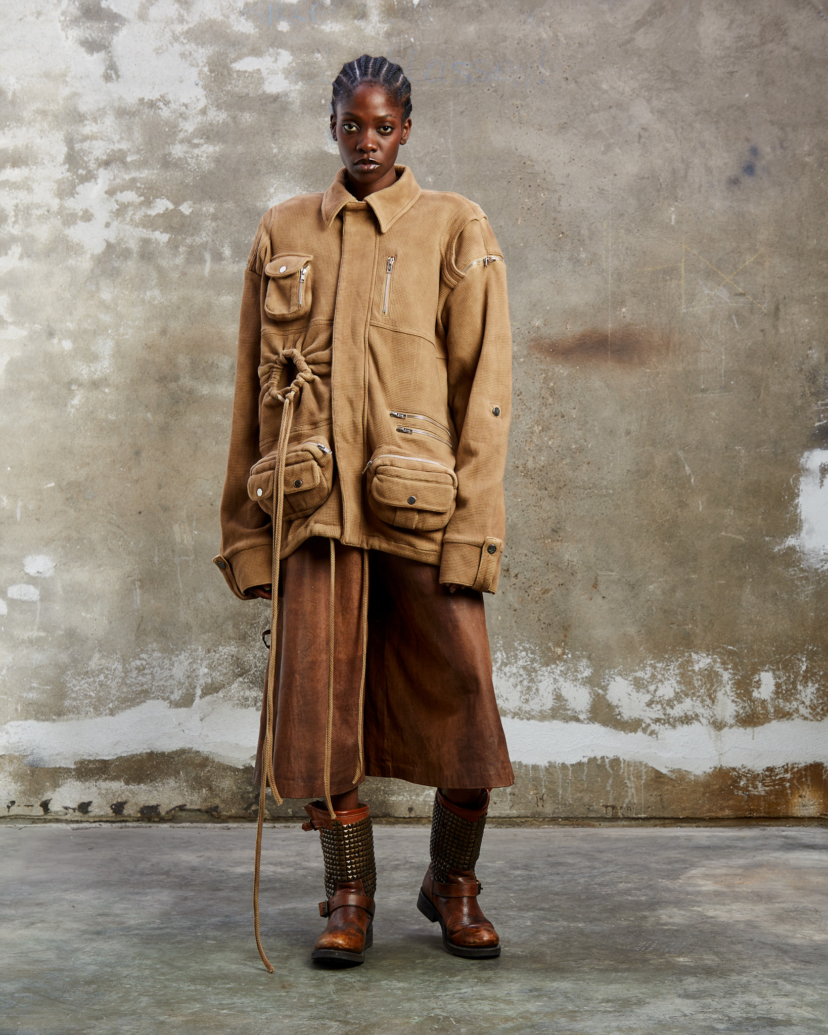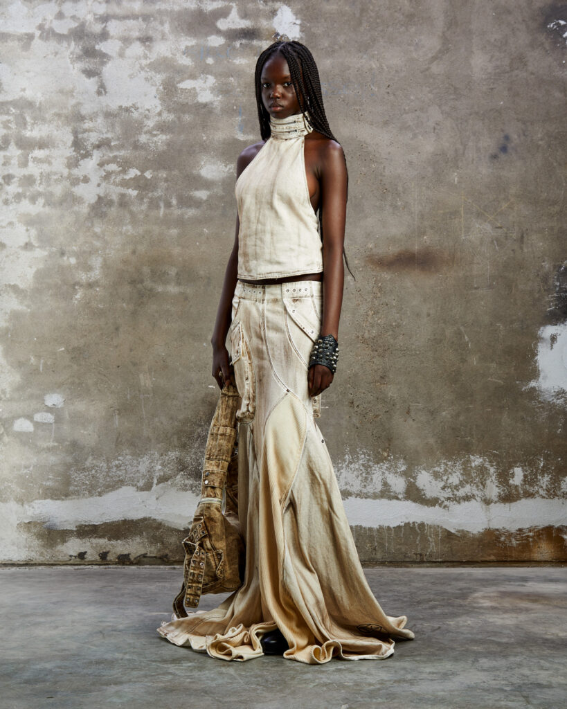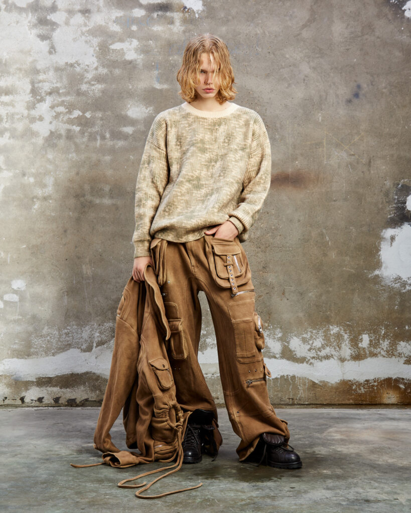 « Nationalpark Eifel » est bien plus qu’une ligne de vêtements. C’est un hommage vibrant aux teintes douces de la nature, juxtaposées à des silhouettes audacieuses et des détails travaillés avec minutie. La palette de couleurs naturelles offre un contraste saisissant avec les silhouettes audacieuses, évoquant l’aventure d’une journée passée dans le parc national. L’influence de la région se retrouve jusque dans les détails, avec des pièces inspirées par « Eifel-Therme Zikkurat », un spa bien-être niché au cœur du parc national.