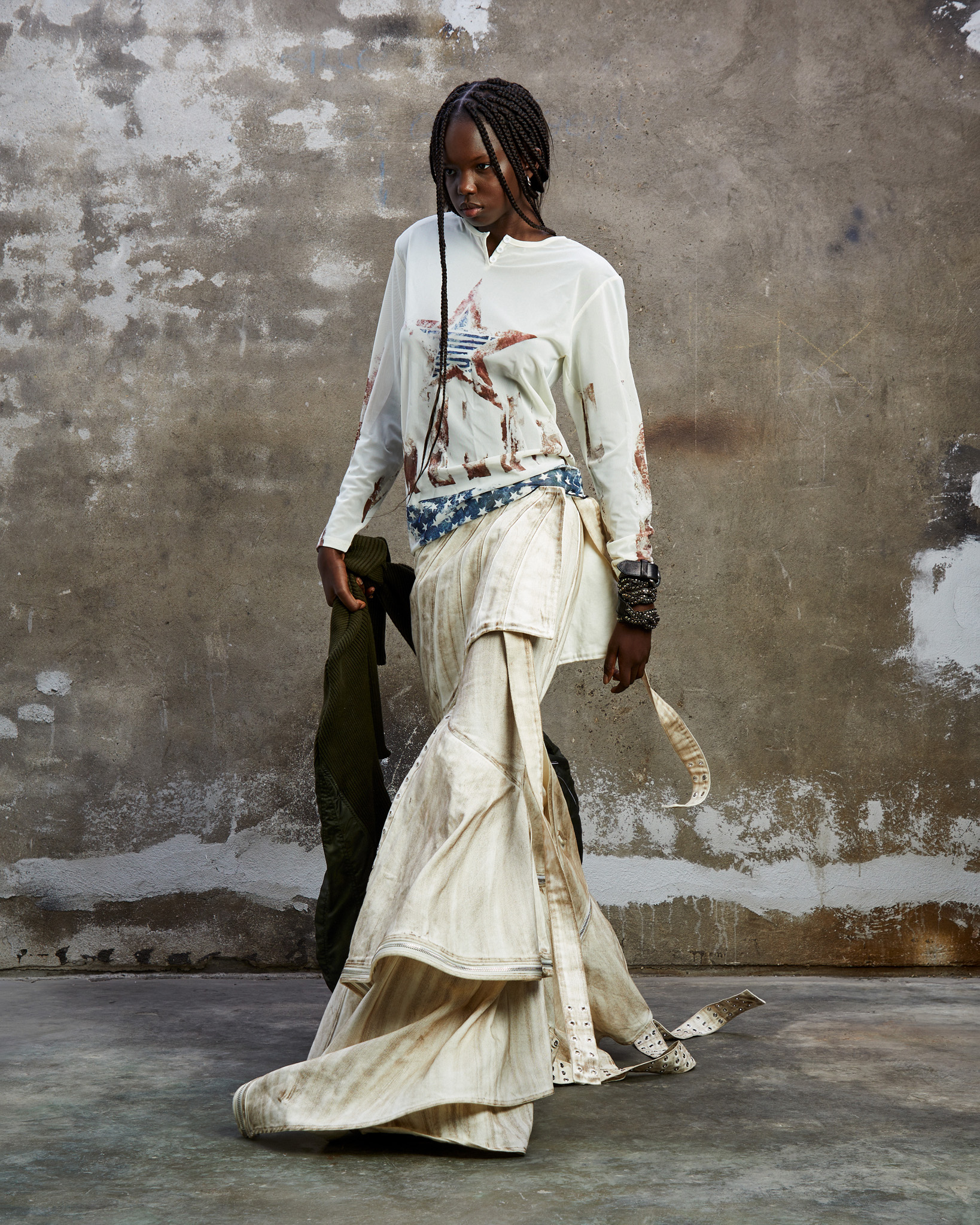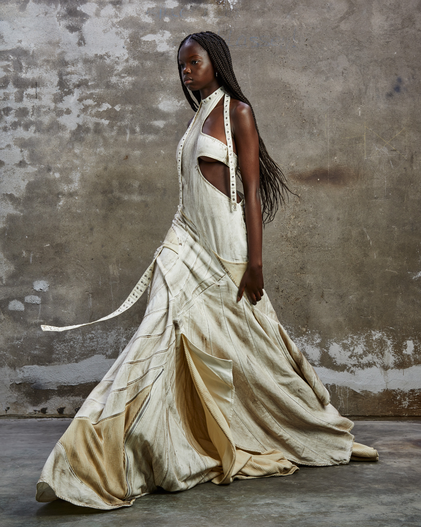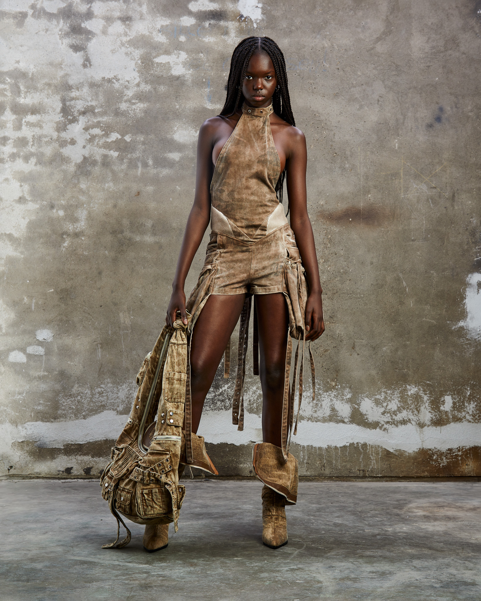 « Nationalpark Eifel » est bien plus qu’une ligne de vêtements. C’est un hommage vibrant aux teintes douces de la nature, juxtaposées à des silhouettes audacieuses et des détails travaillés avec minutie. La palette de couleurs naturelles offre un contraste saisissant avec les silhouettes audacieuses, évoquant l’aventure d’une journée passée dans le parc national. L’influence de la région se retrouve jusque dans les détails, avec des pièces inspirées par « Eifel-Therme Zikkurat », un spa bien-être niché au cœur du parc national.