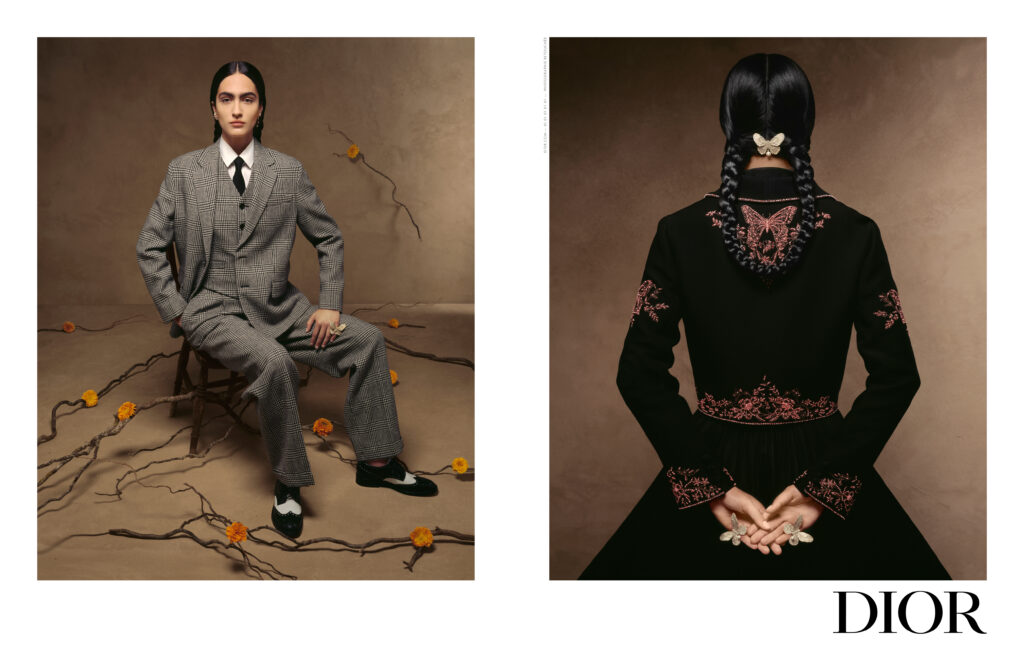 Capturées par la photographe Brigitte Niedermair, les images de la campagne reflètent la puissance du collectif, la résilience et la fierté des Mexicaines. Les silhouettes Dior incarnent une merveilleuse inventivité et dialoguent passionnément avec l’excellence des ateliers de la Maison. Les jupes amples se déploient en corolle, portées avec des huipils ou des vestes architecturales. Ces dernières sont parées de guipures raffinées, fruit d’une collaboration avec les artisans locaux. Le résultat est un mélange exquis qui célèbre la féminité plurielle et libre.