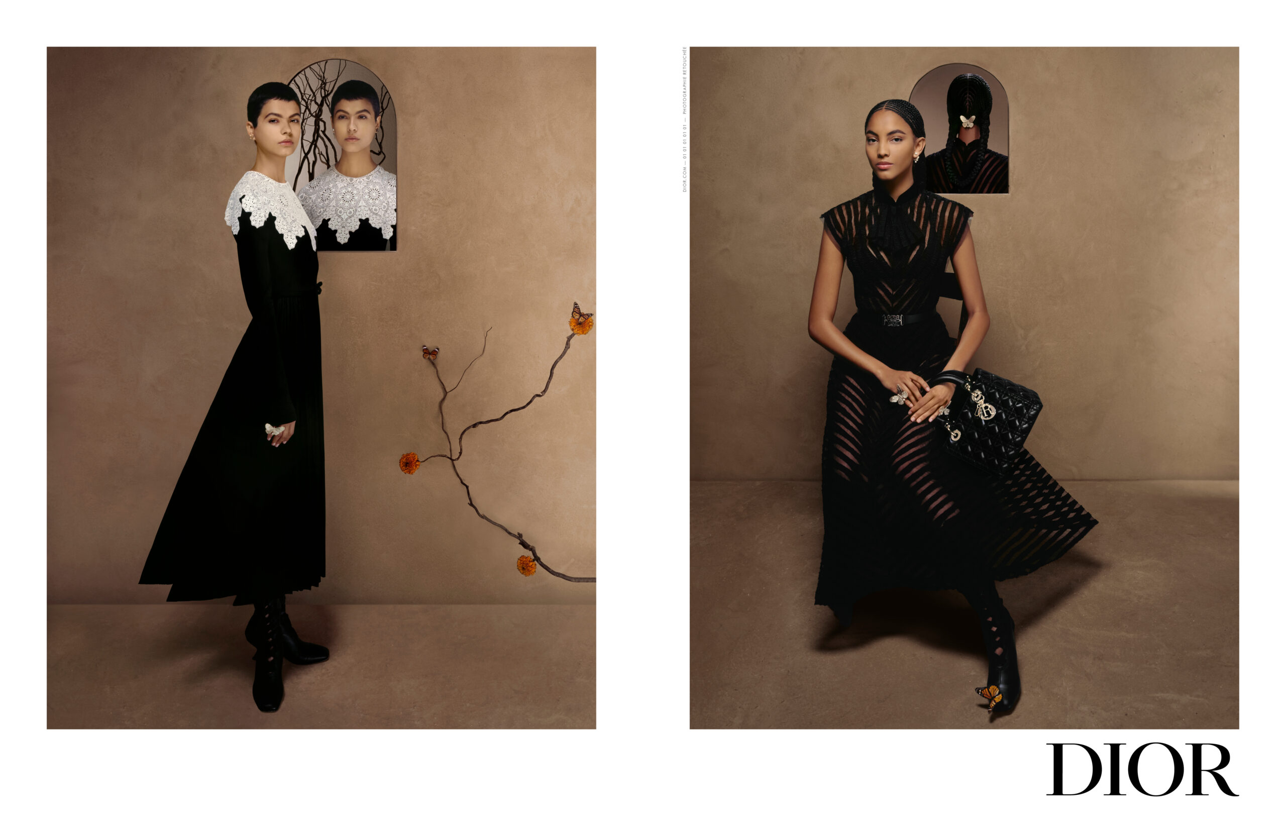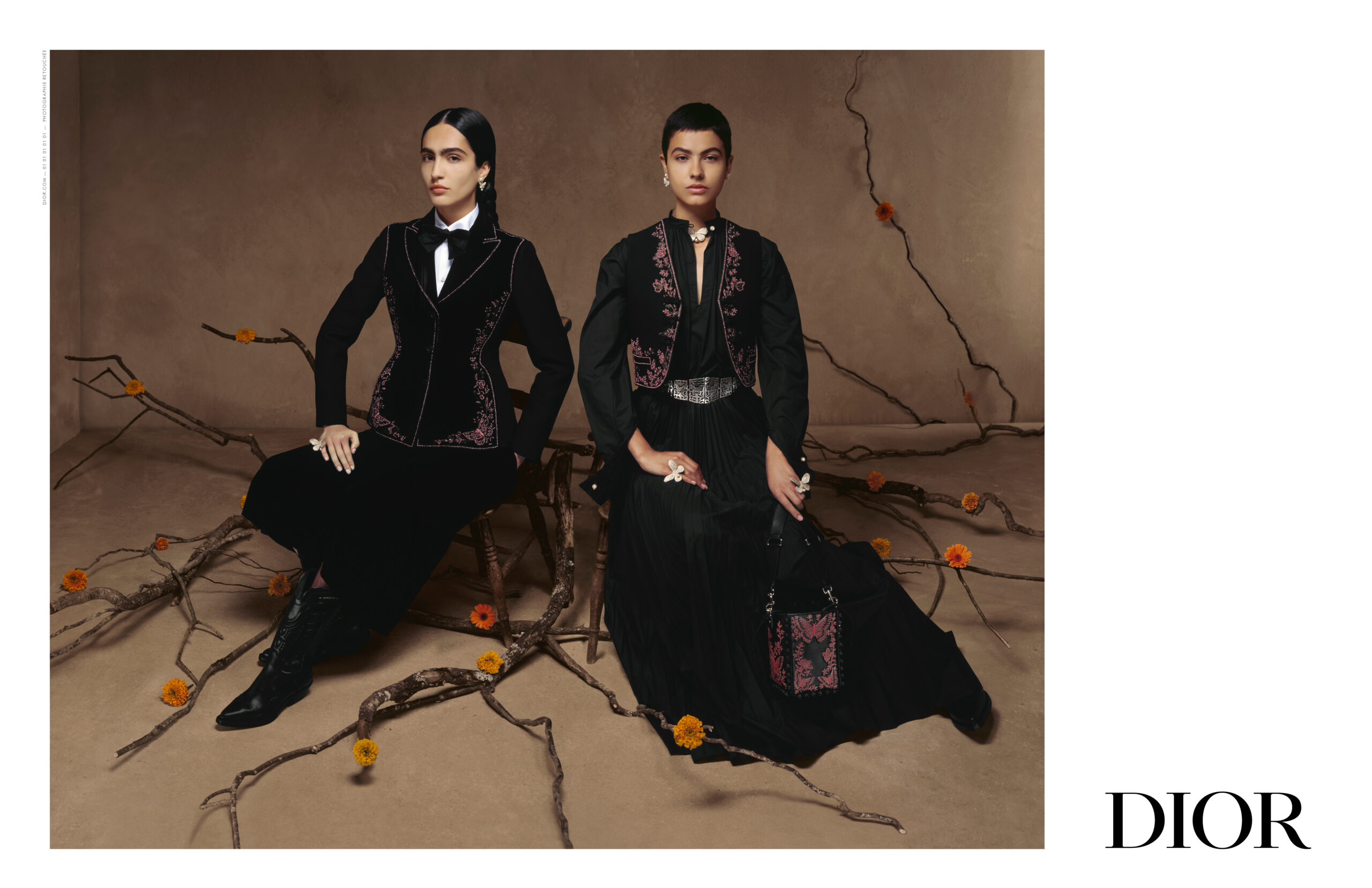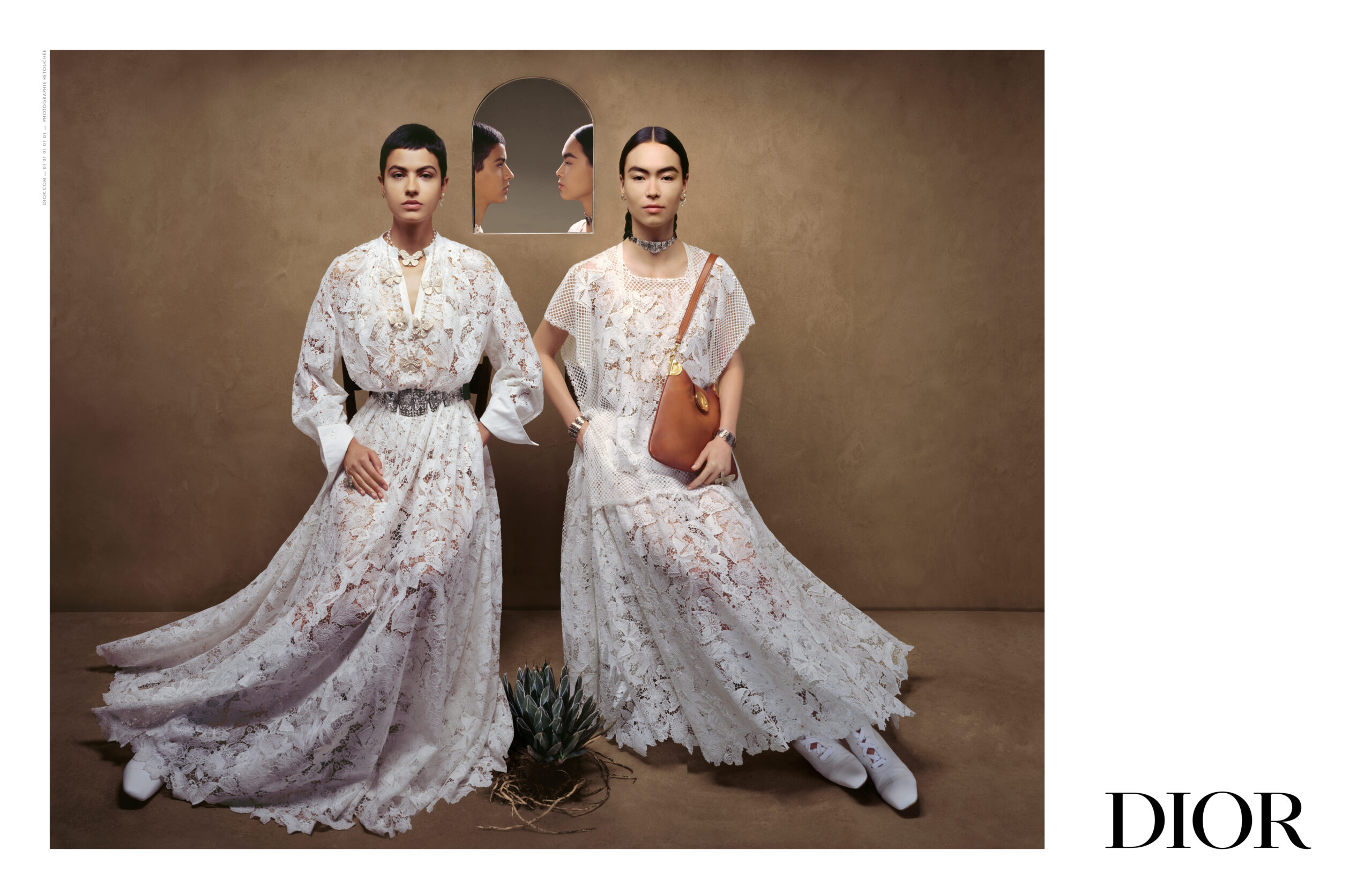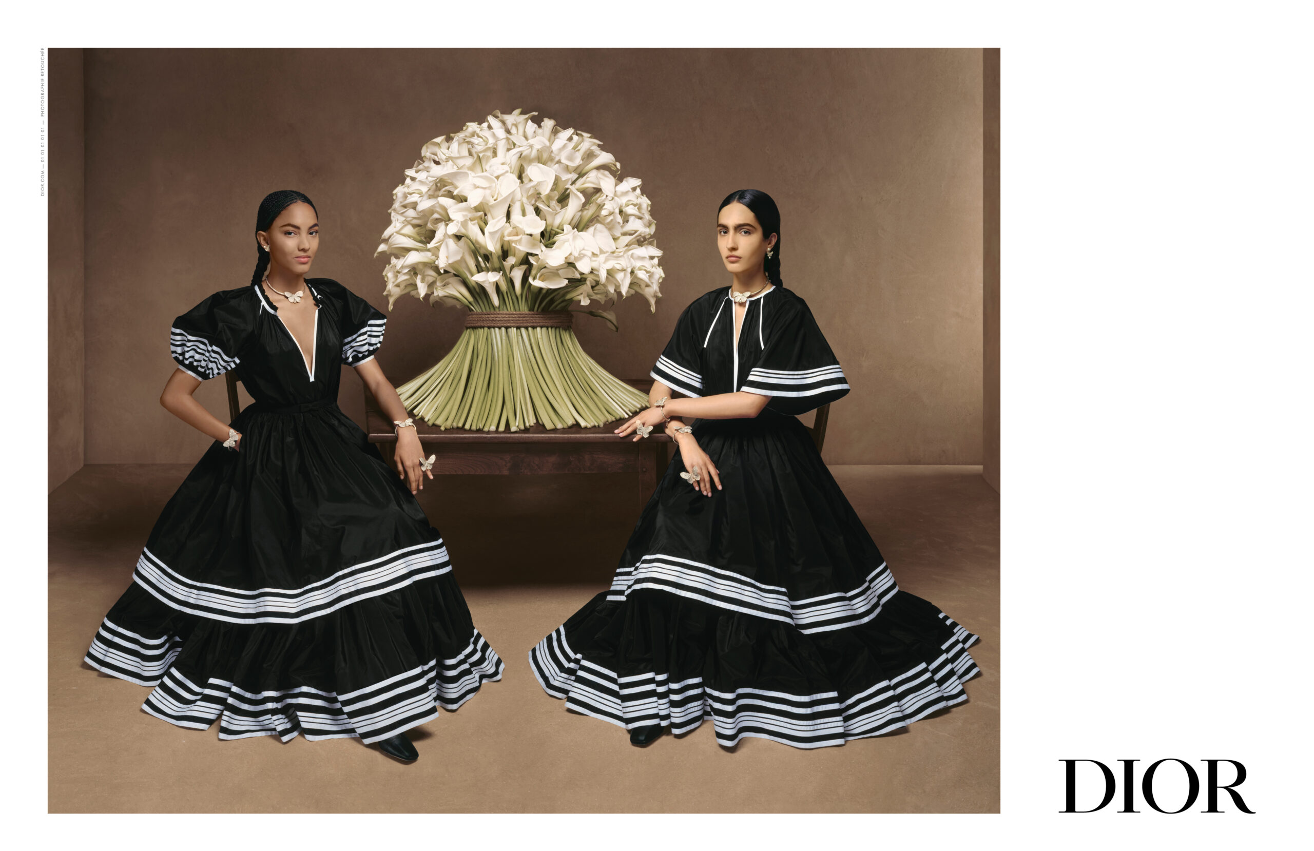 Capturées par la photographe Brigitte Niedermair, les images de la campagne reflètent la puissance du collectif, la résilience et la fierté des Mexicaines. Les silhouettes Dior incarnent une merveilleuse inventivité et dialoguent passionnément avec l’excellence des ateliers de la Maison. Les jupes amples se déploient en corolle, portées avec des huipils ou des vestes architecturales. Ces dernières sont parées de guipures raffinées, fruit d’une collaboration avec les artisans locaux. Le résultat est un mélange exquis qui célèbre la féminité plurielle et libre.
