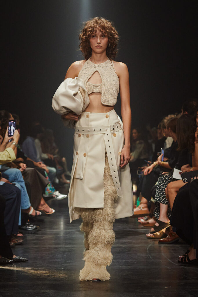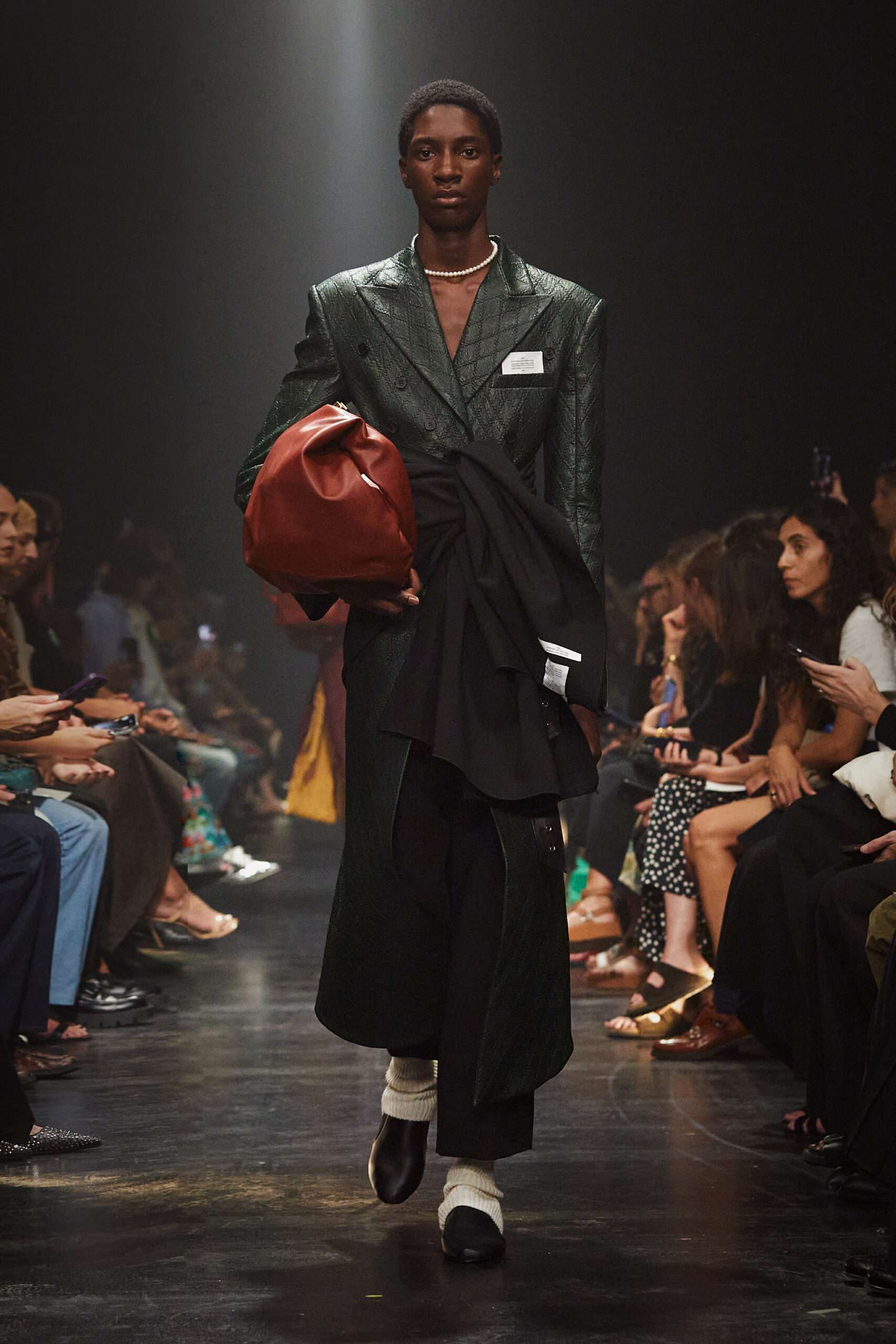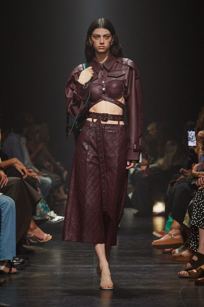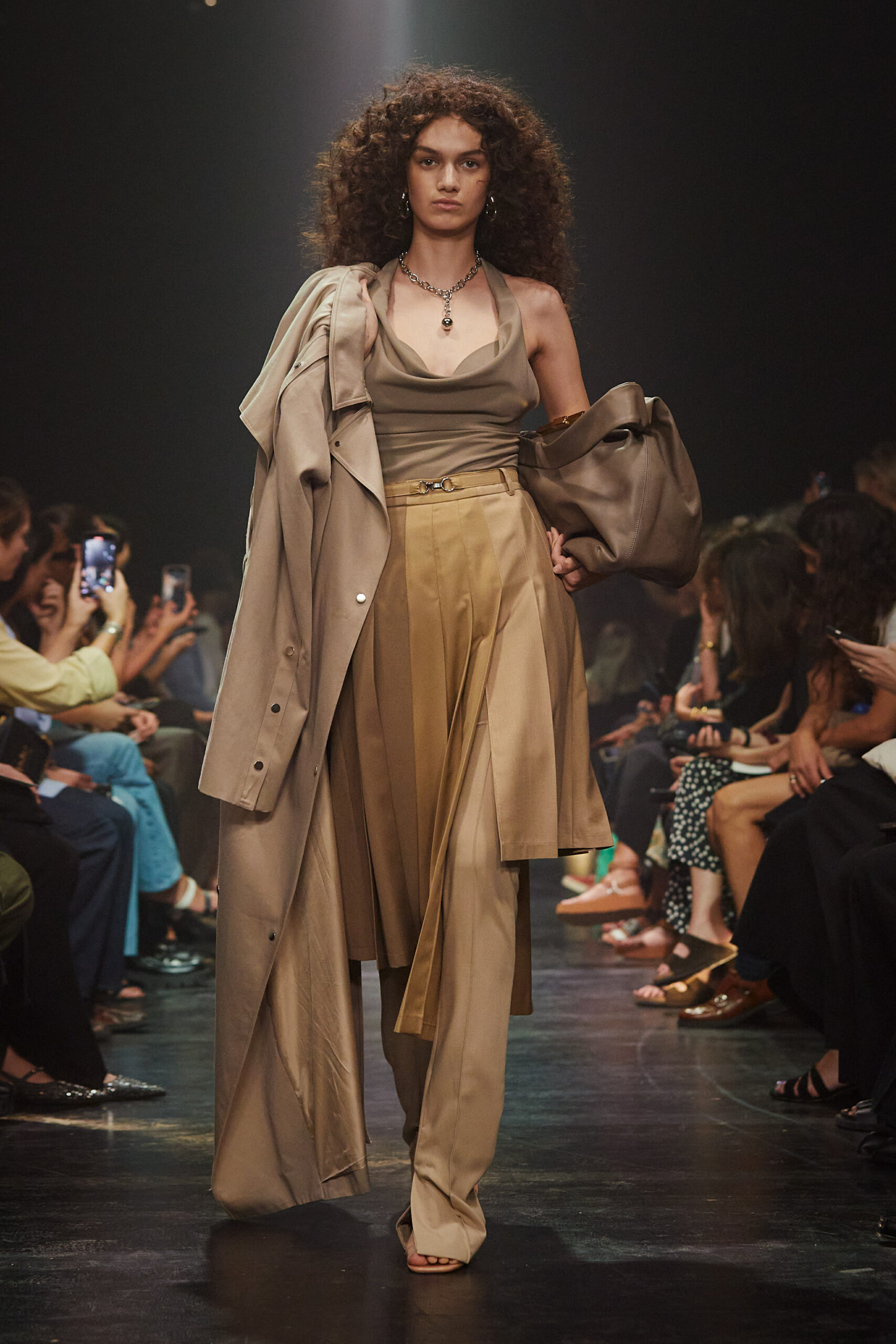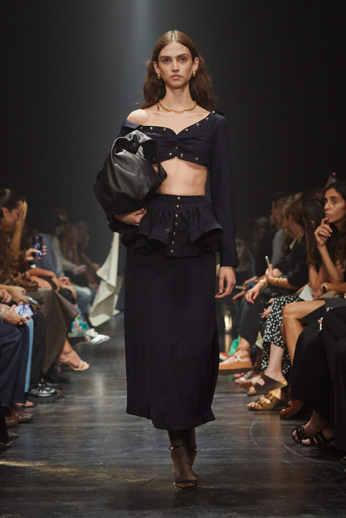 Côté accessoires, on retrouve un ample sac en cuir vintage au toucher doux, rehaussé de dorures et coloris végétaux. Les bijoux s’inspirent d’éléments vintage ou automobiles, avec des finitions chromées évoquant l’univers rétro.